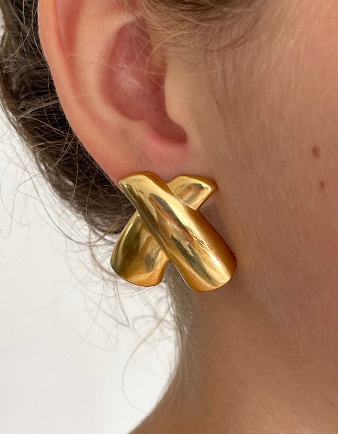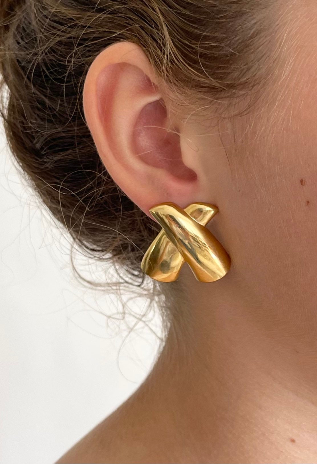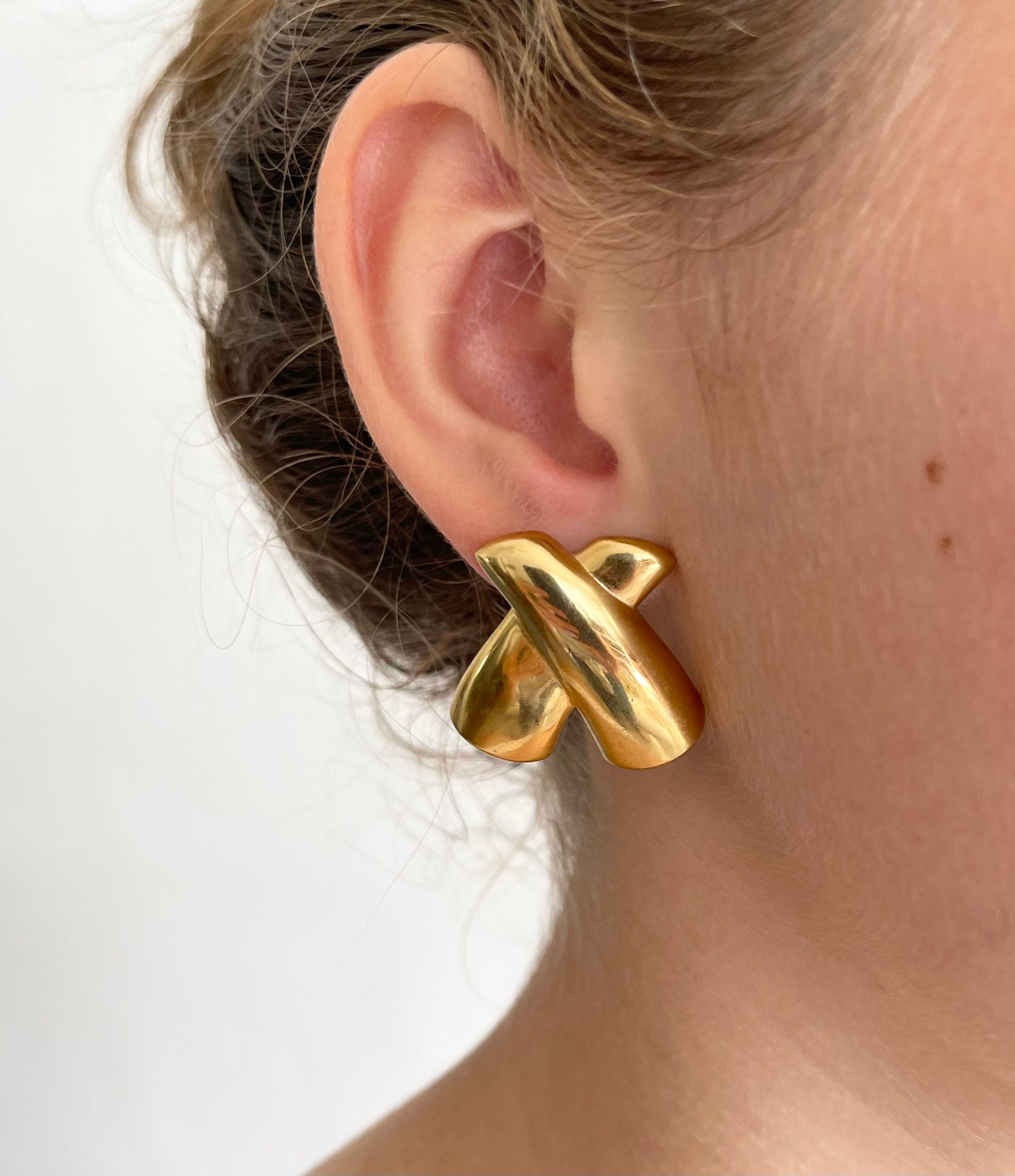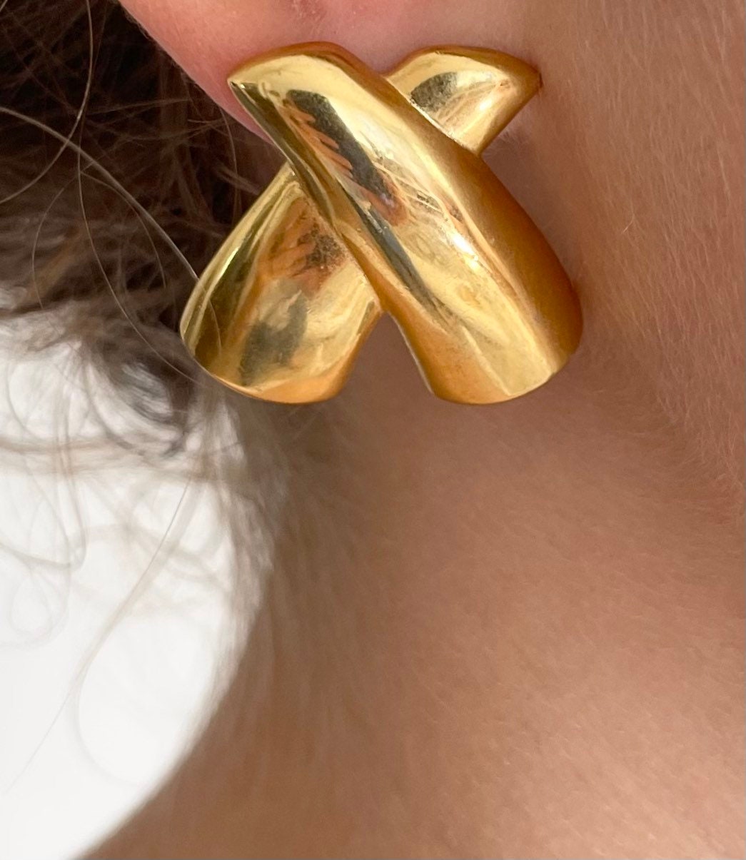 Vintage 80's gold tone "X" shaped statement earrings