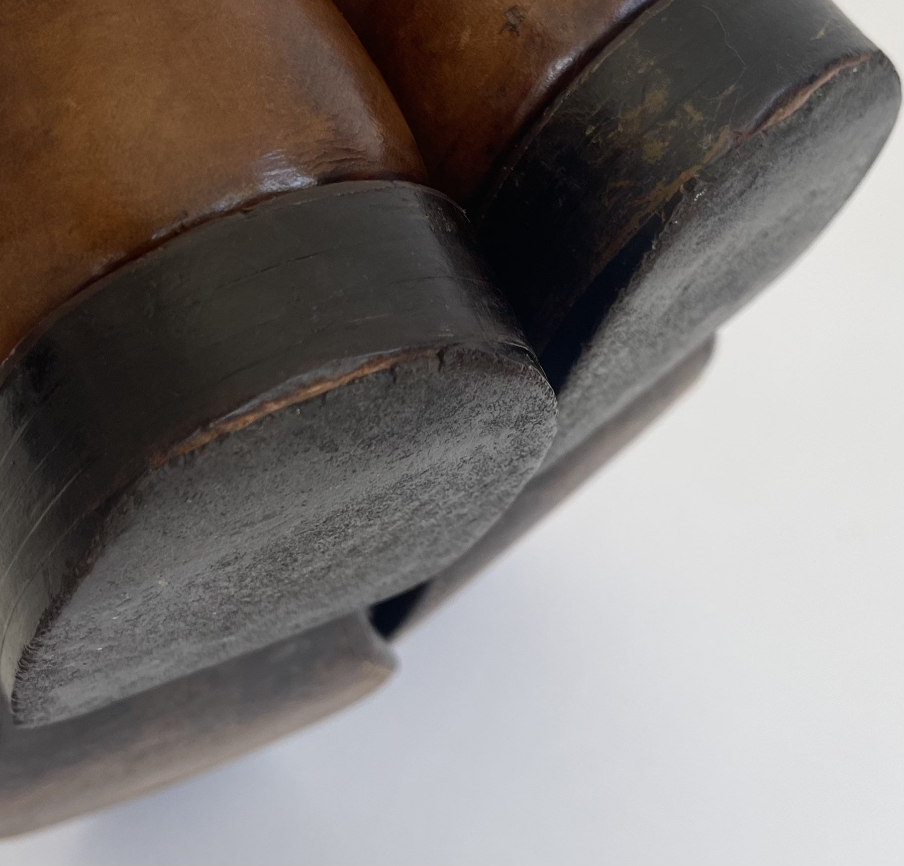 Good pre-owned condition with typical wear-related wear/scuffs. Heels could stand to be replaced as you can see in the last photo.