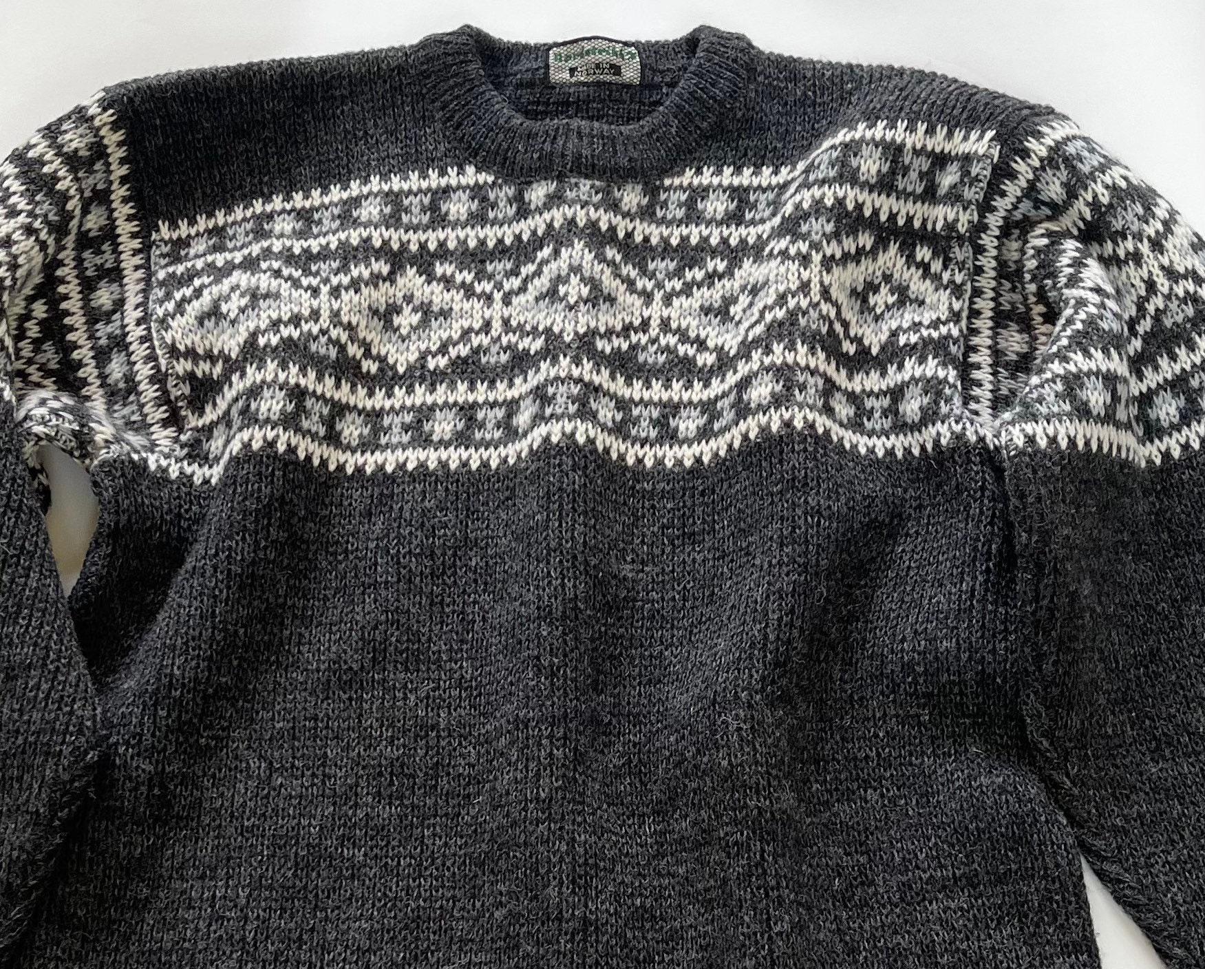 Vintage 70's/80's Norwegian charcoal gray and natural white wool sweater