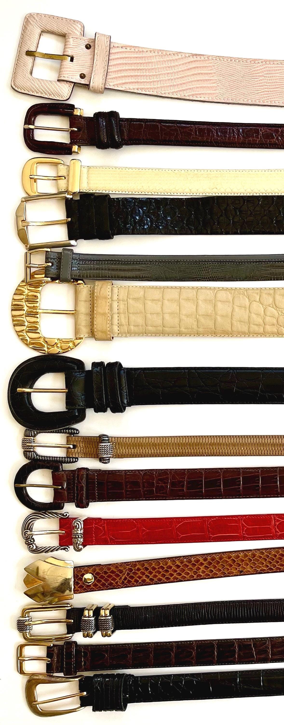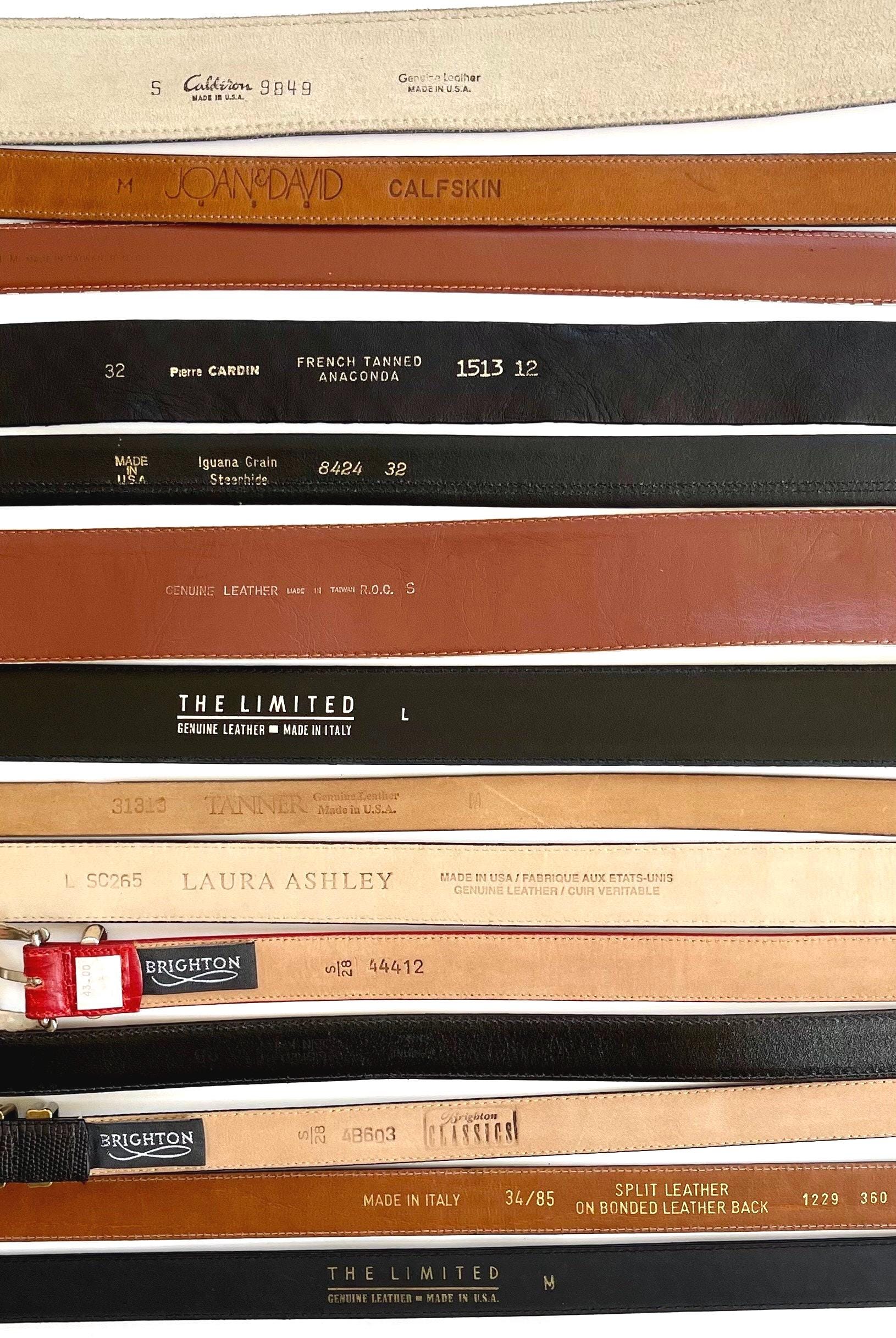 Belts are in pre-owned vintage condition with age-related wear including distressing, discoloration, wear to belt holes, minor bends in the strap, etc. If you have a question about a specific strap, please don't hesitate to message us!