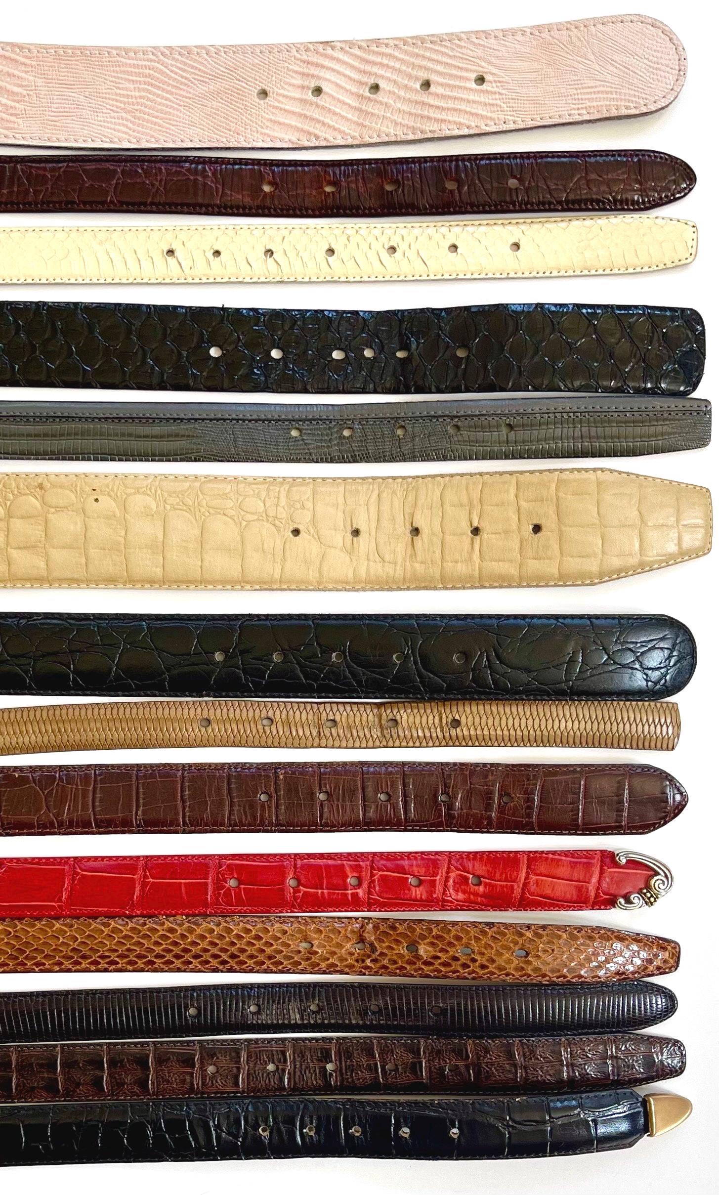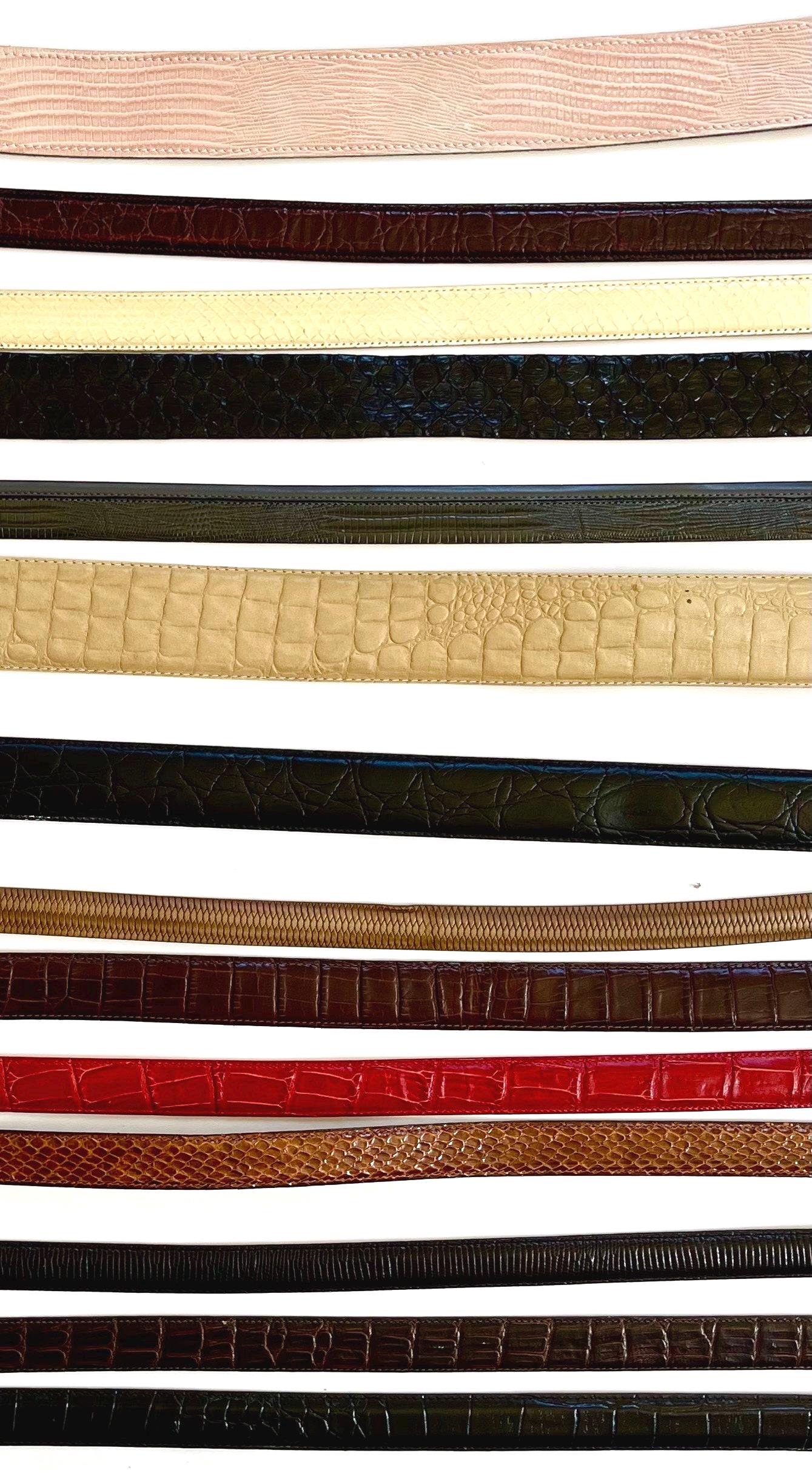 STYLE #7: Black croco embossed genuine leather strap with leather-wrapped buckle. Made in Italy by The Limited. Marked size L. Length: 39-1/2" / Width: 1-1/4"
