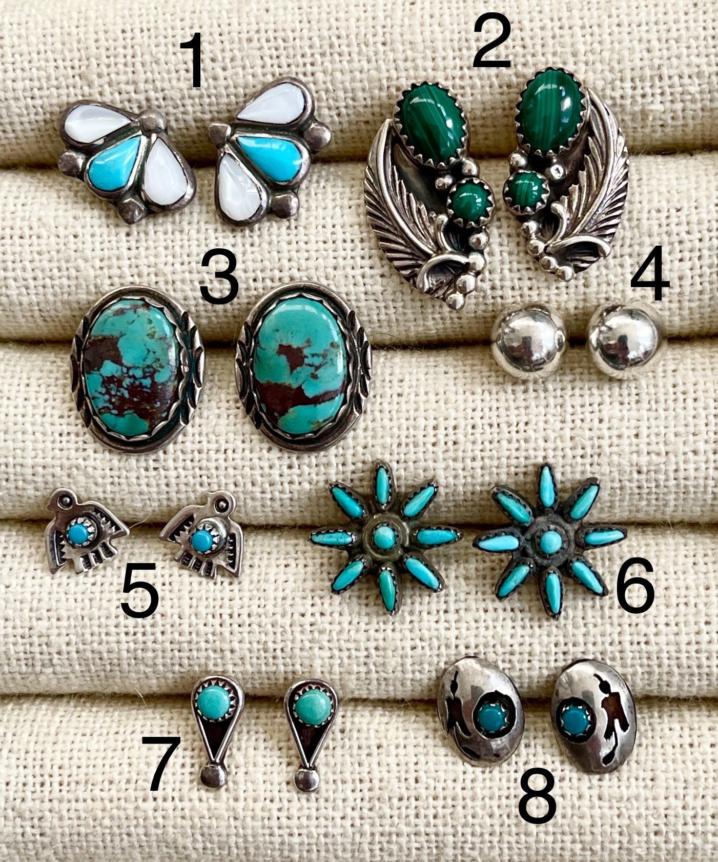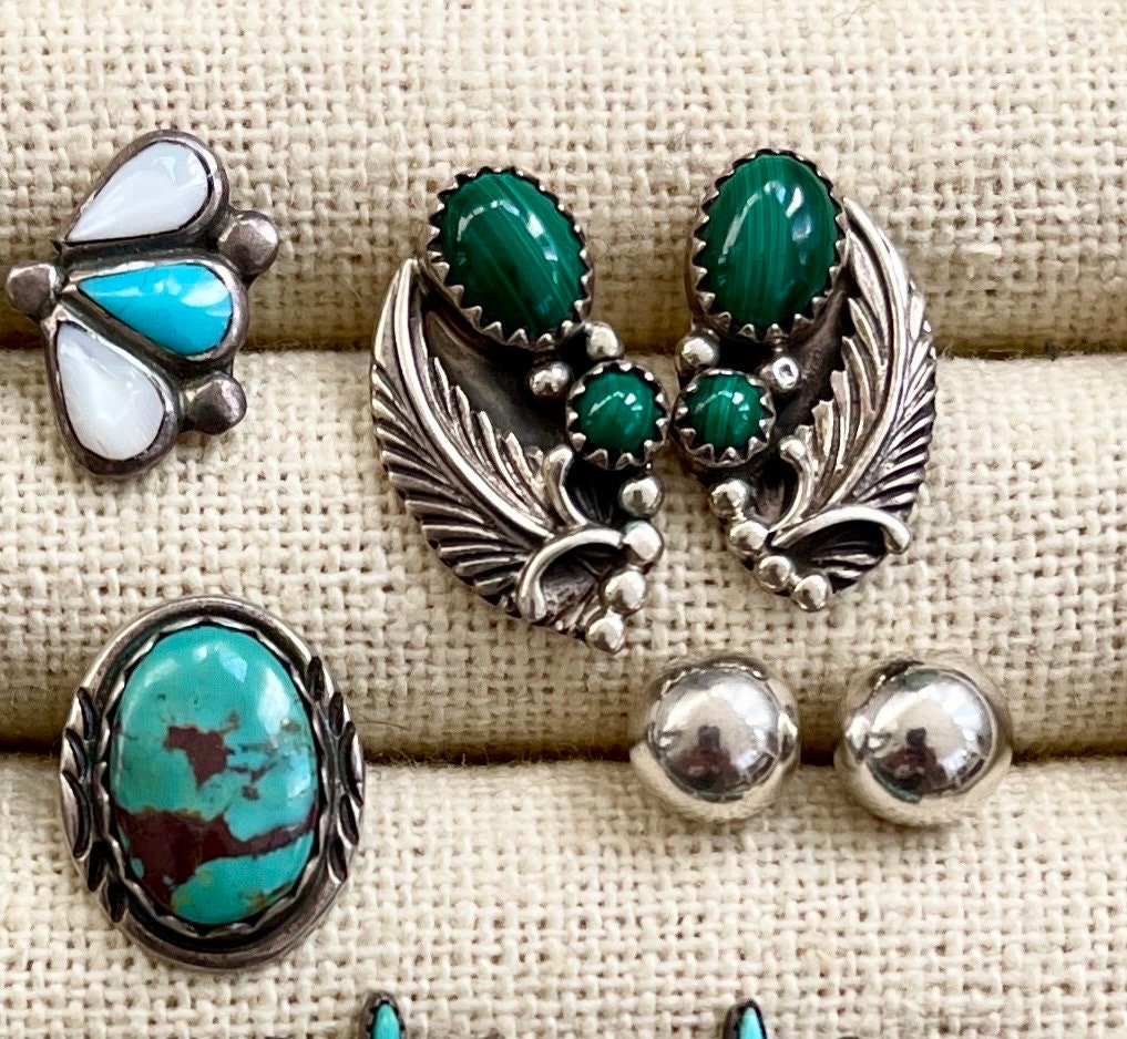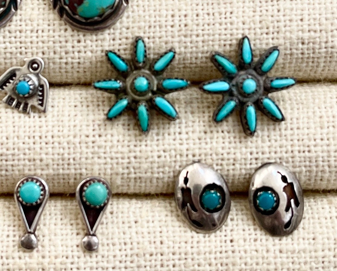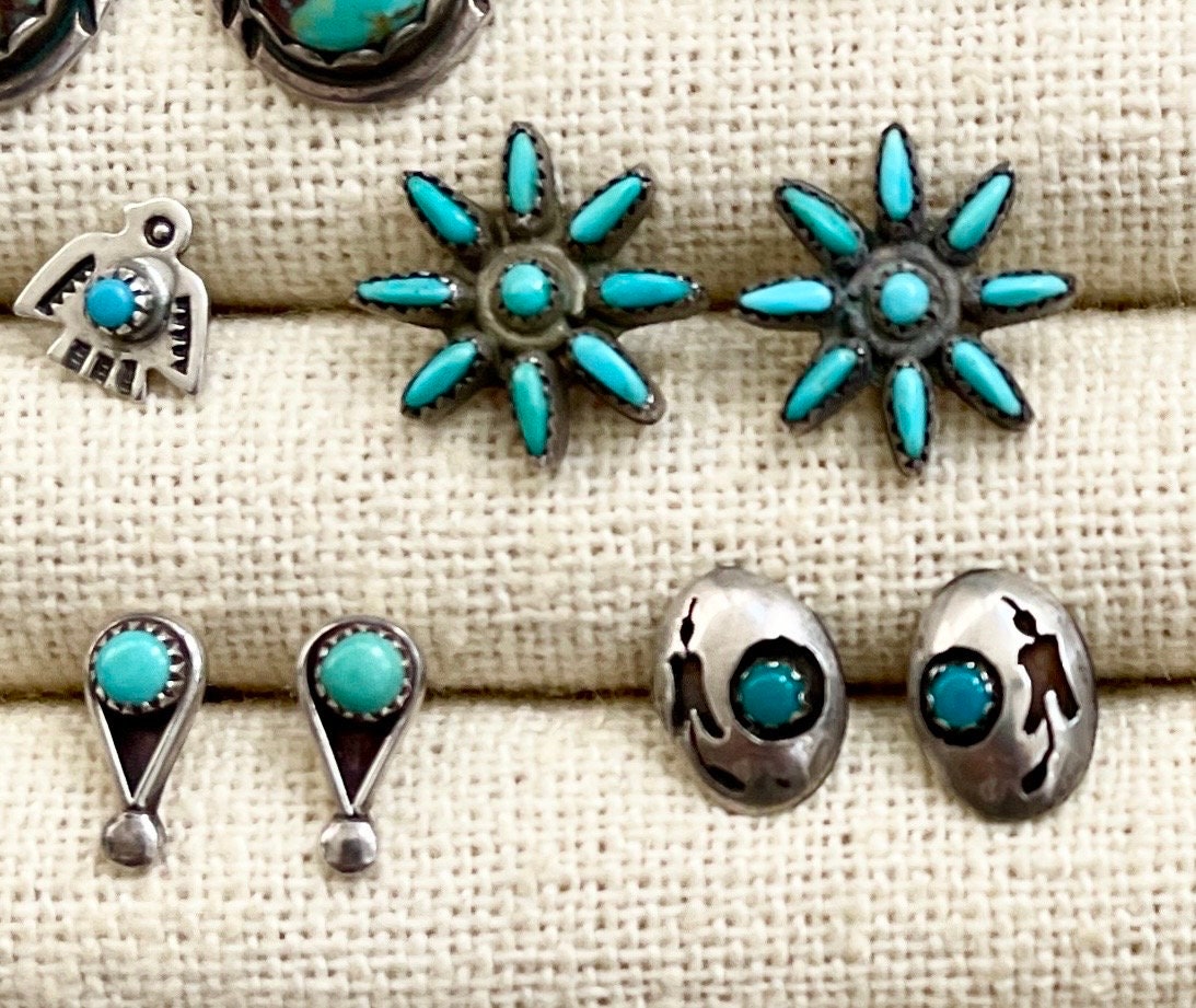 Vintage Native American sterling silver stud earrings available in eight styles: