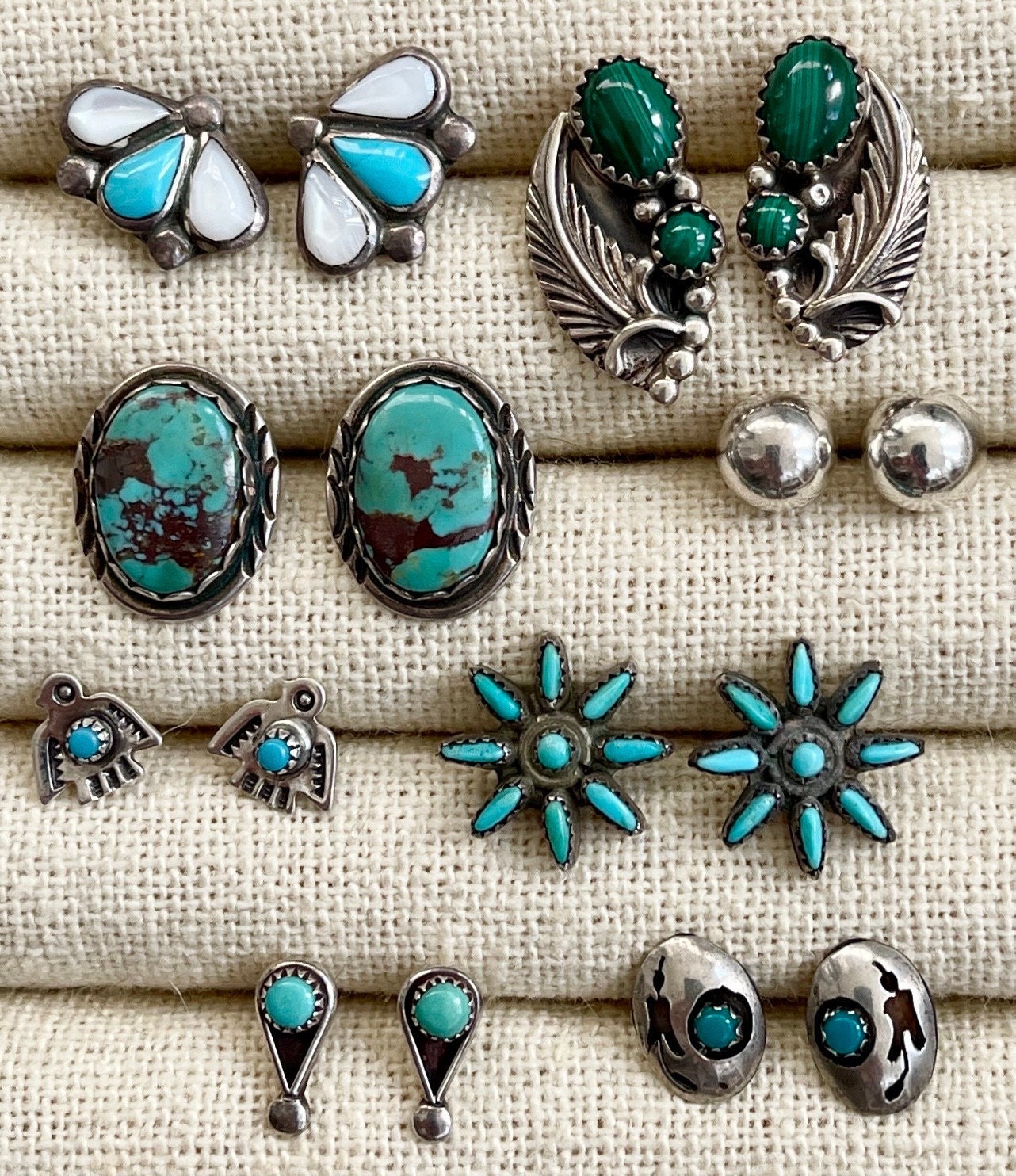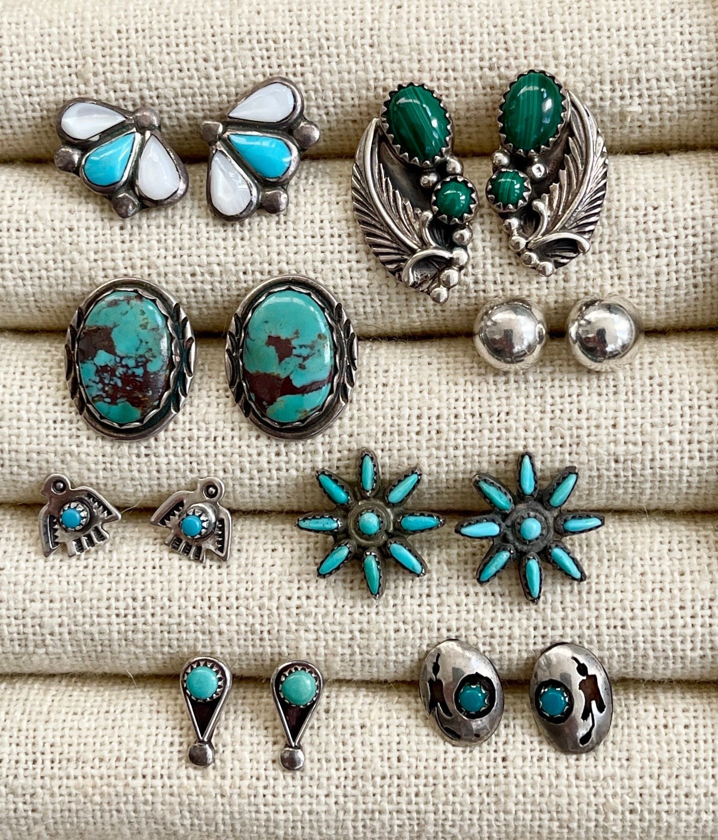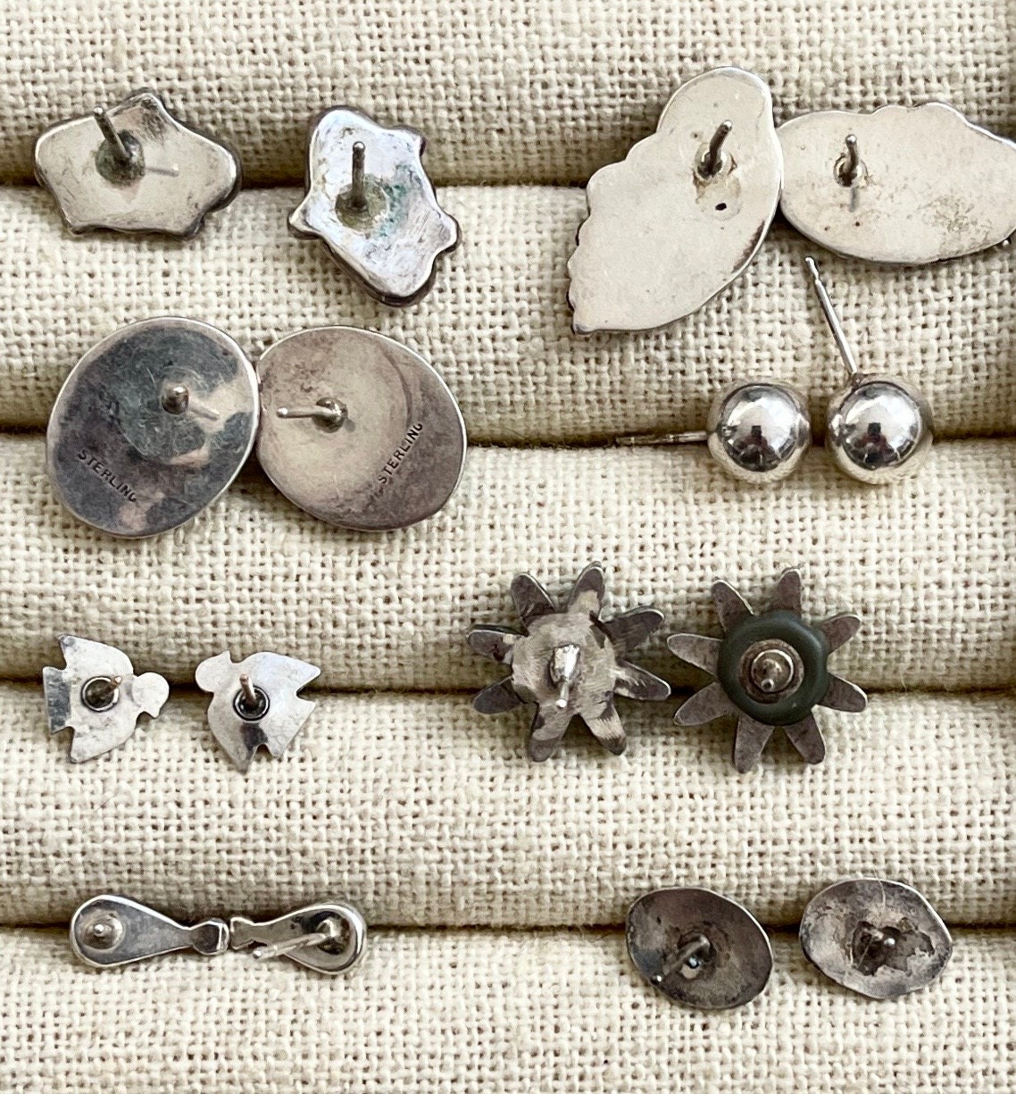 Vintage Native American sterling silver stud earrings available in eight styles: