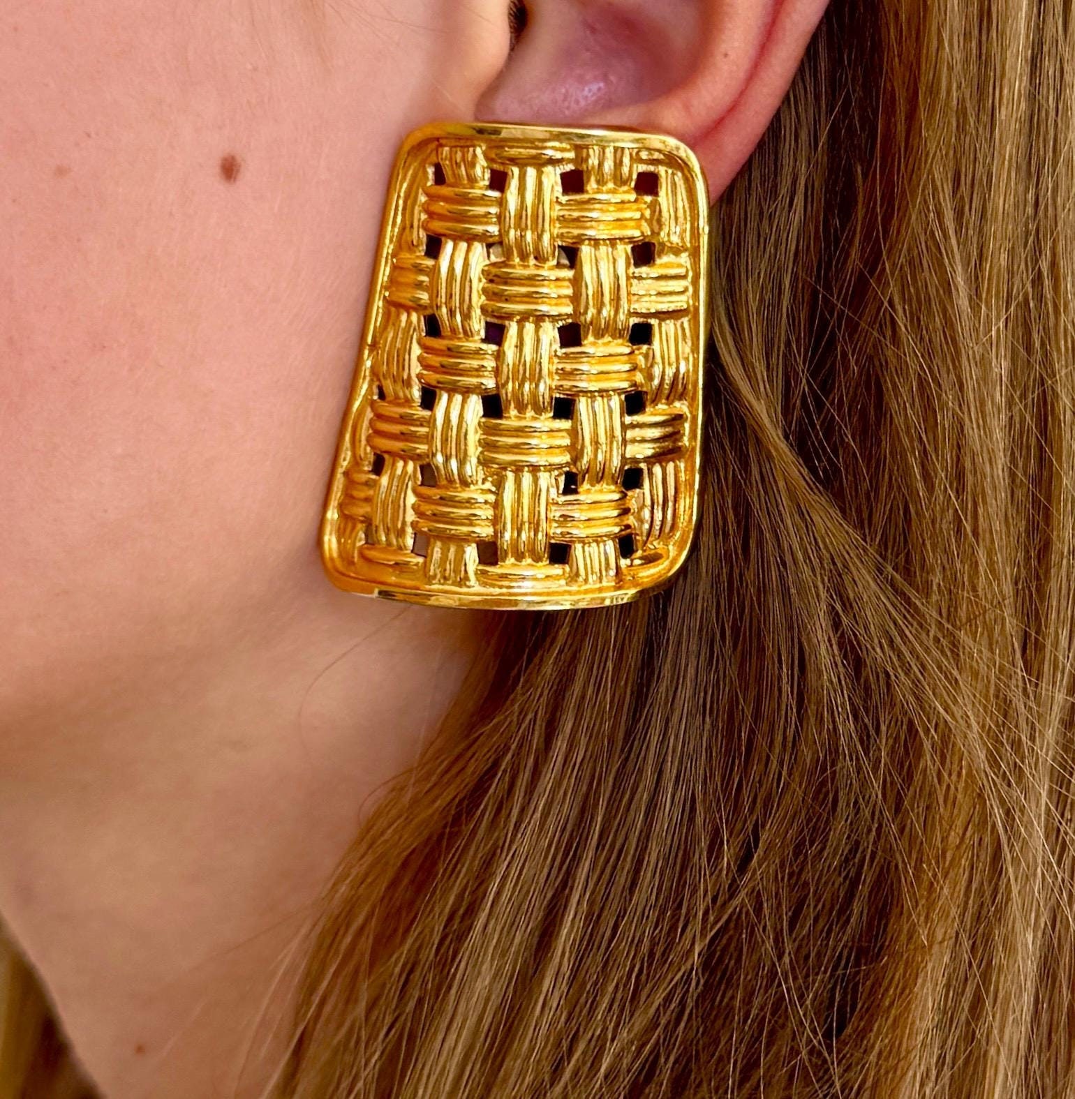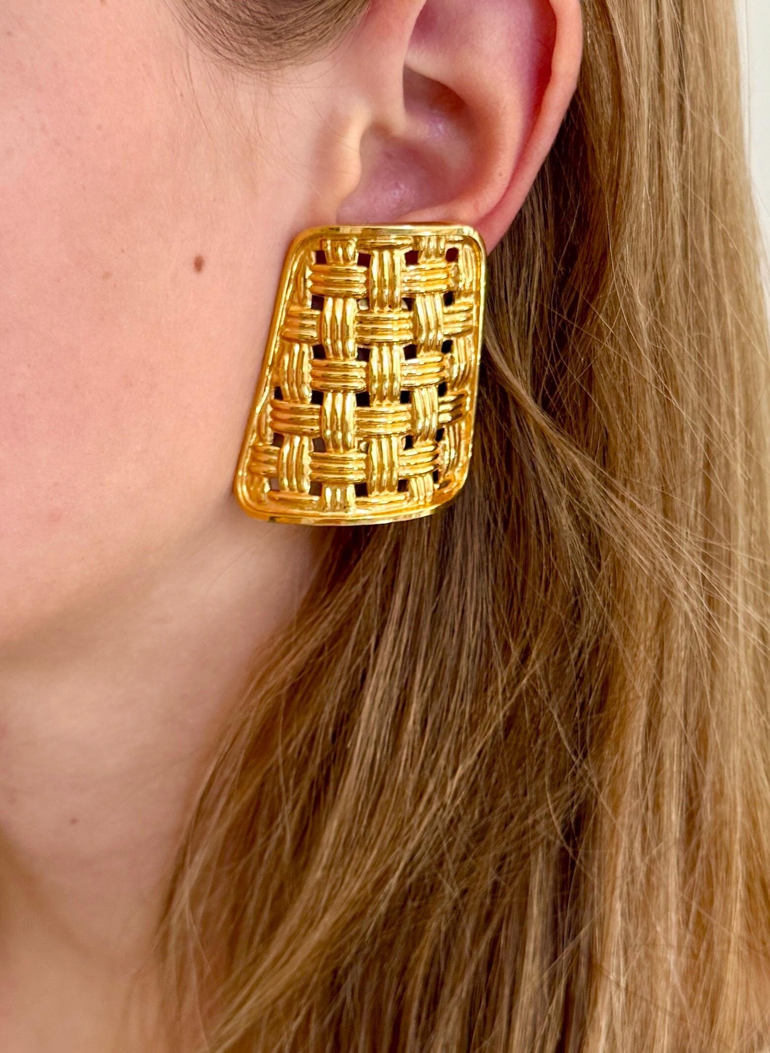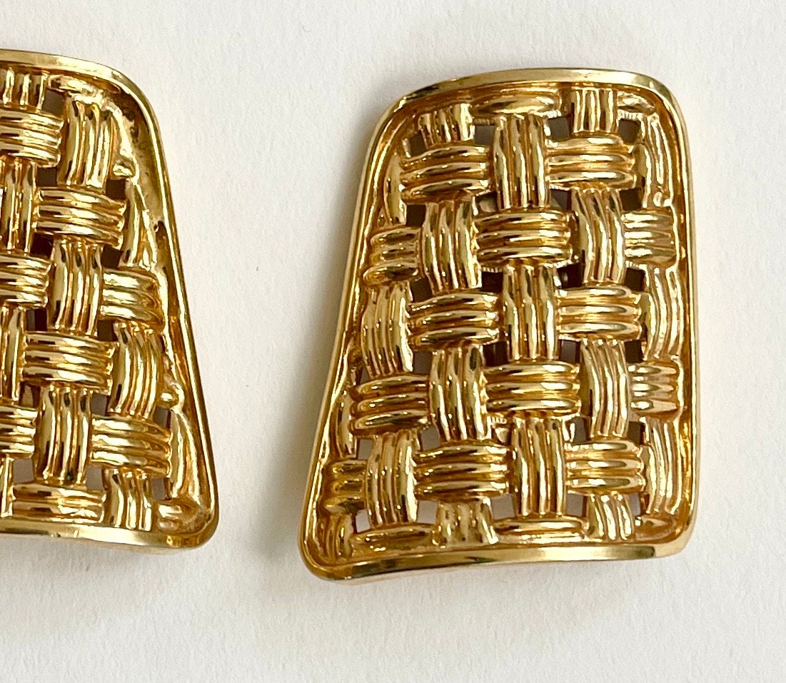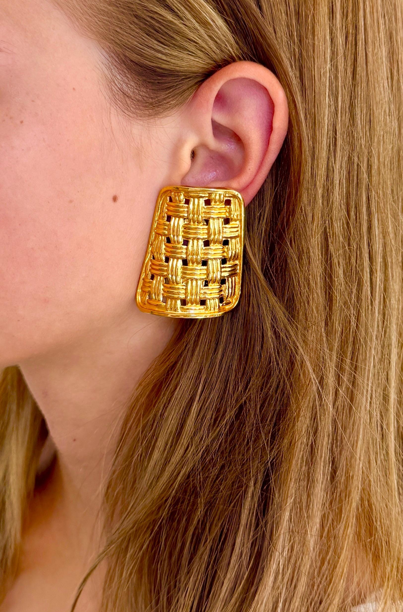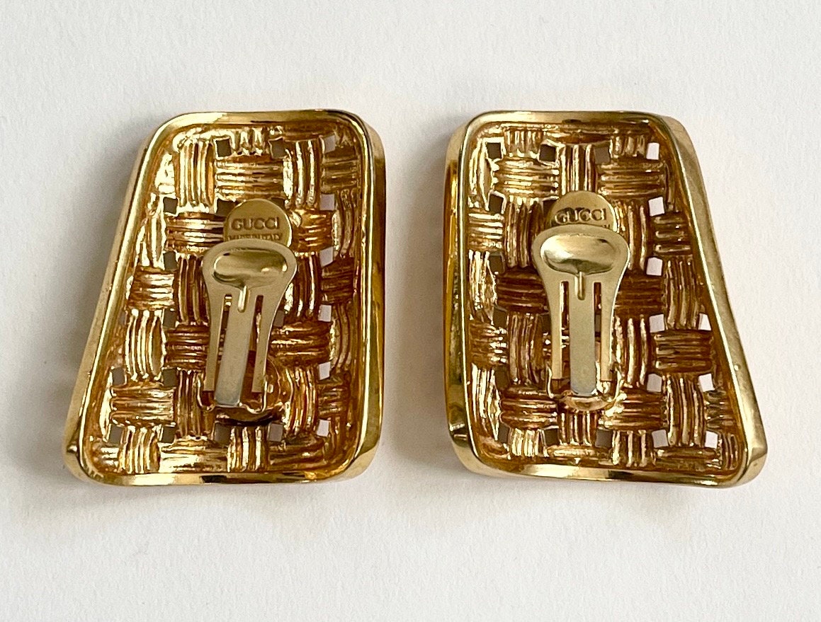 Vintage 90's Gucci gold tone basketweave clip on earrings