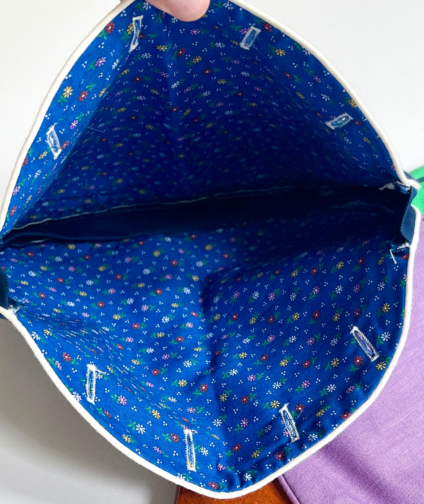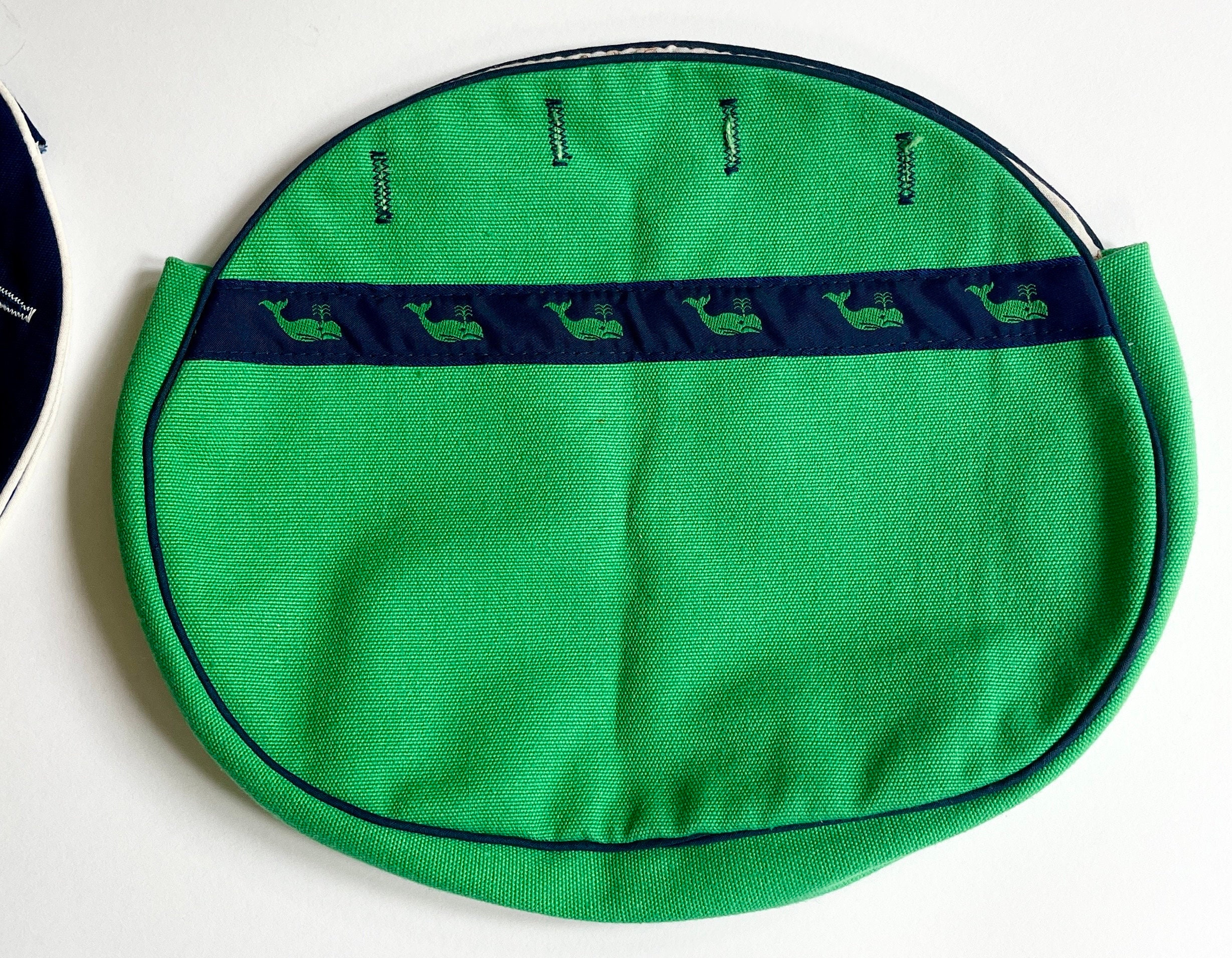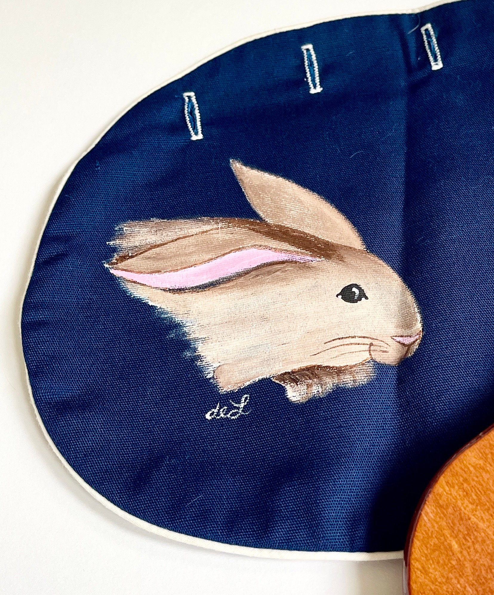 Includes three coveres: navy blue with hand-painted bunny head, solid purple and green with whale trim