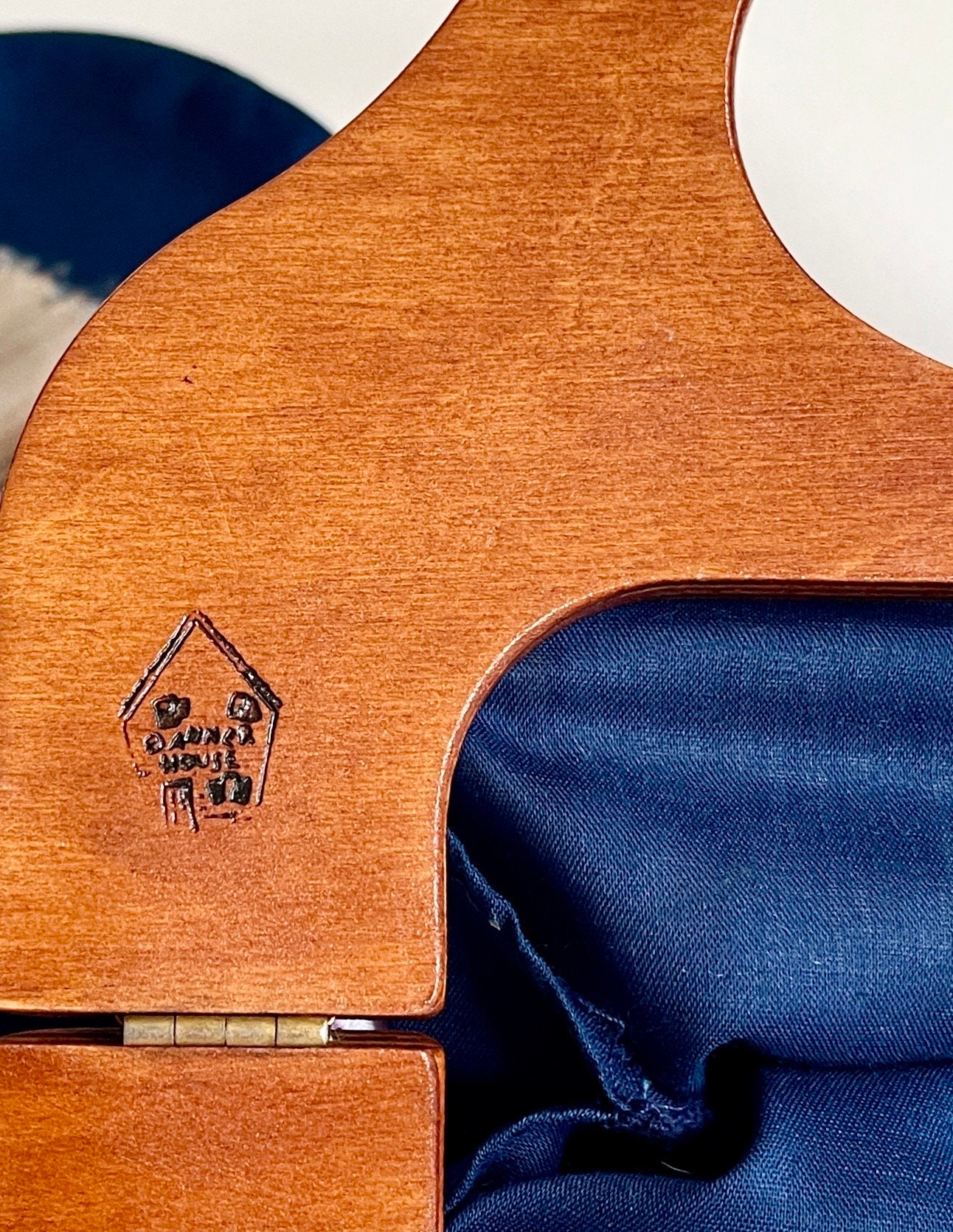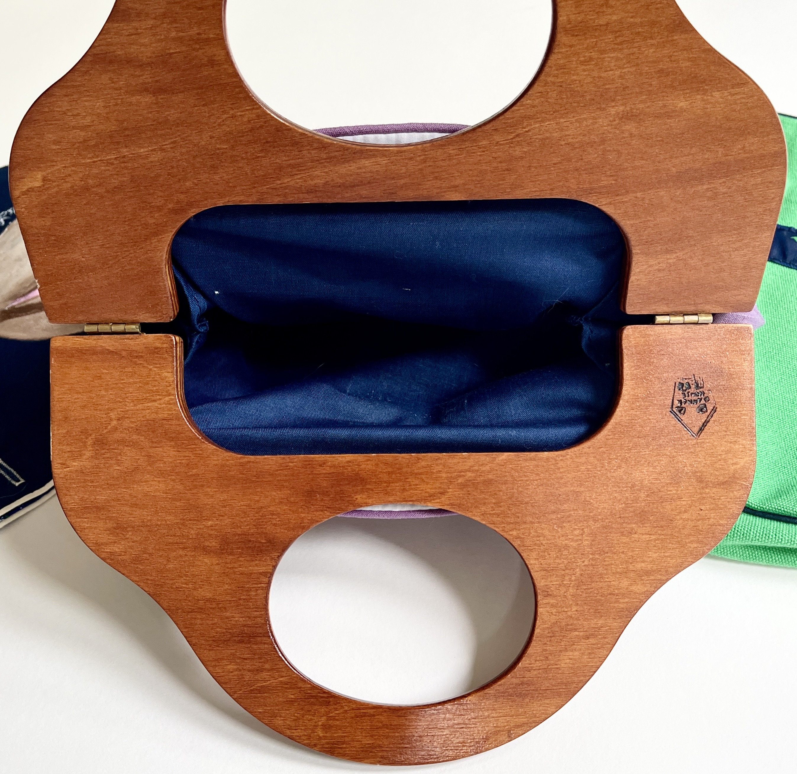 Vintage 70's Banner House interchangeable purse with three covers that button into the wood frame