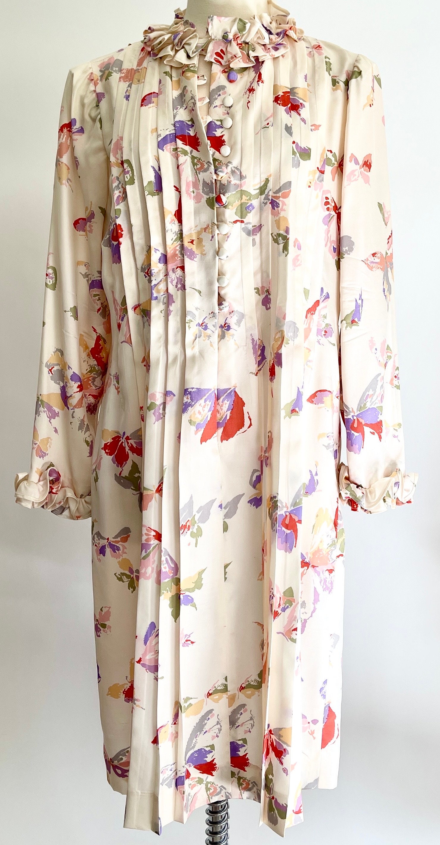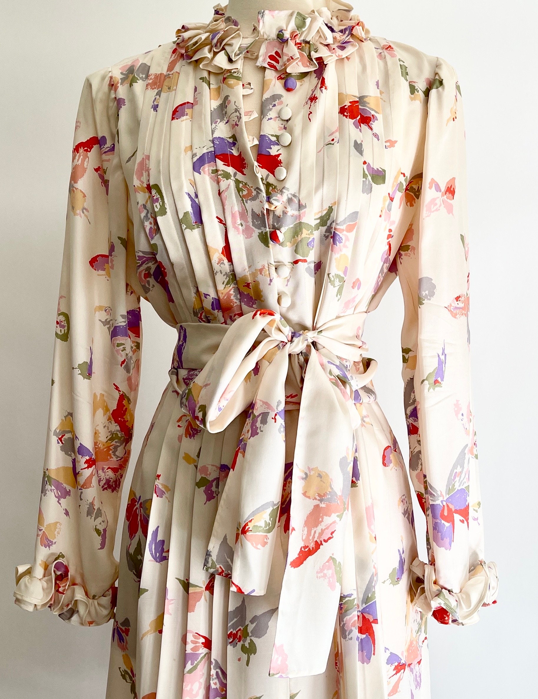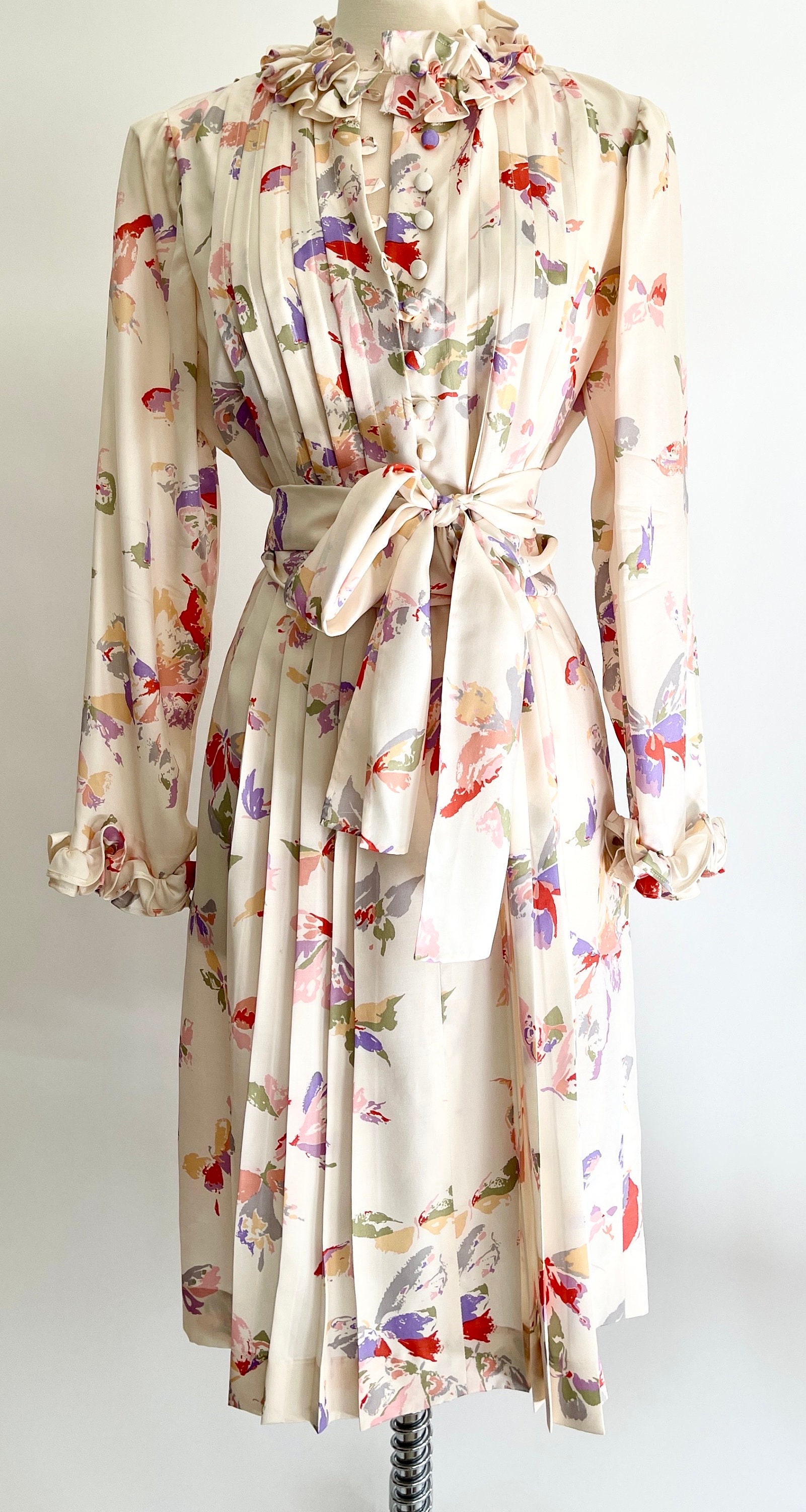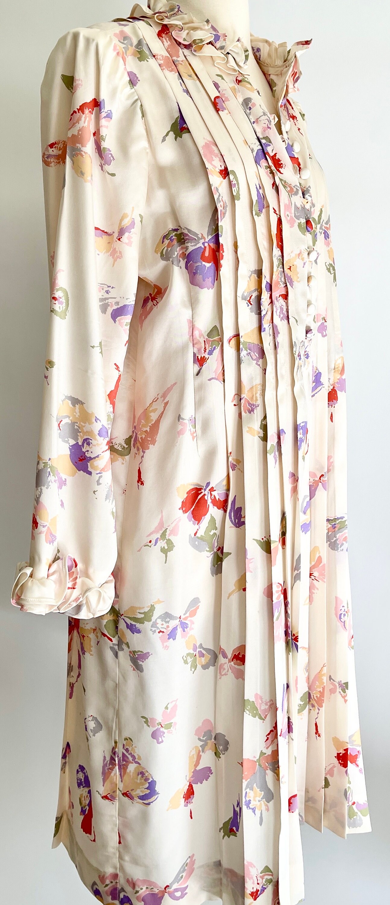 Pretty vintage floral & butterfly print silk dress