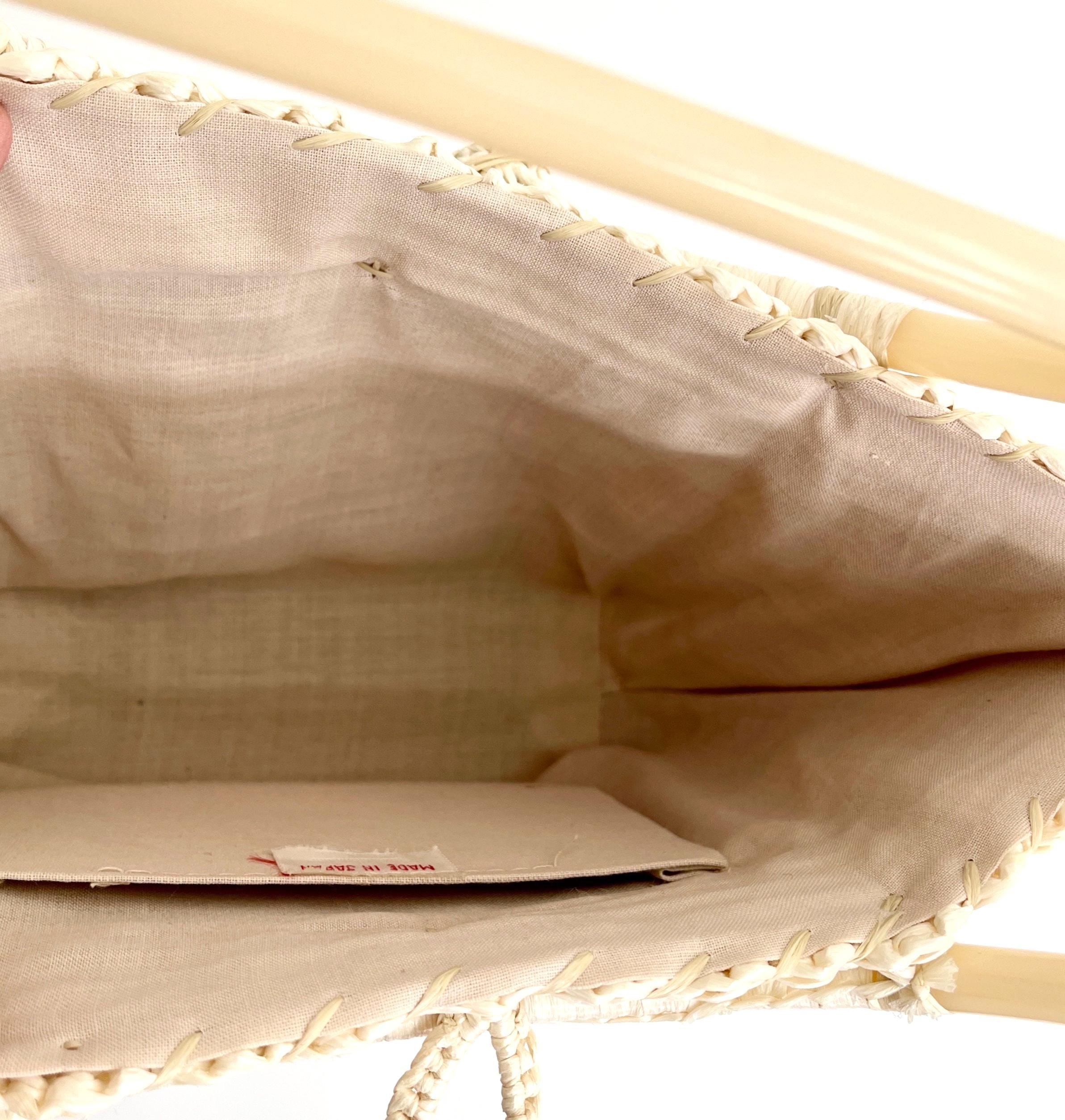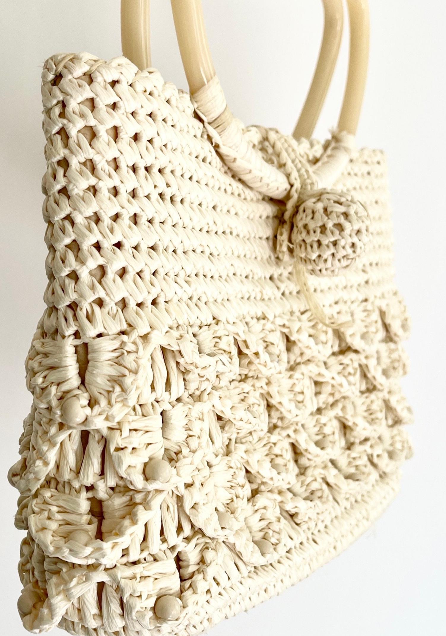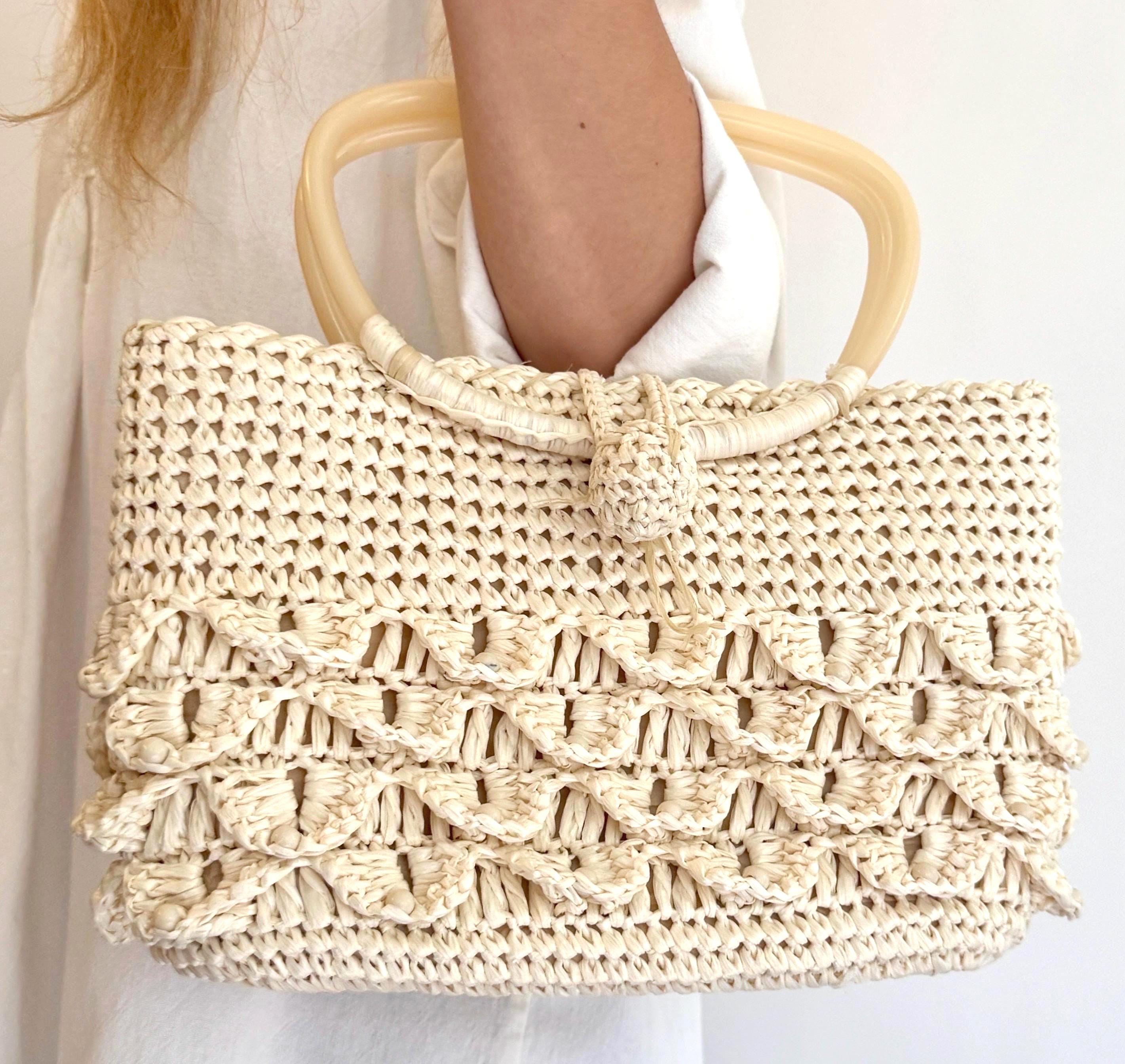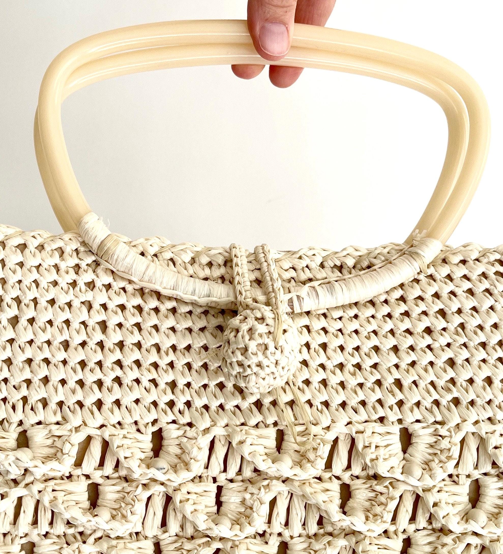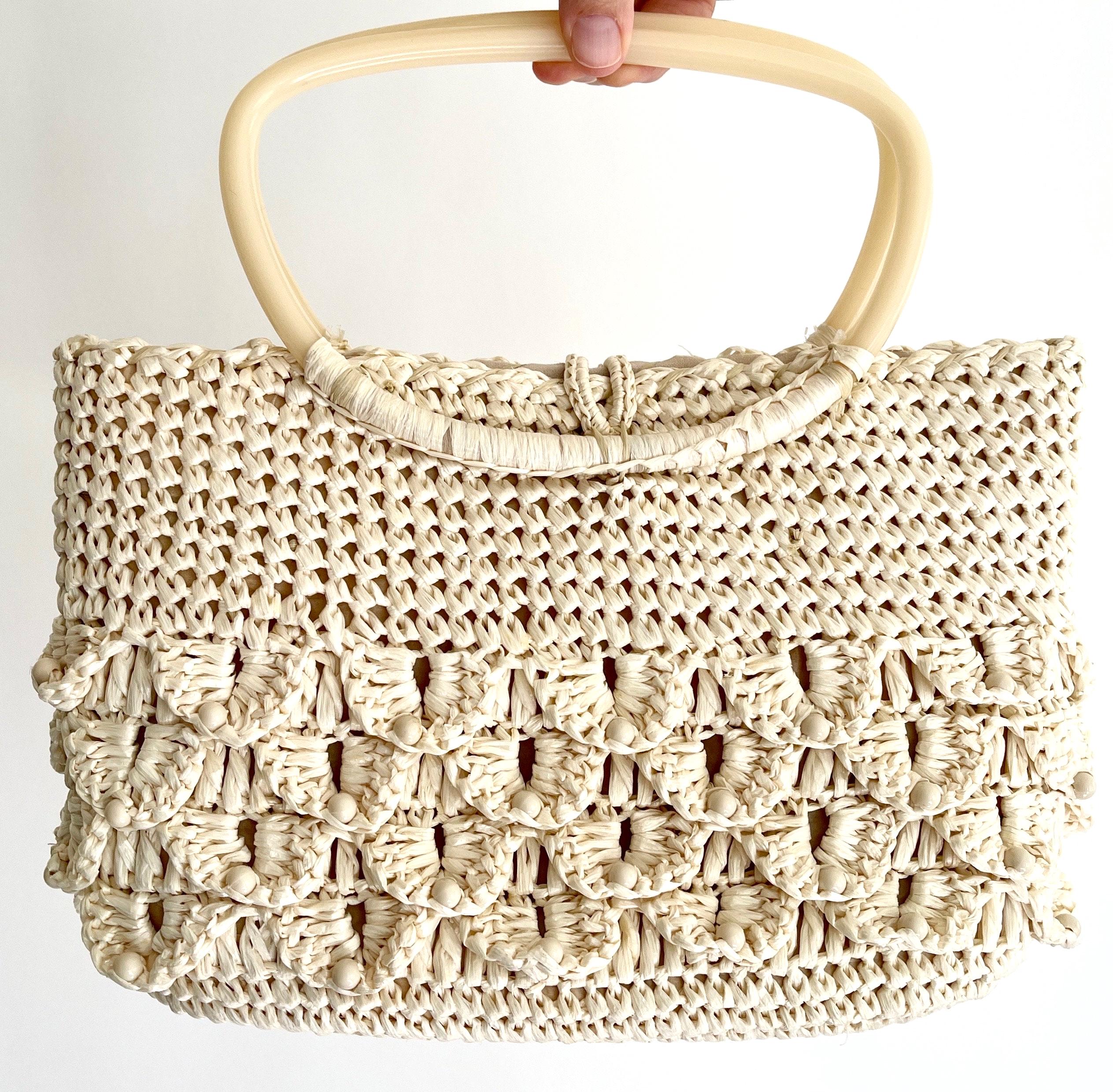Adorable vintage 50's/60's natural white woven raffia bag with plastic handles