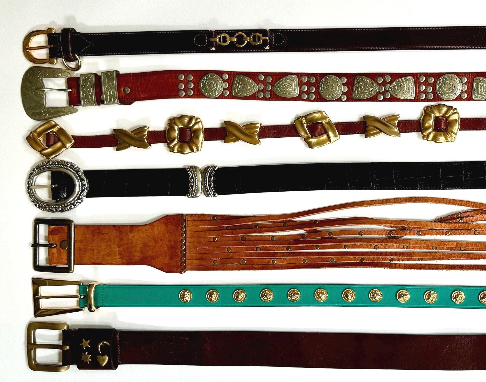 Belts are in pre-owned vintage condition with age-related wear including distressing, discoloration, wear, scratches, etc. If you have a question about a specific style, please don't hesitate to message us!