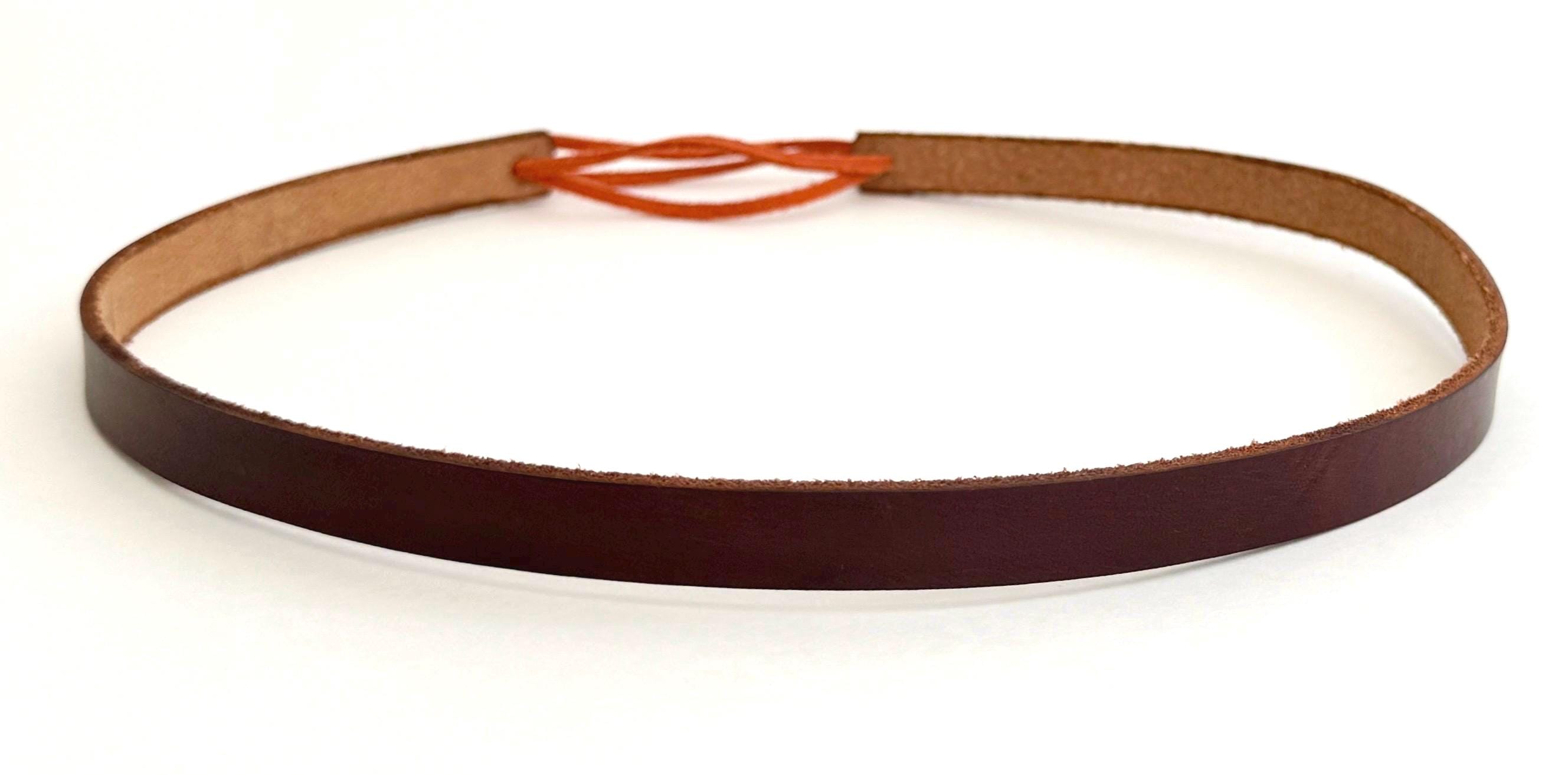 STYLE #7: Solid dark brown leather band with burnt orange leather adjuster. Width: 1/2"