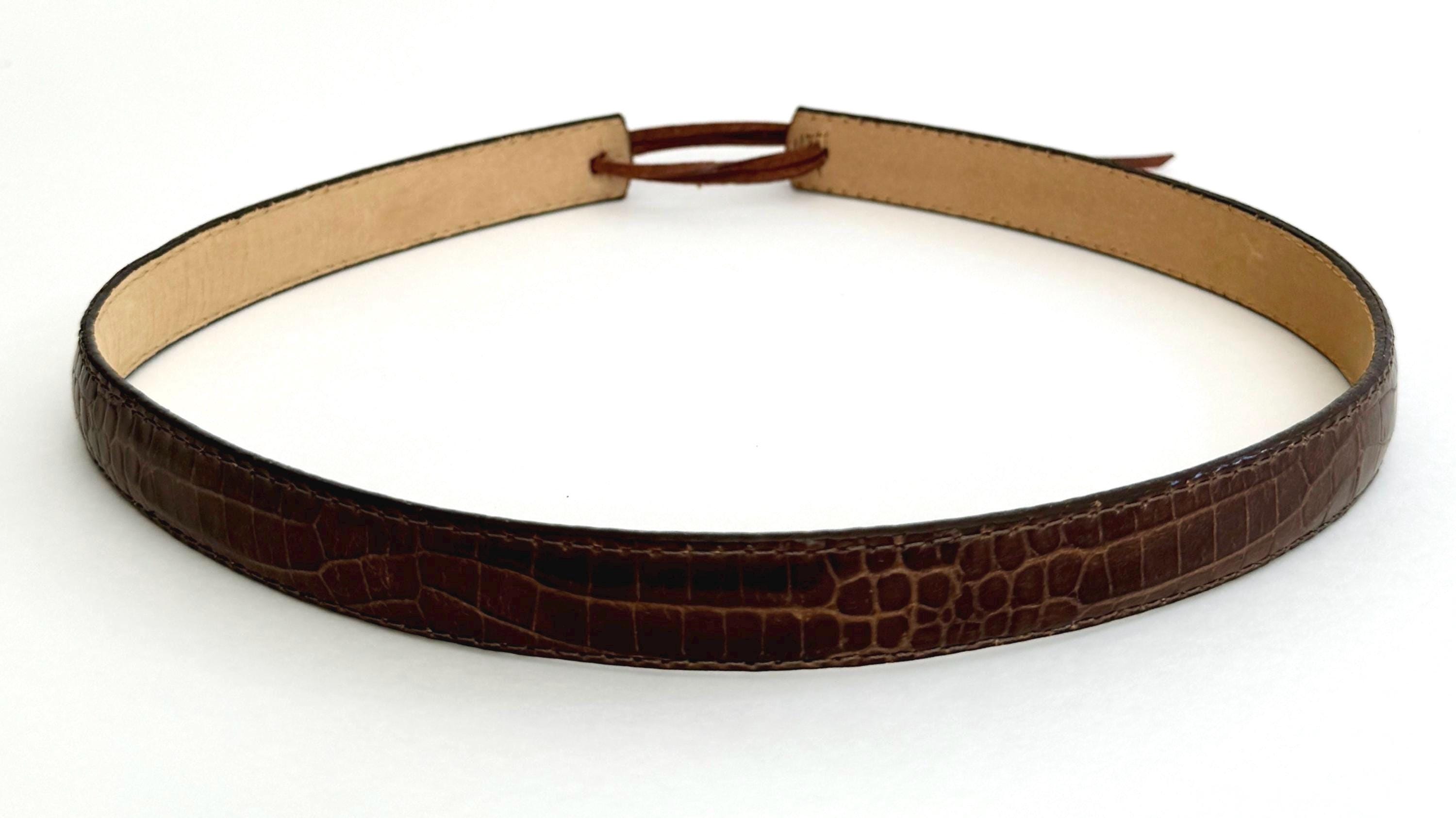 STYLE #8: Reptile embossed chocolate brown leather band with dark brown leather adjuster. Width: 3/4"