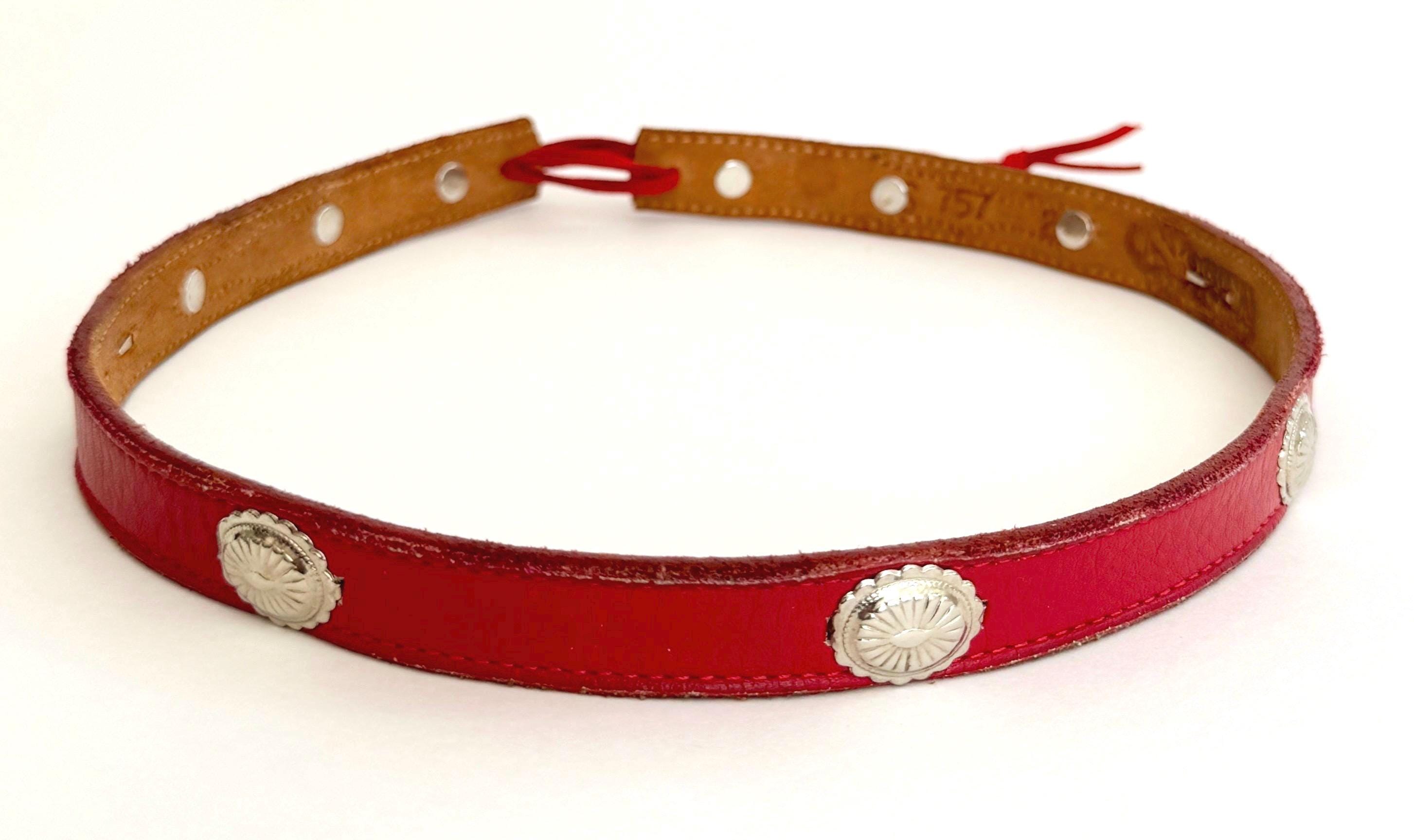 STYLE #2: Red leather band with silver metal studs & conchas. Red leather adjuster. Width: 5/8"