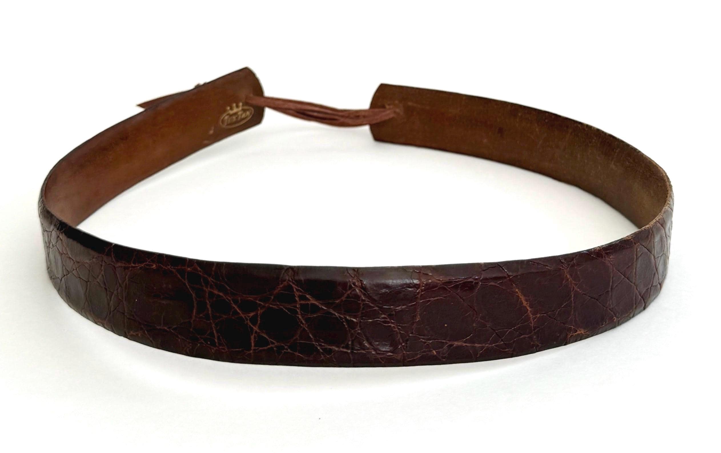 STYLE #1: Glossy dark brown croco embossed leather band with brown leather adjuster. Width: 7/8"