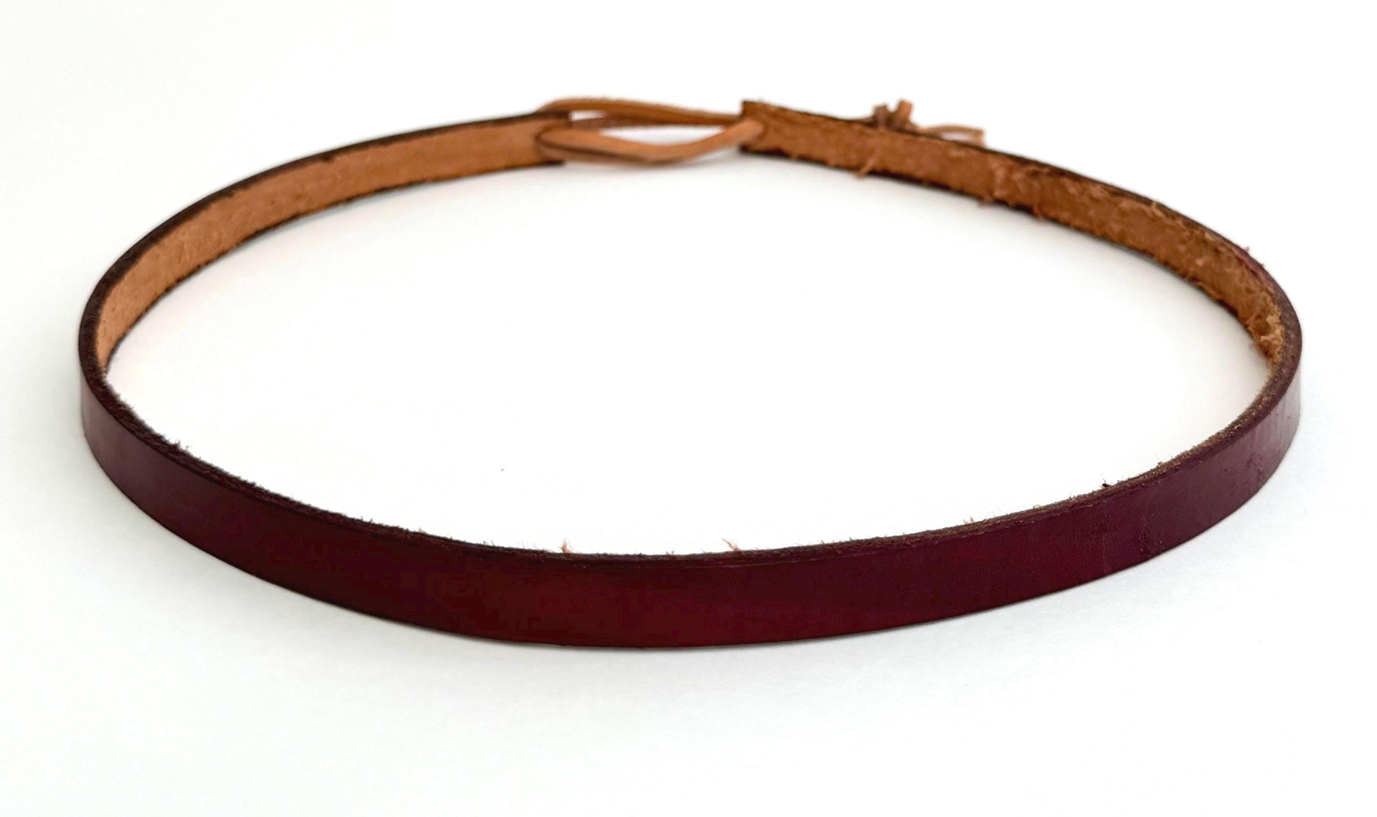 STYLE #8: Thin solid mahogany brown leather band with tan leather adjuster. Width: 3/8"