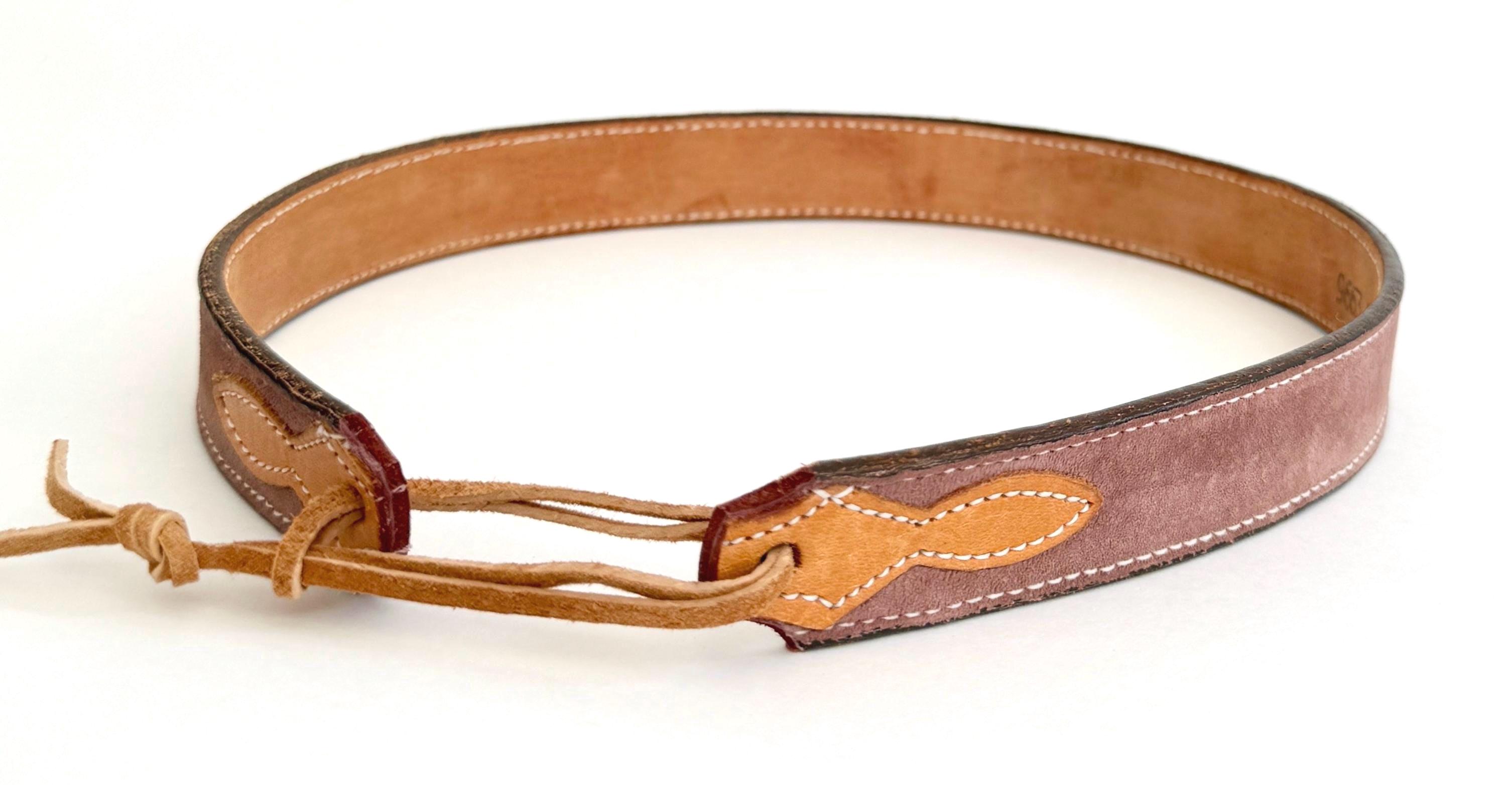 STYLE #3: Soft sueded leather band with Western tan leather appliqué at ends. Tan leather adjuster. Width: 7/8"