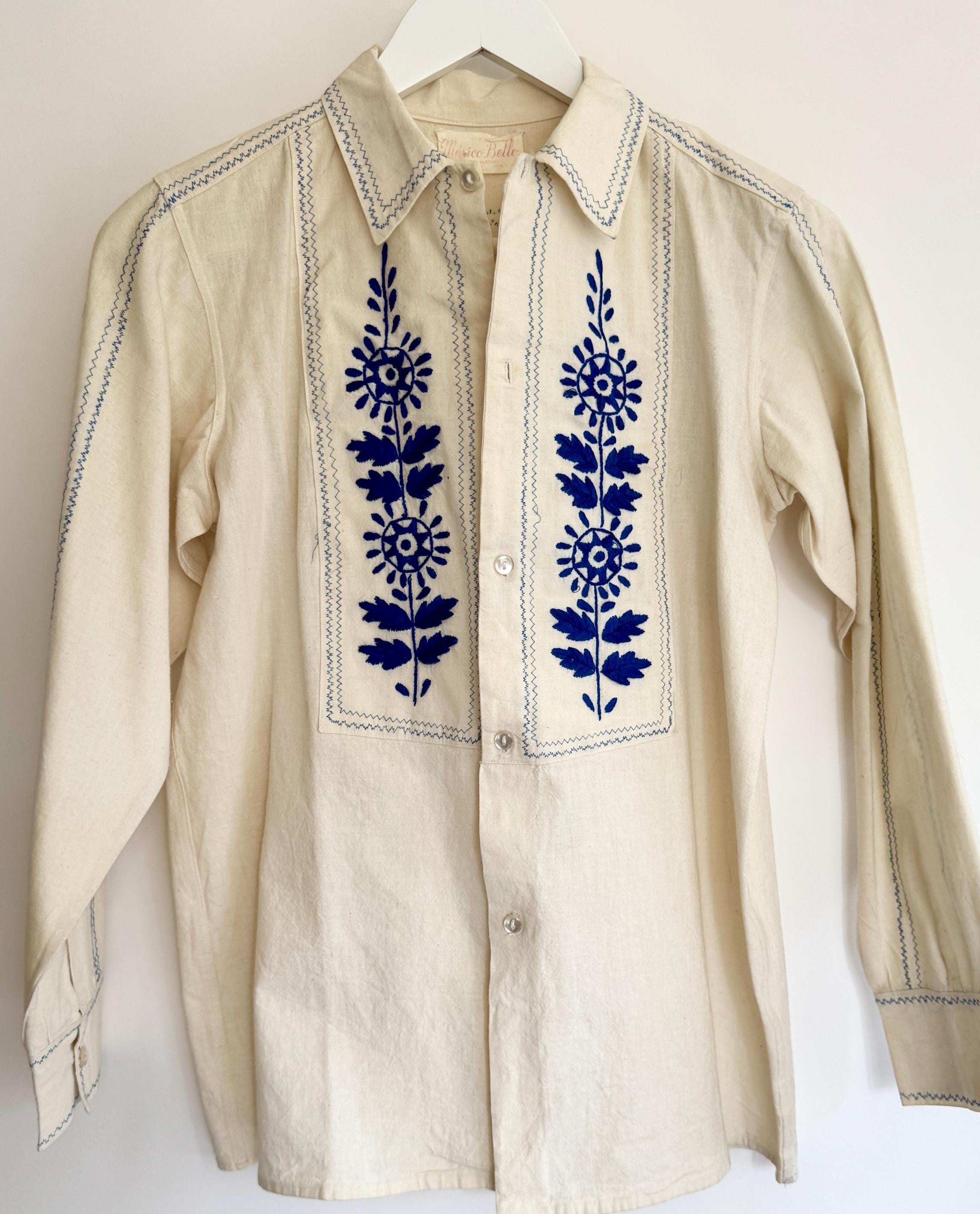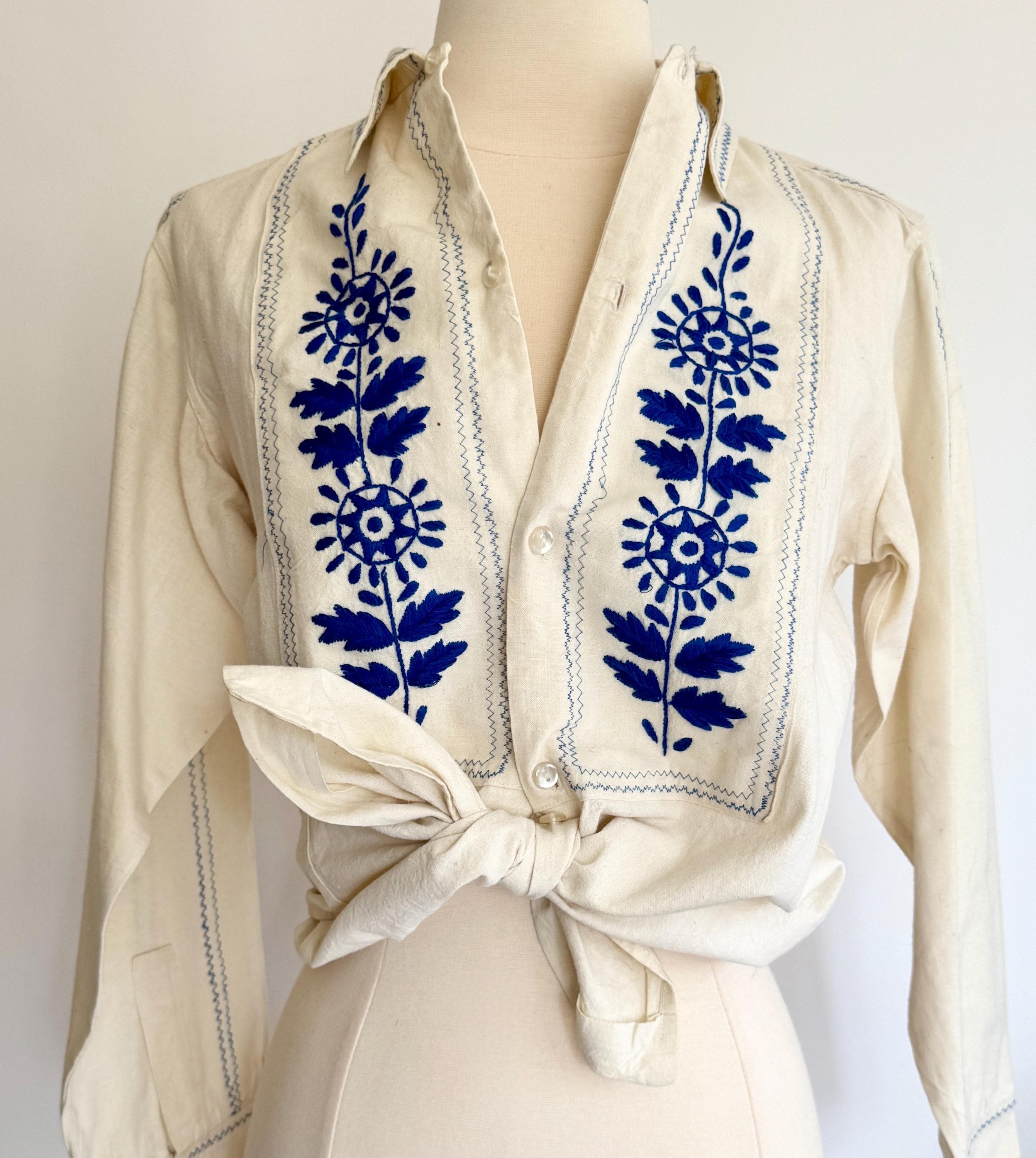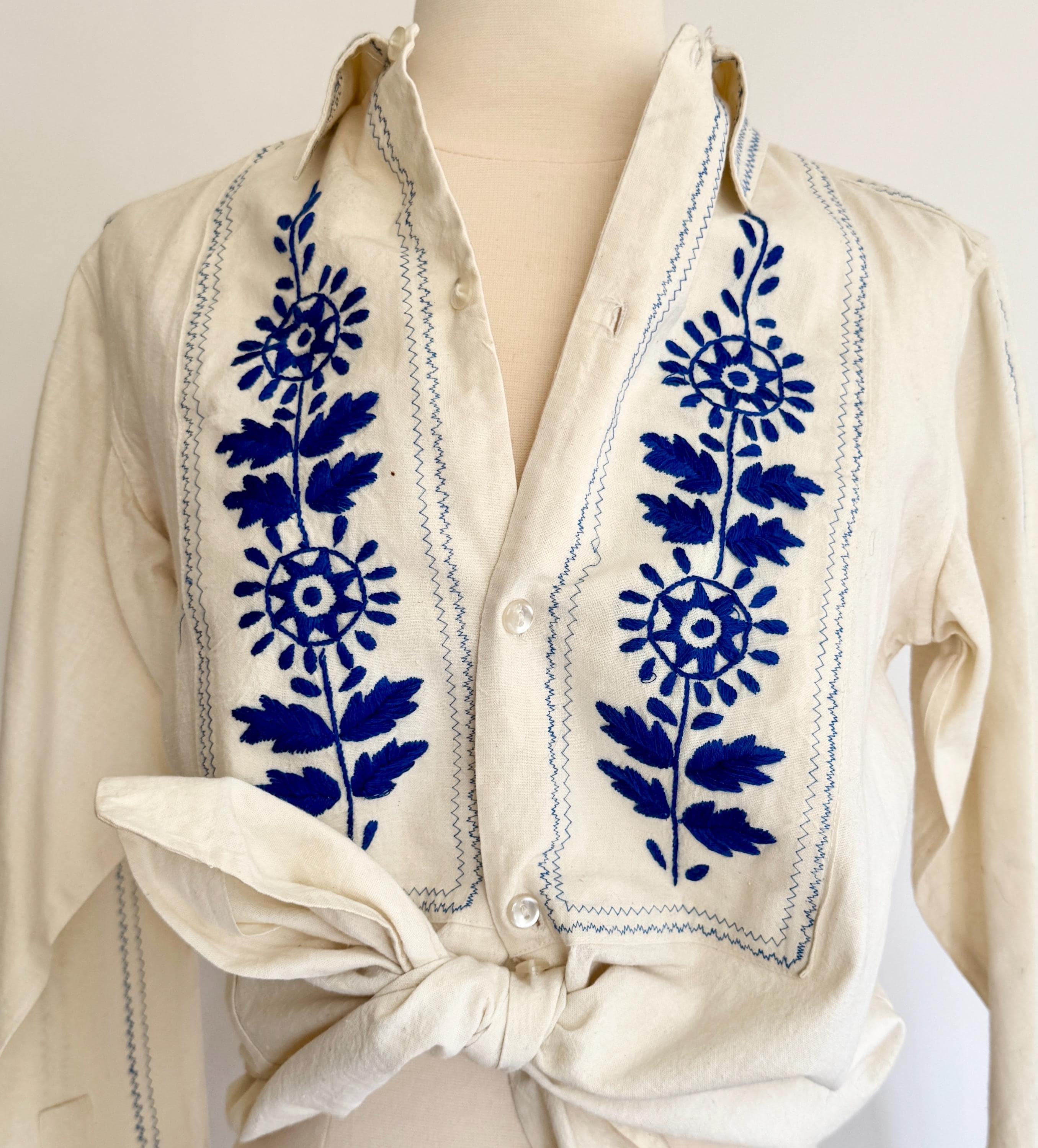 Vintage 60's/70's floral embroidered natural white cotton shirt