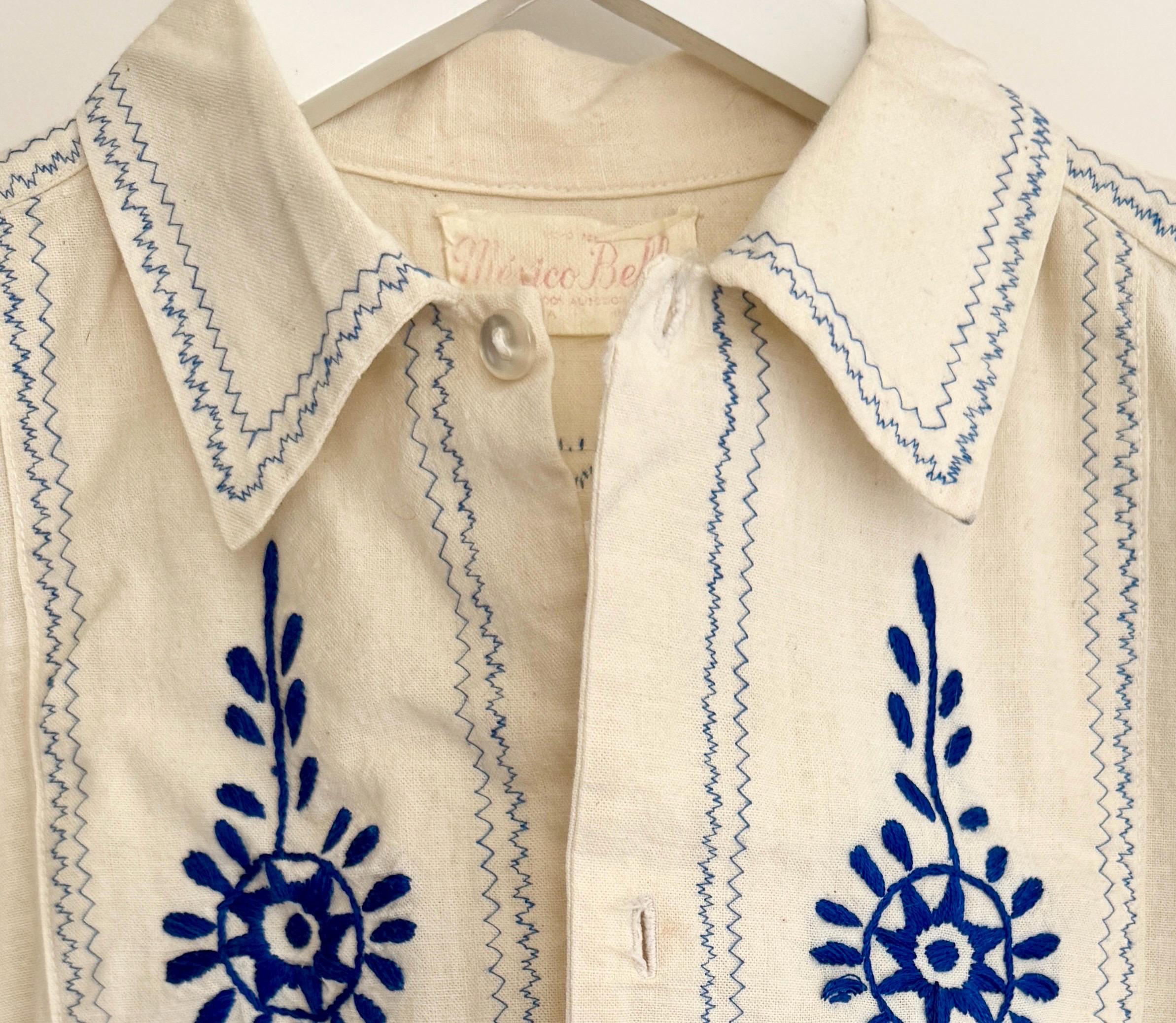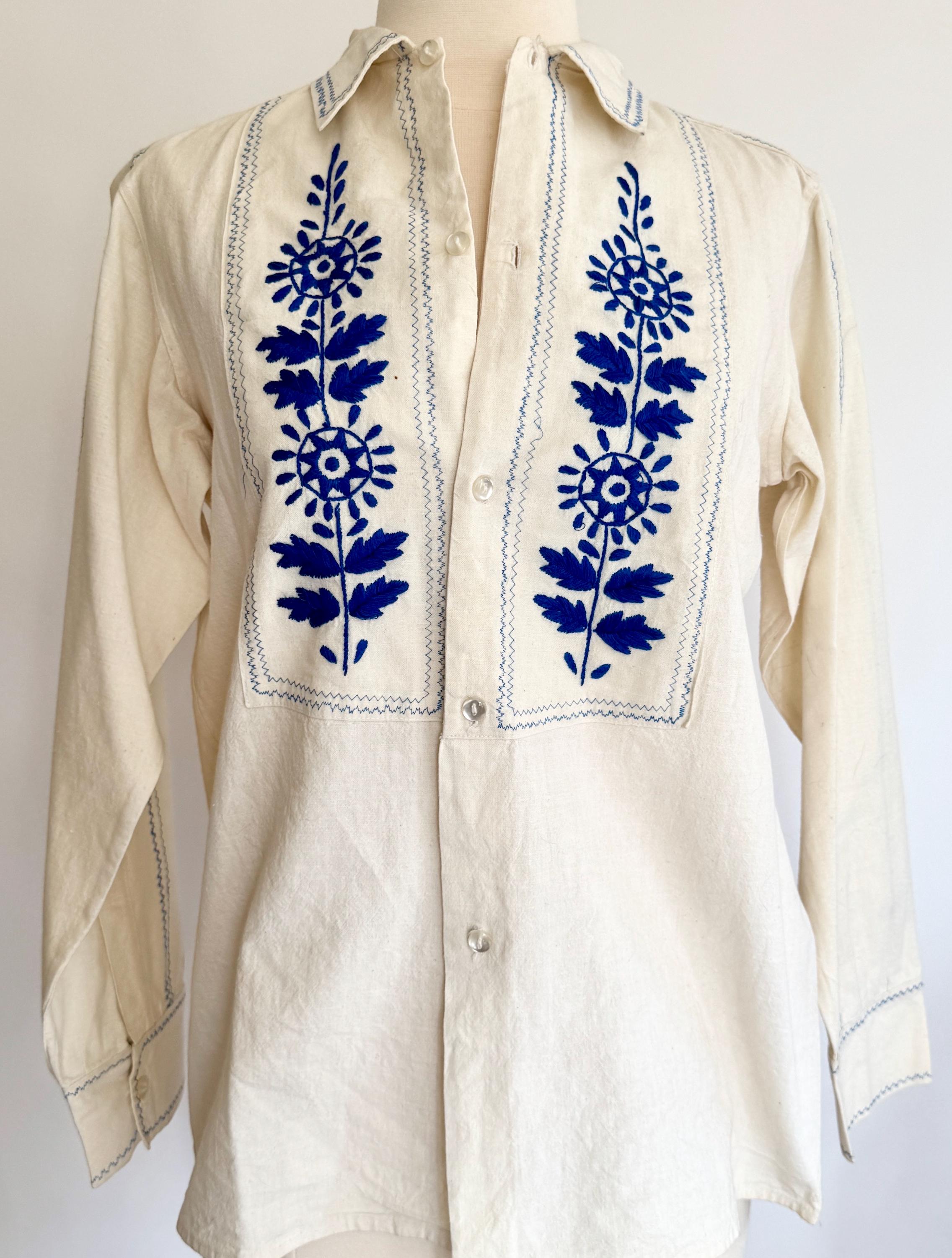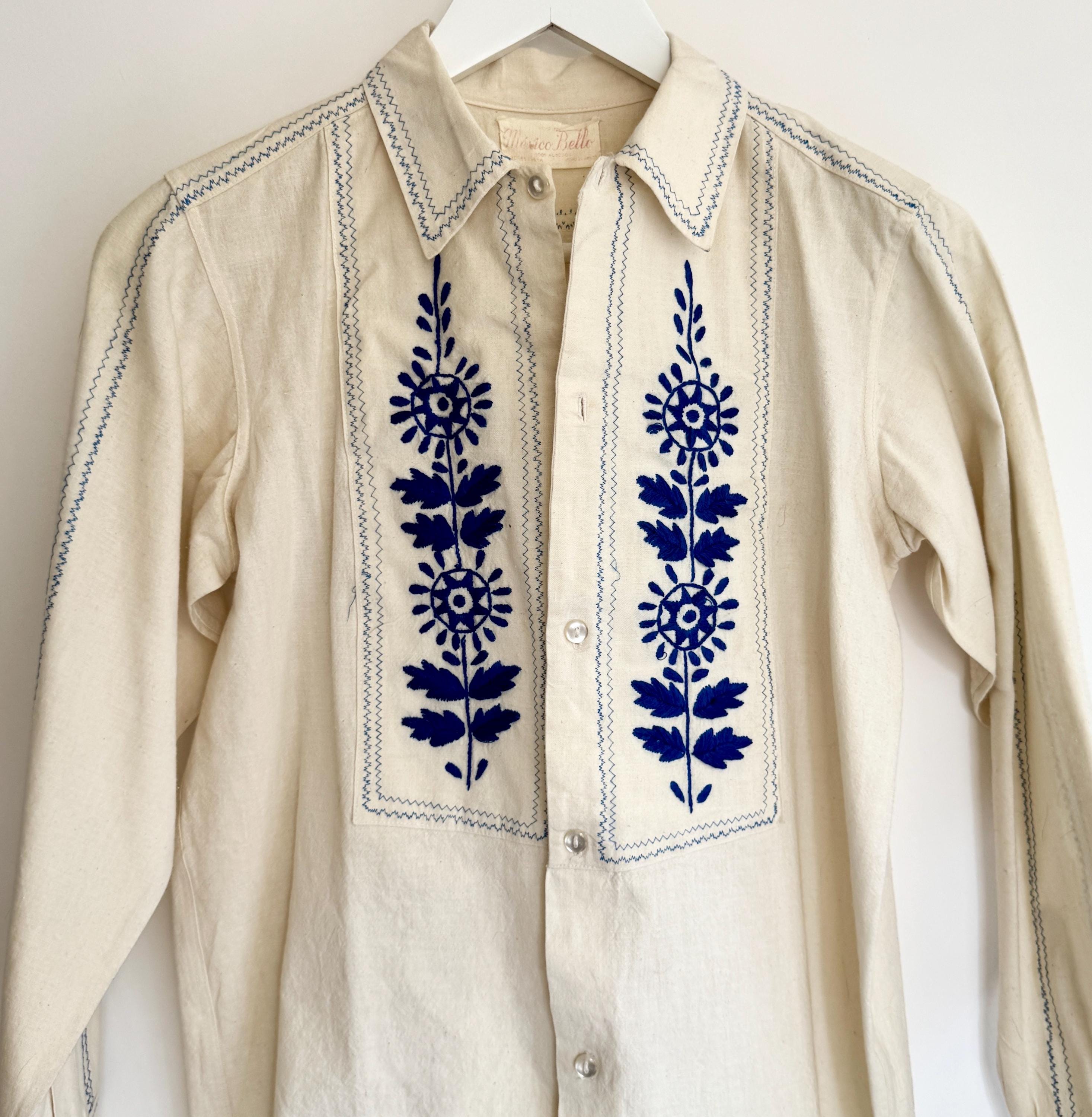 Vintage 60's/70's floral embroidered natural white cotton shirt
