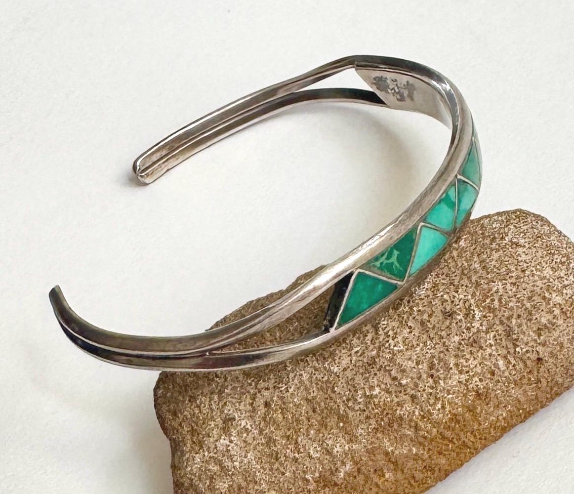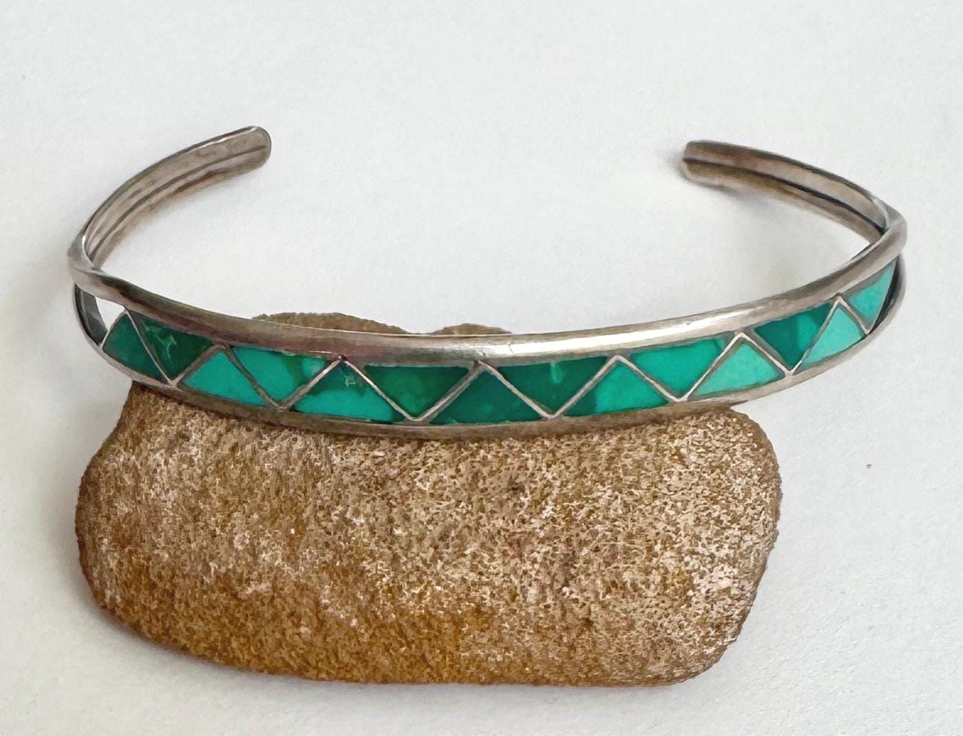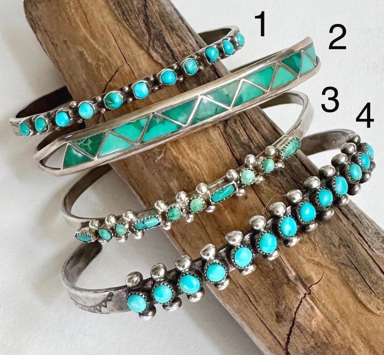 Delicate vintage old pawn Native American Zuni cuff bracelets with snake eye set natural turquoise stones