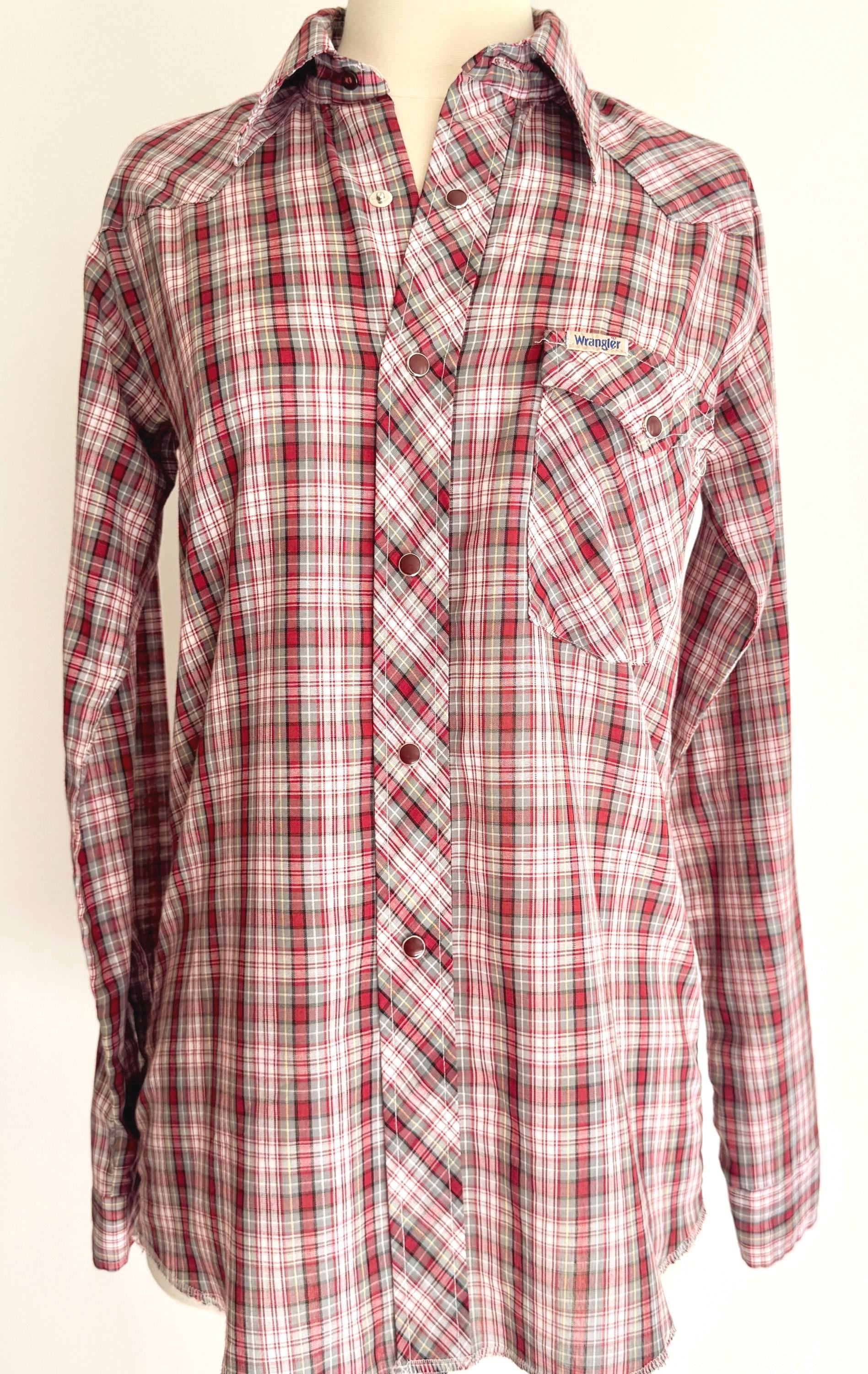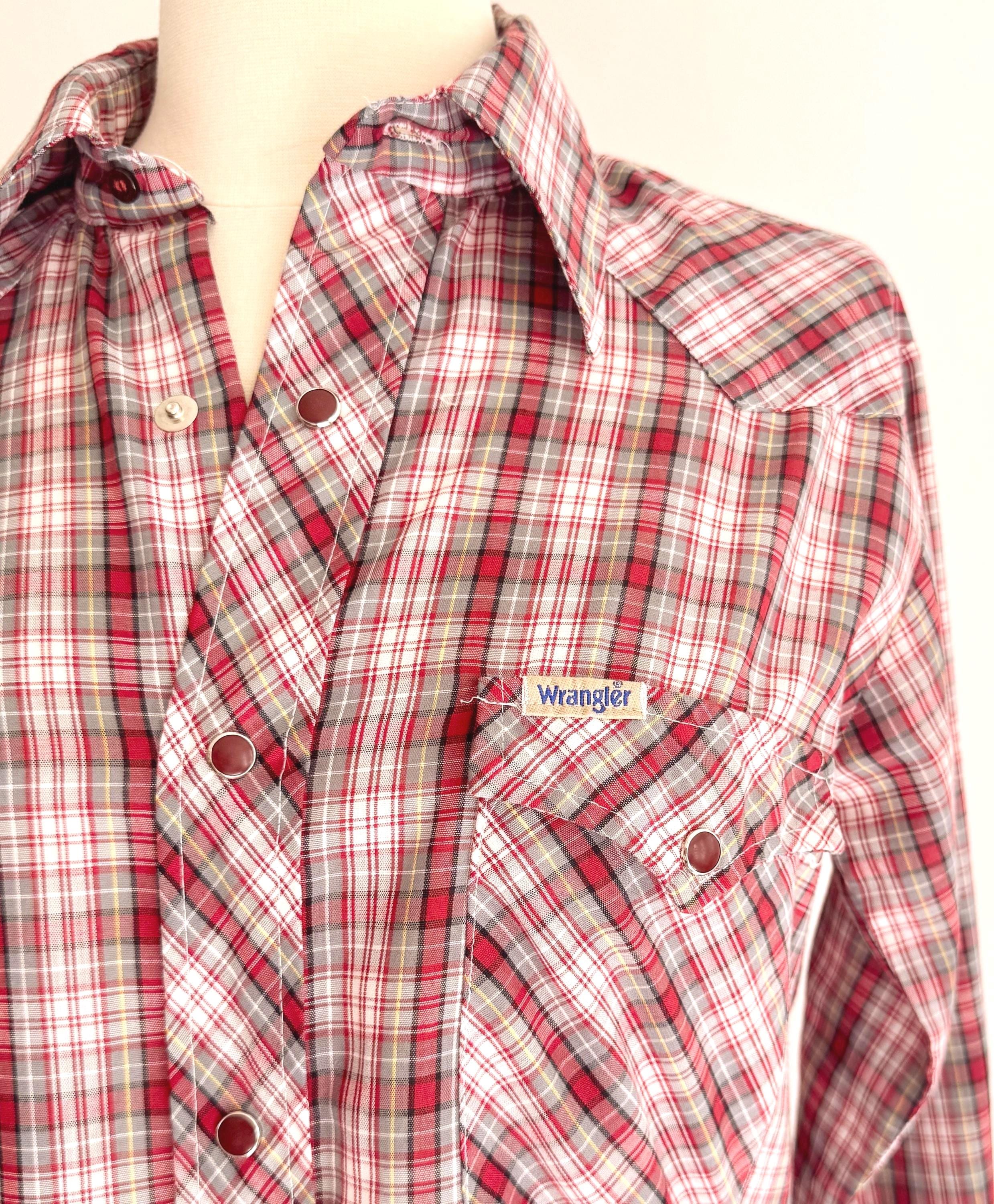 Photographed on a women's size 2/4 dress form. Pretty sure this was originally a meant as a men's shirt due to it's longer length but could be suitable for the ladies - just make sure the measurements work for your frame.