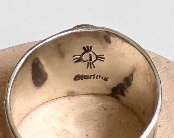 Artist hallmarked with a zia stamp and the letter "J." Stamped "Sterling"