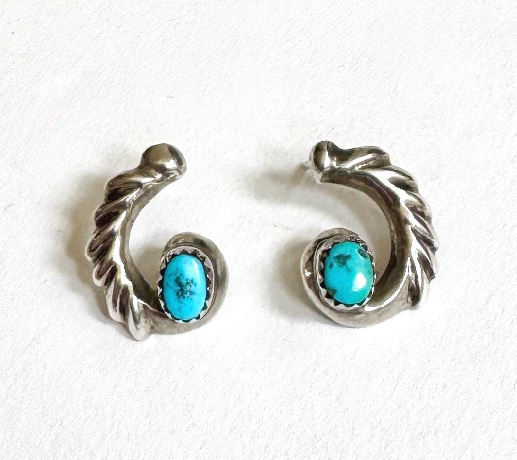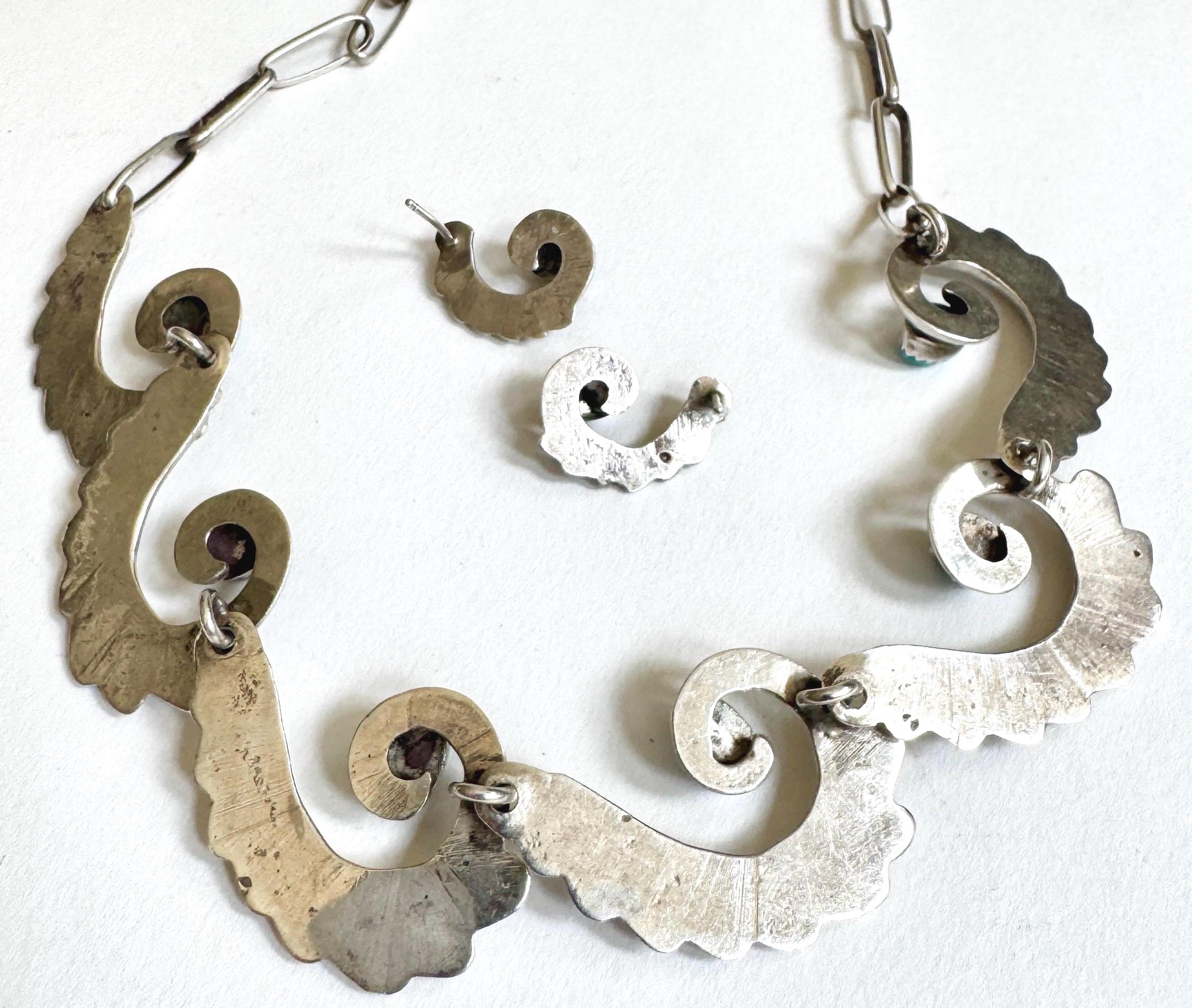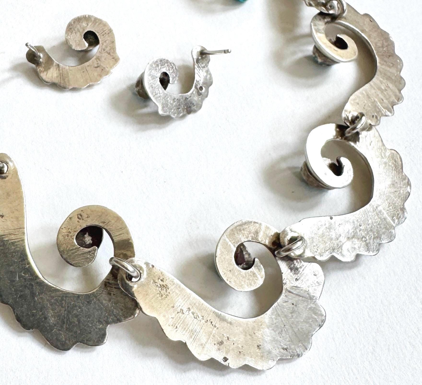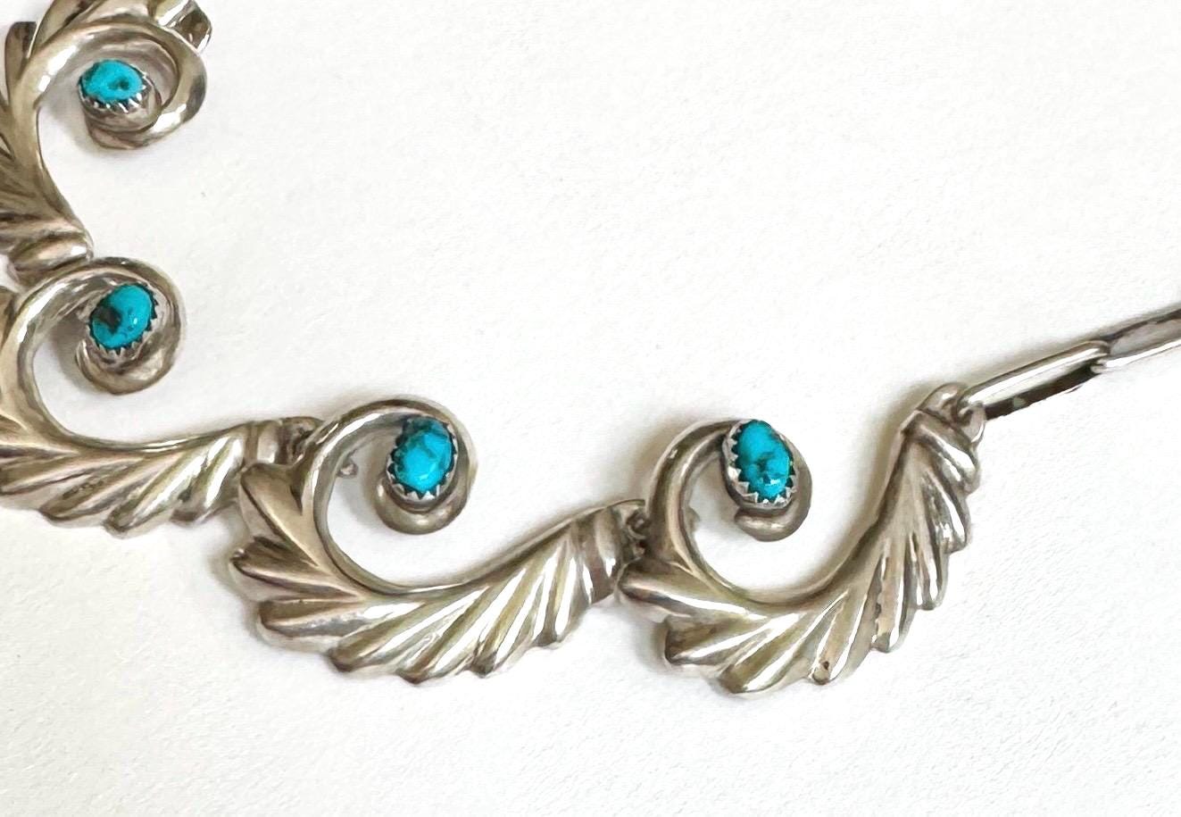 Early mid century vintage Native American Navajo handcrafted cast sterling silver and turquoise jewelry set