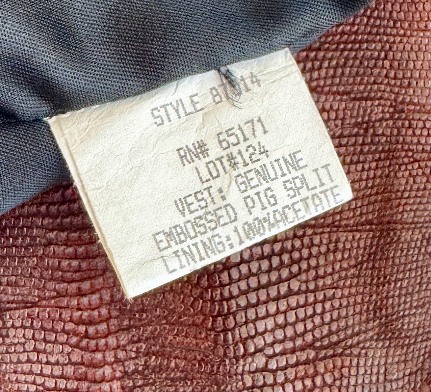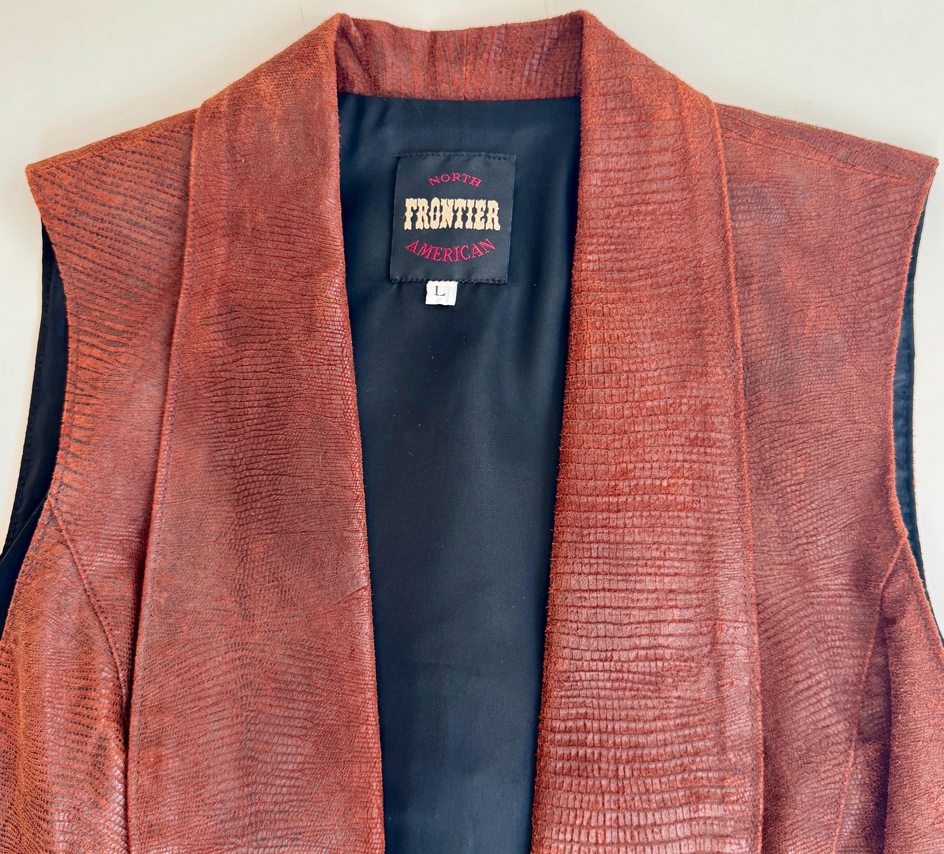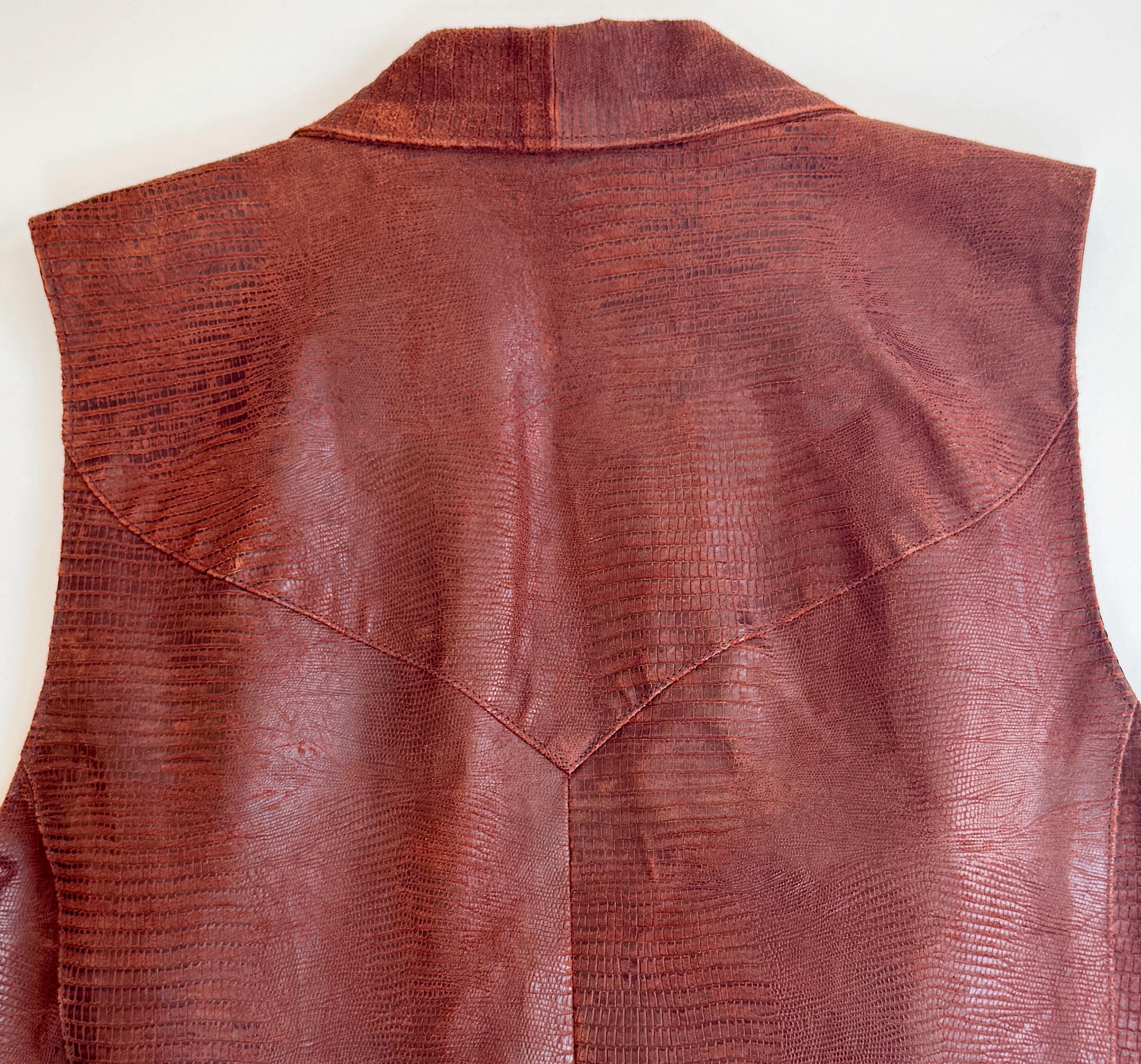 Vintage Western reptile embossed pig leather vest with fringe trim and concho details