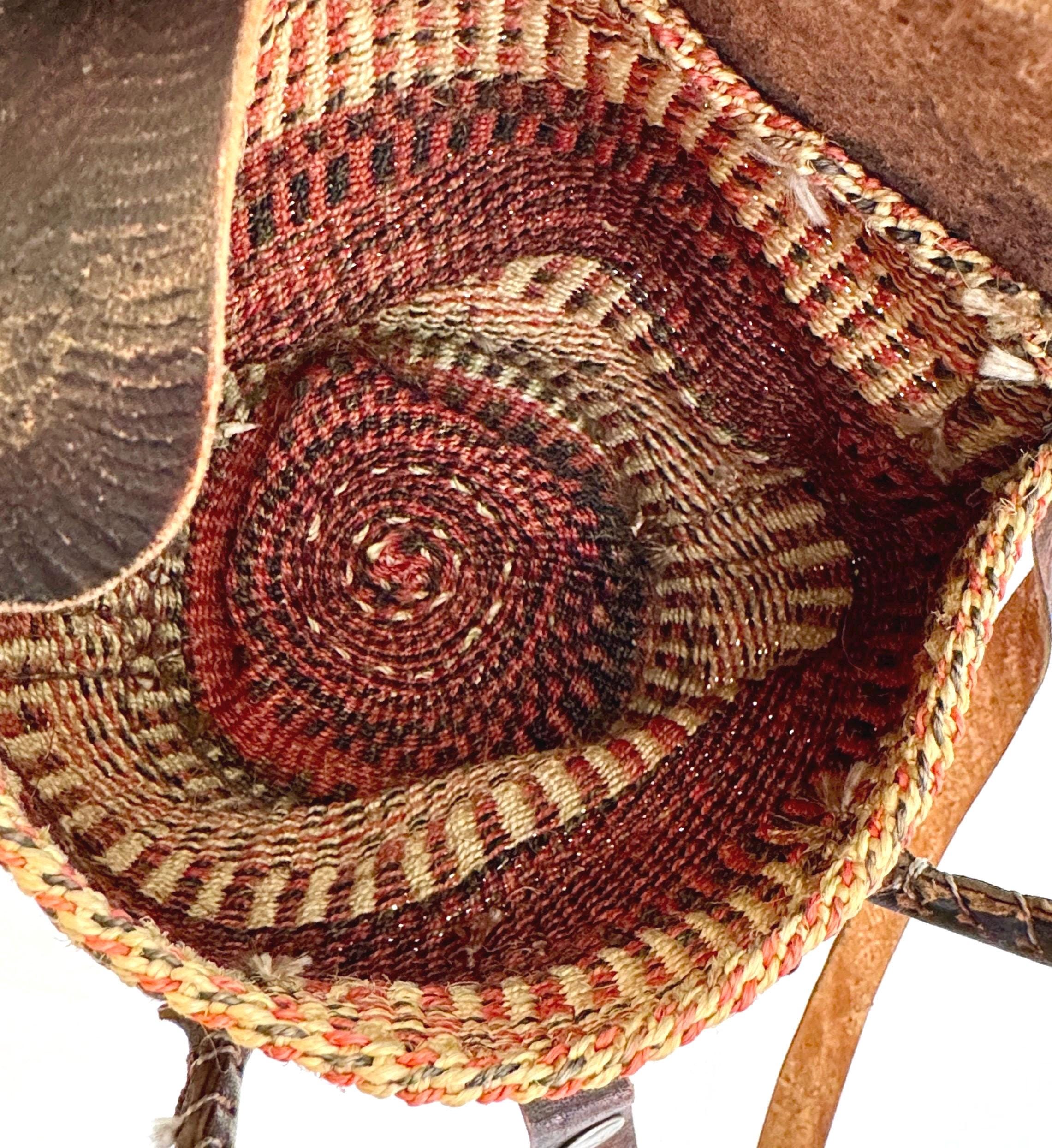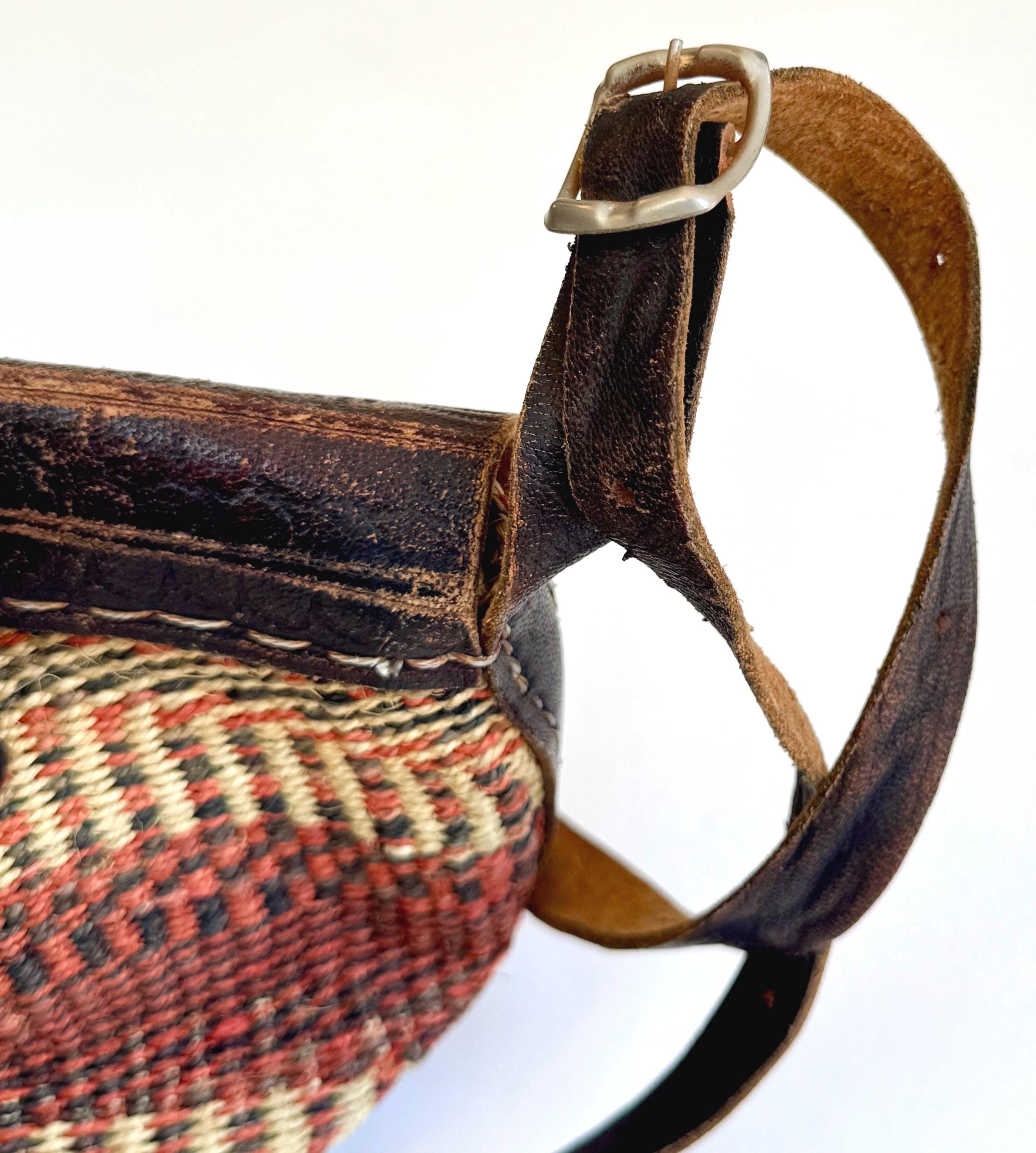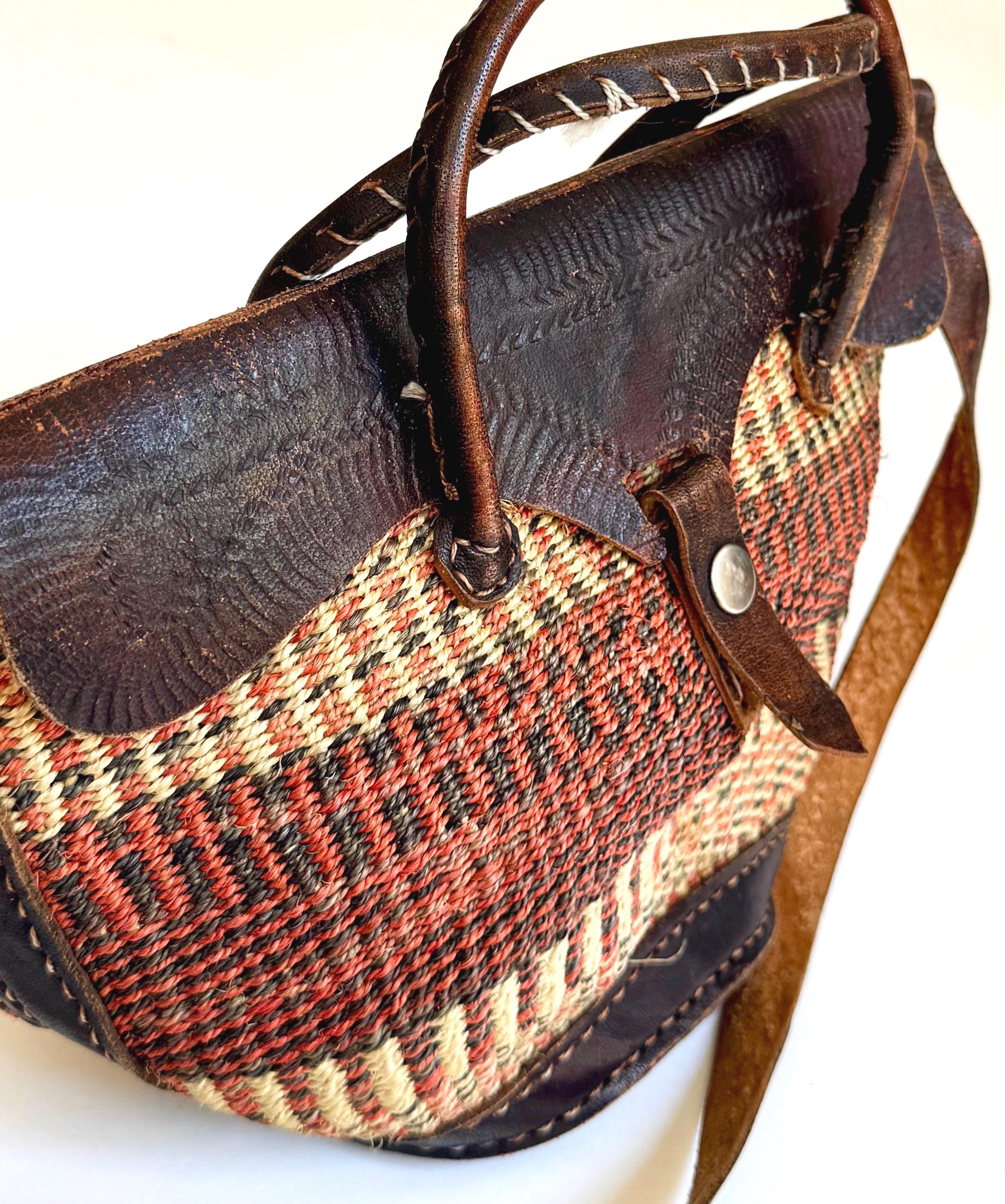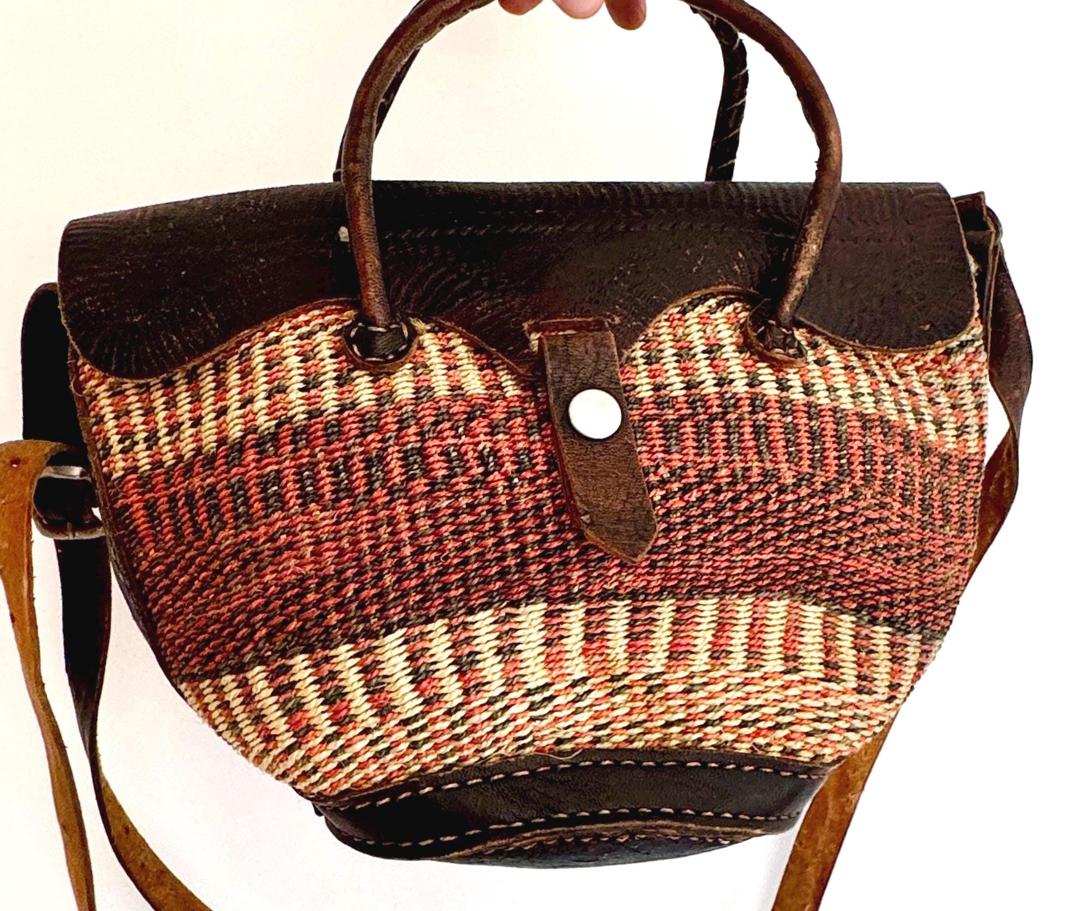 Vintage 80's/90's desert tone woven sisal bag with leather trim and straps