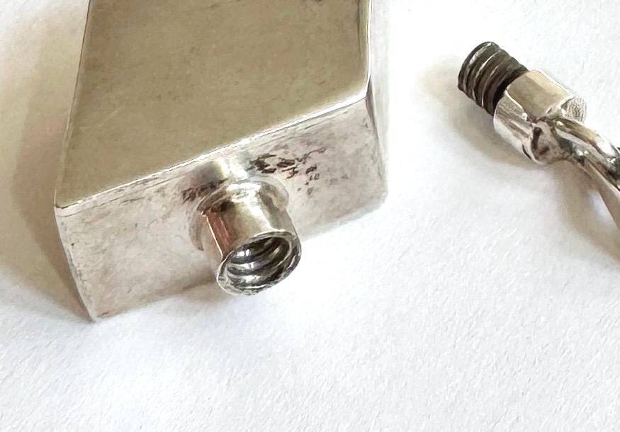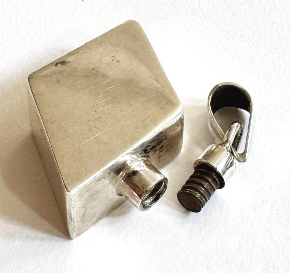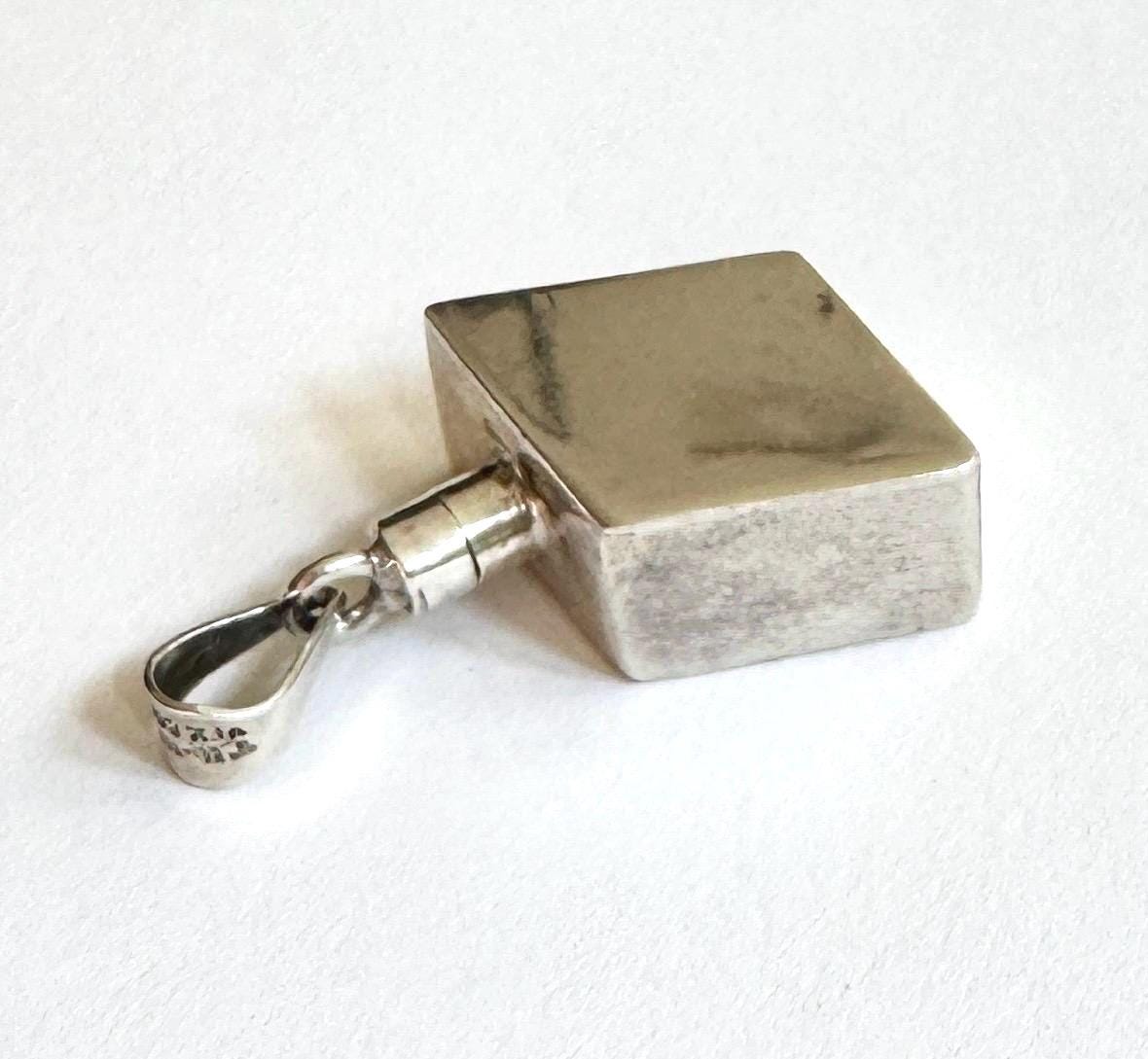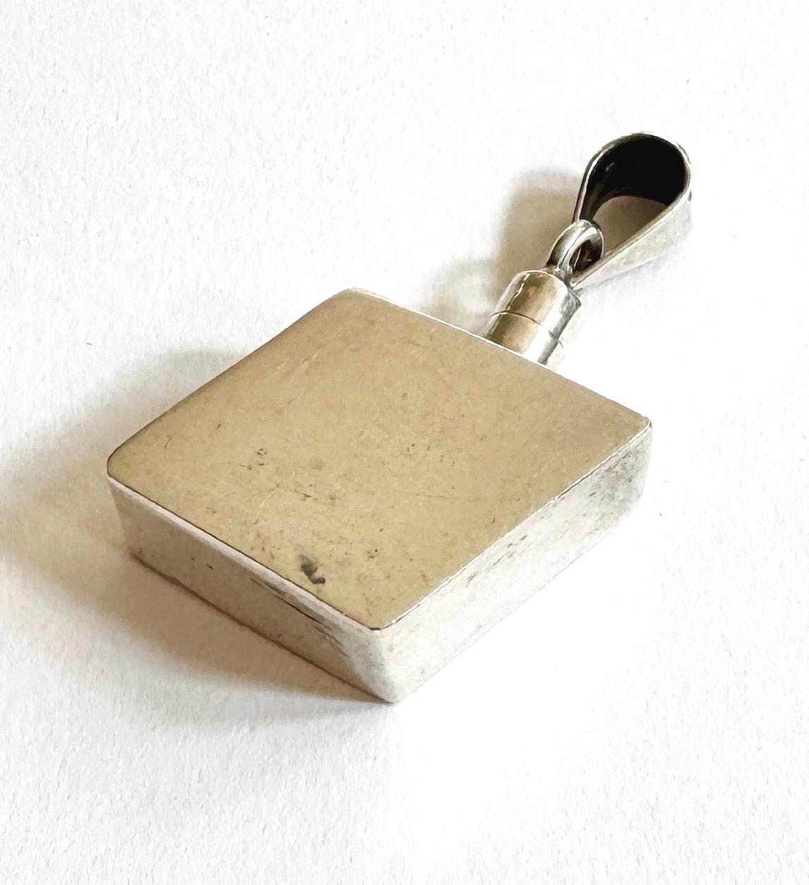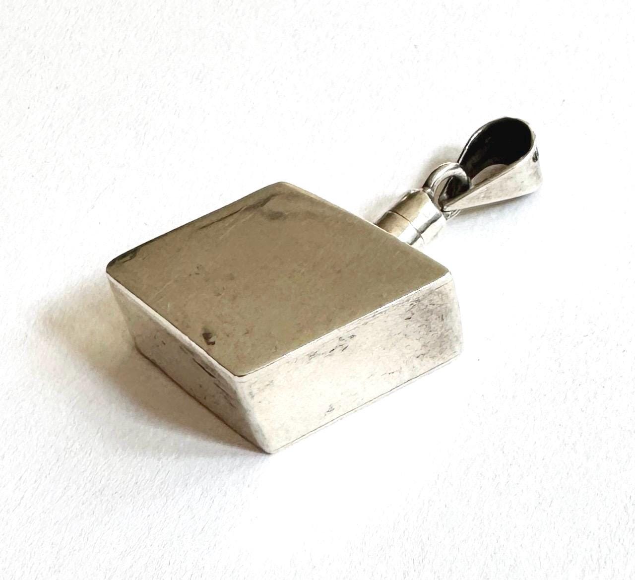 Modernist vintage sterling silver poison / perfume vial pendant with screw top lid