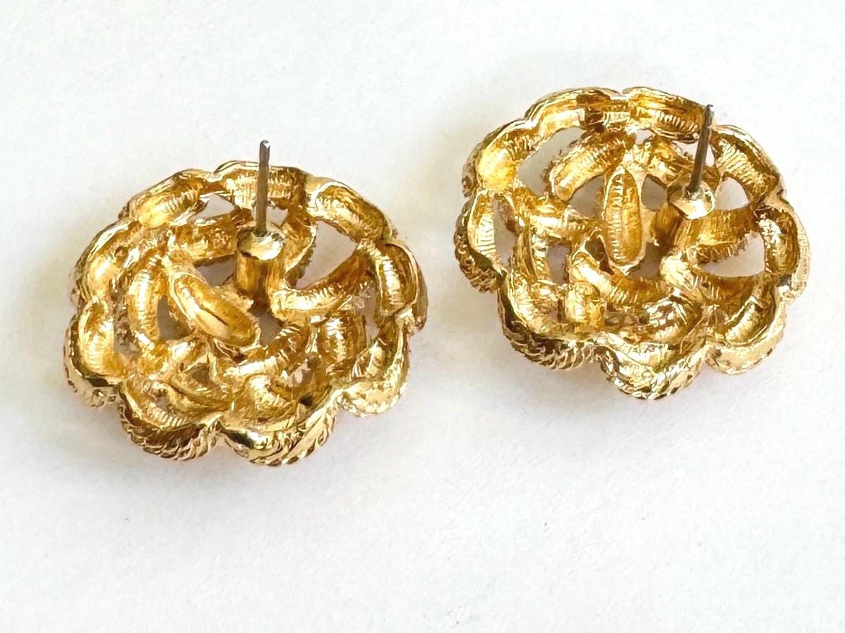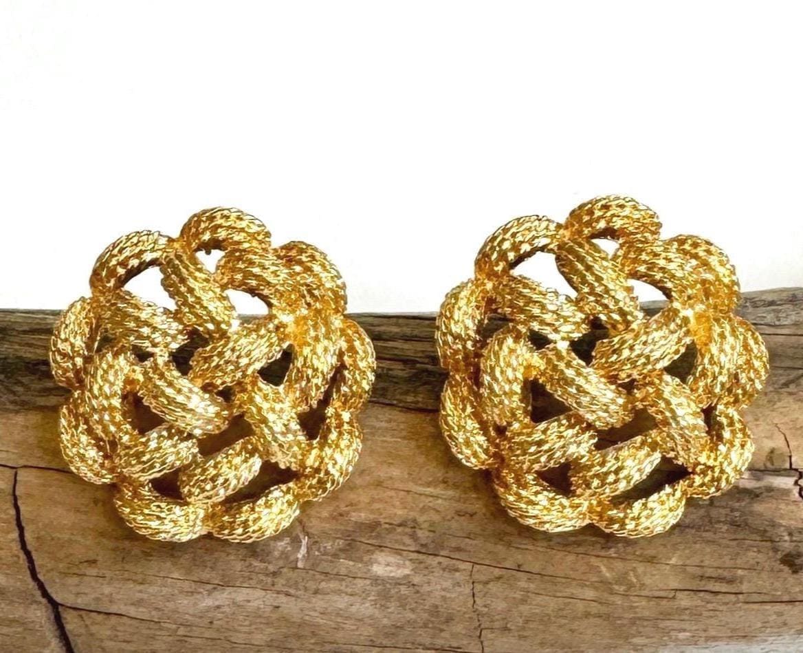 Vintage 80's gold tone basketweave earrings