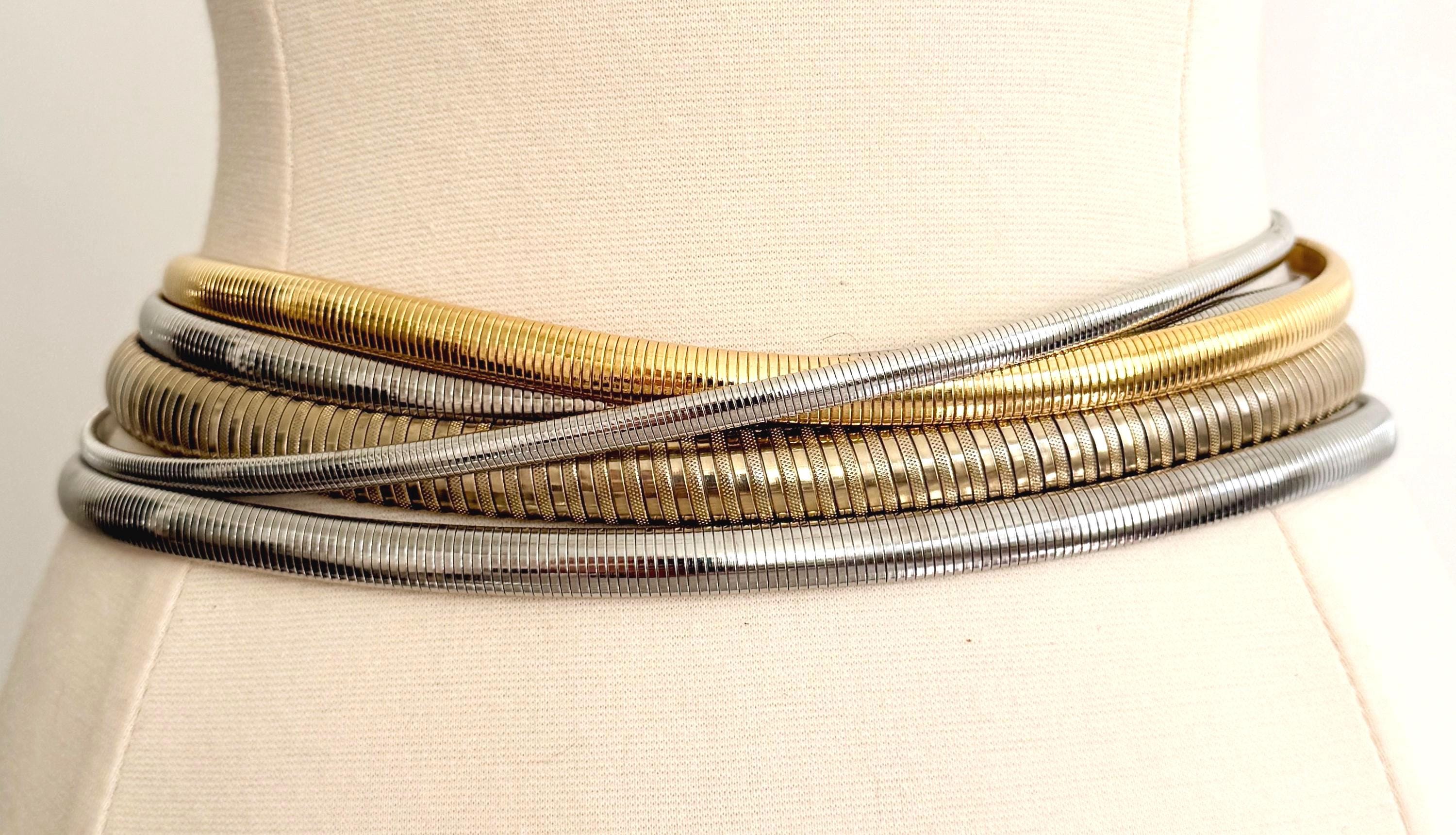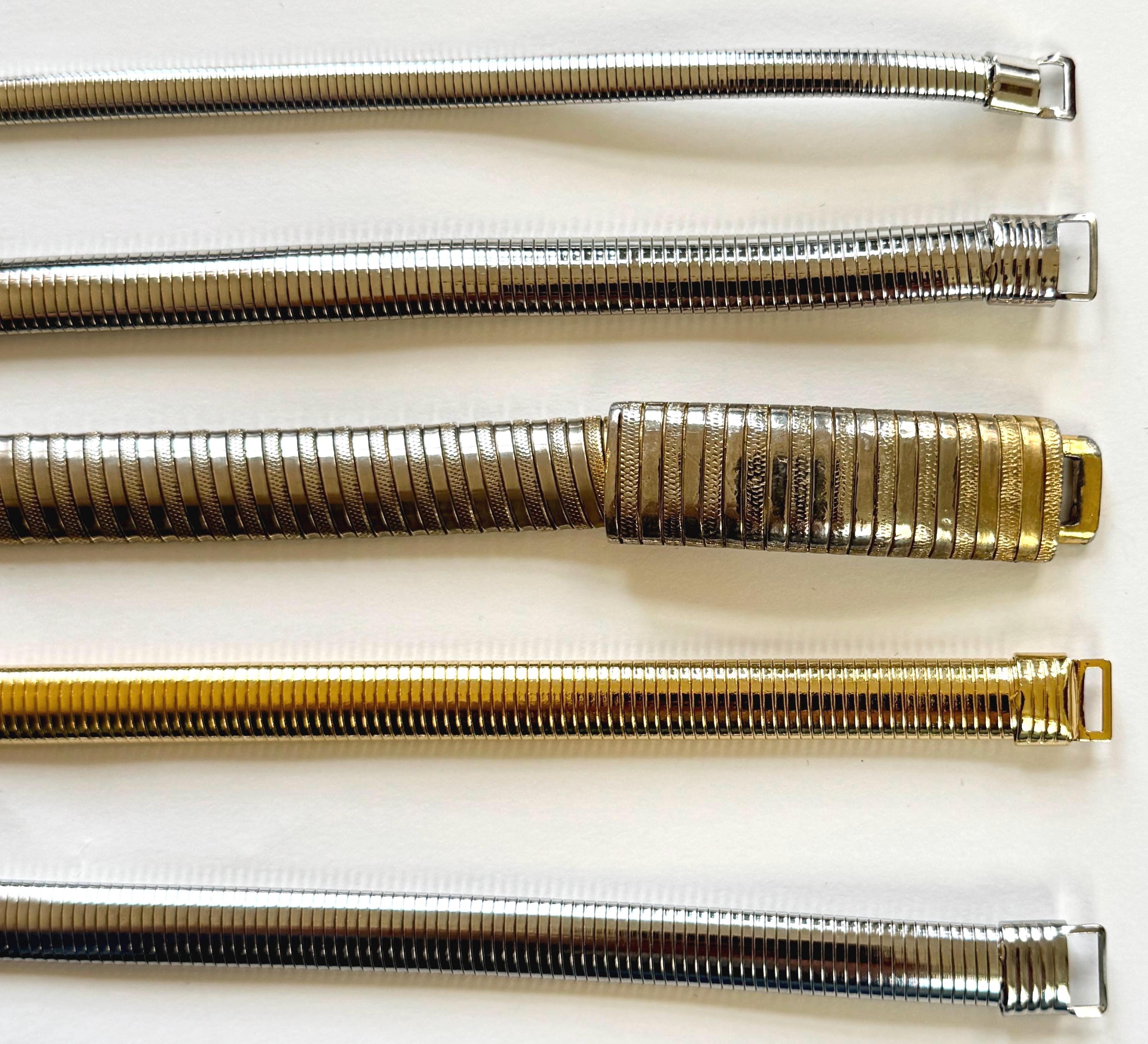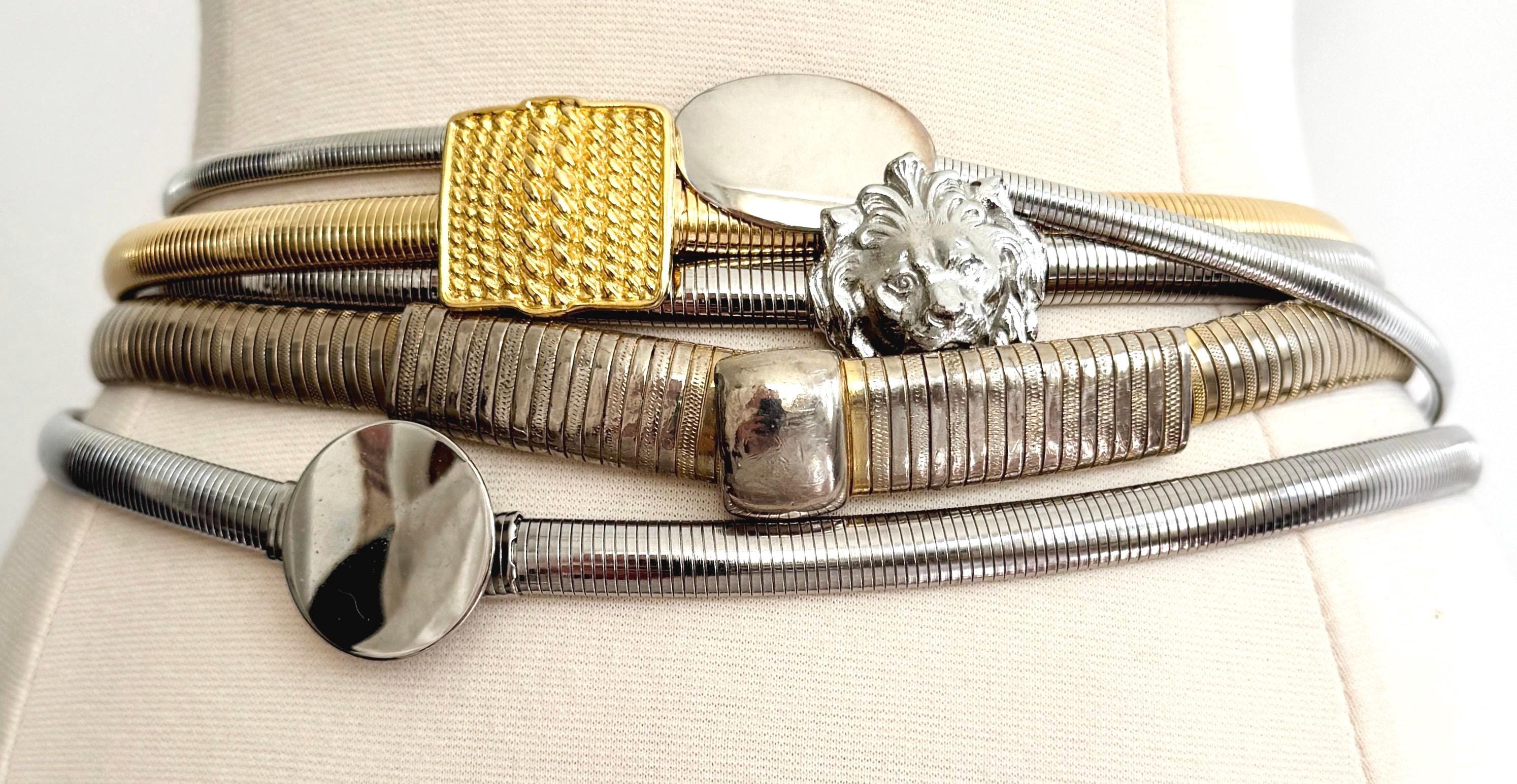 Slinky vintage 70's/80's gold & silver tone metal skinny belts available in five styles: