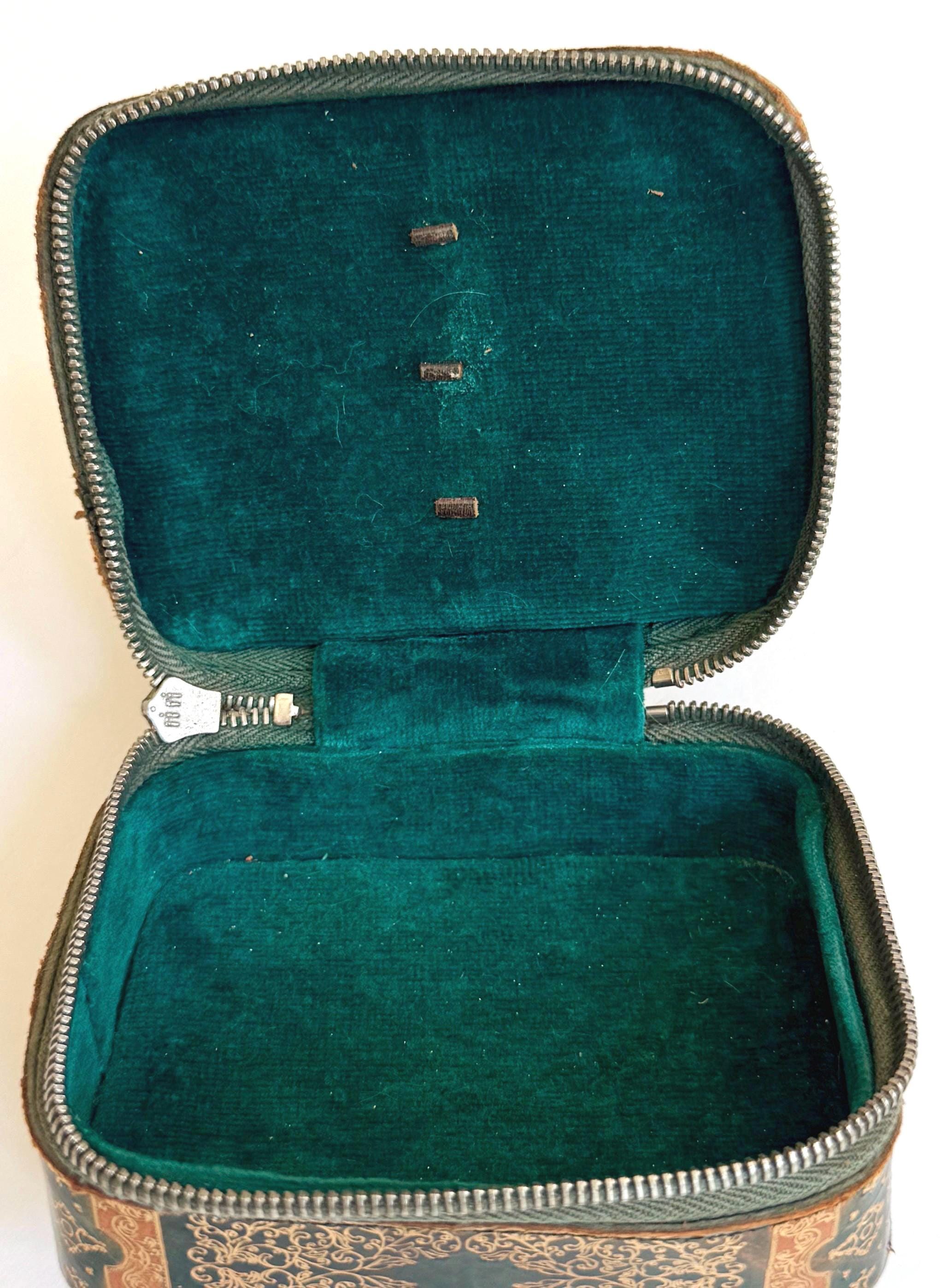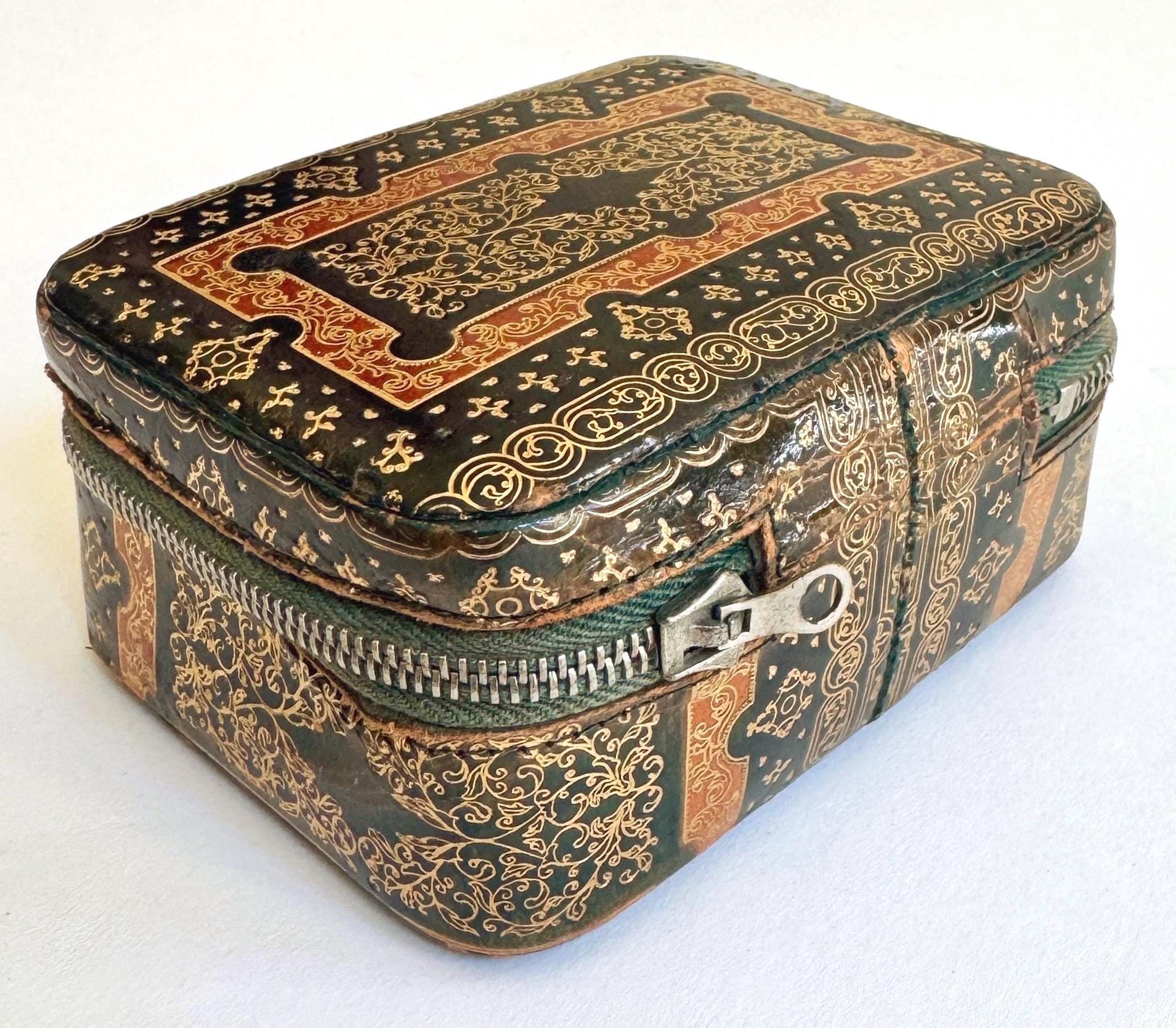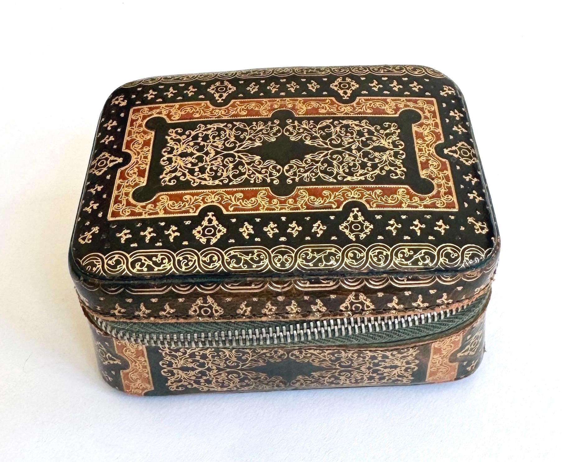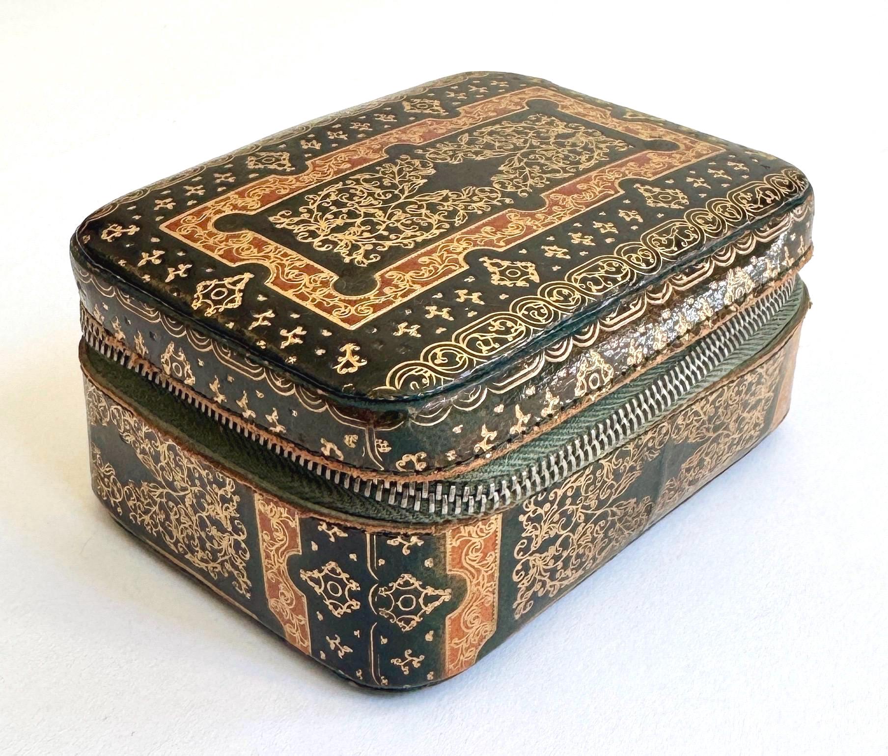 Small vintage gilt embossed leather box with soft velvet lining