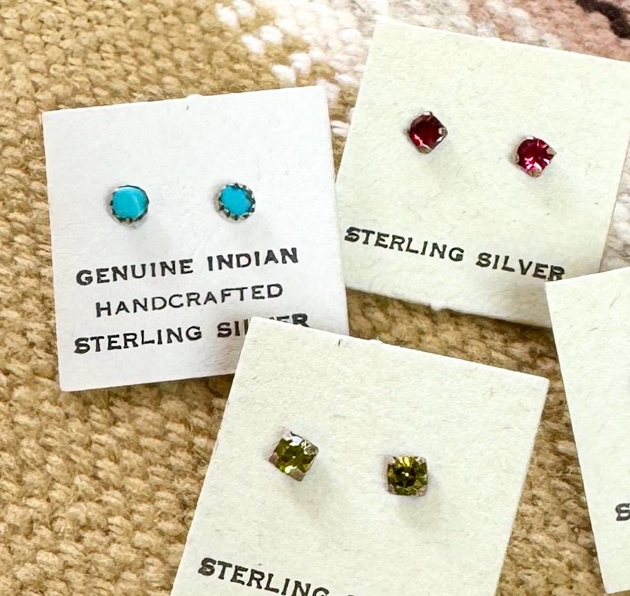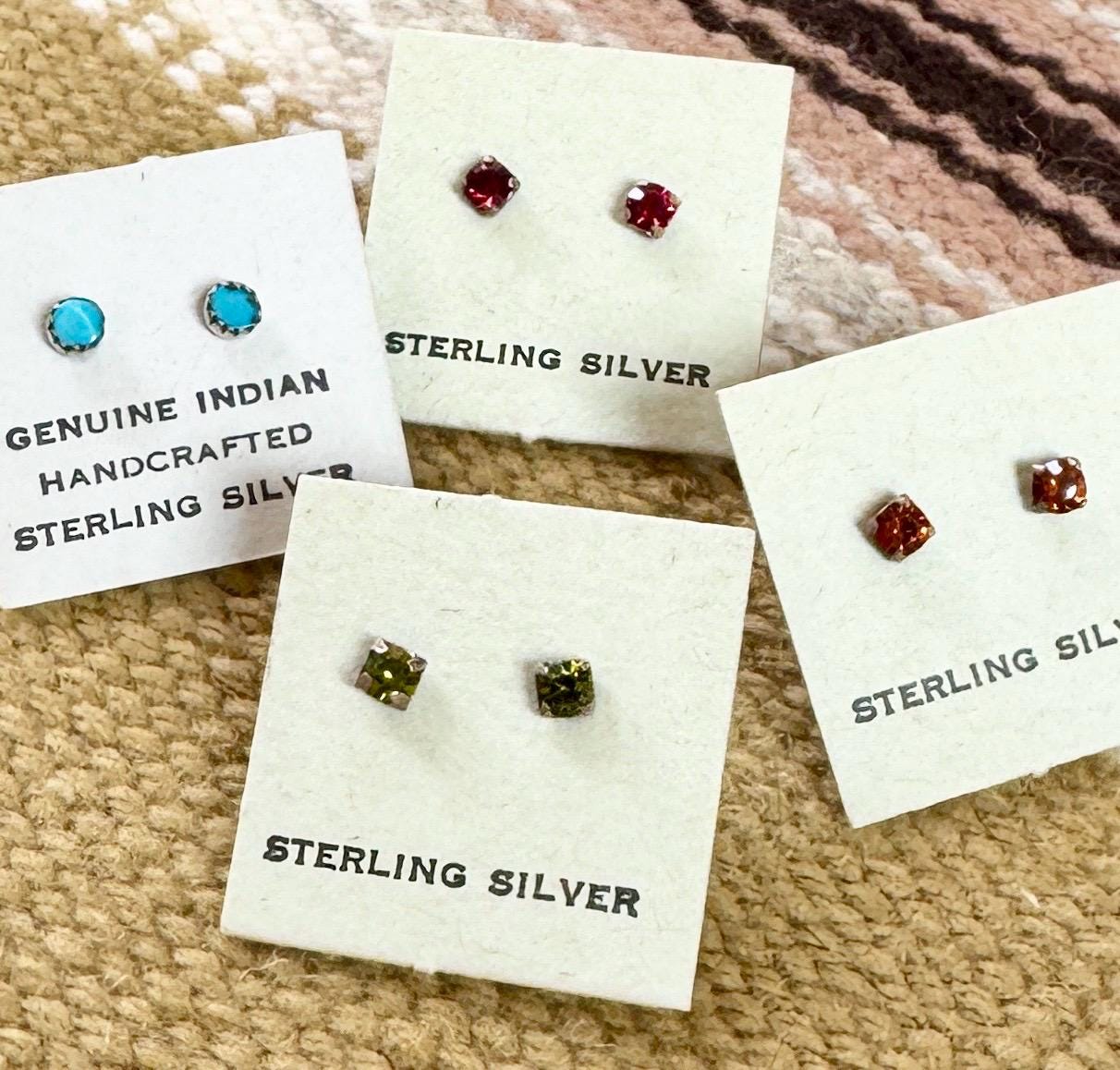 Vintage deadstock Western trading post tiny sterling silver stud earrings