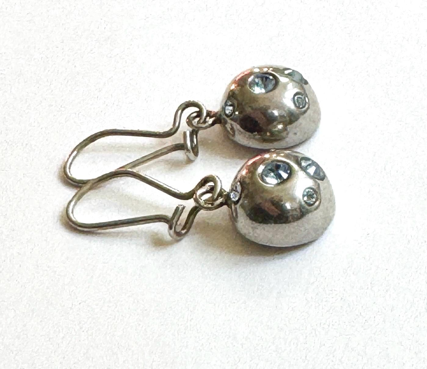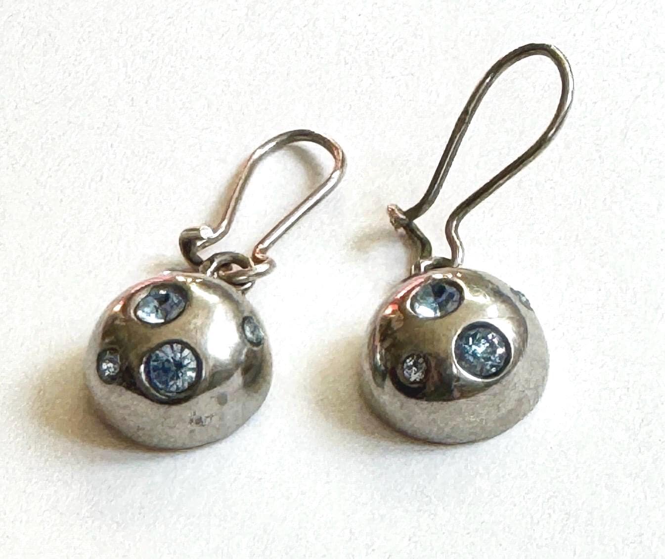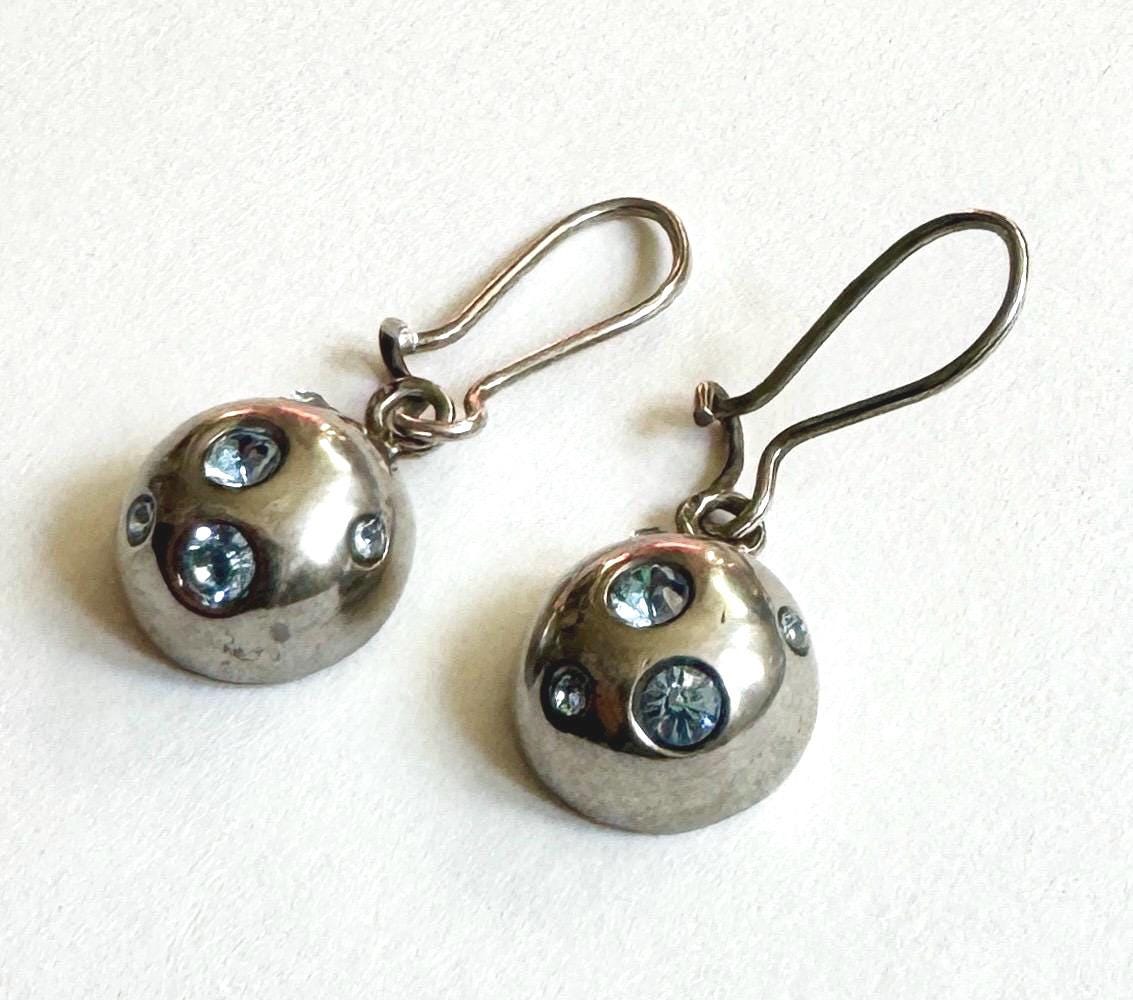 Vintage Yves Saint Laurent sterling silver dome earrings with light blue crystal accents