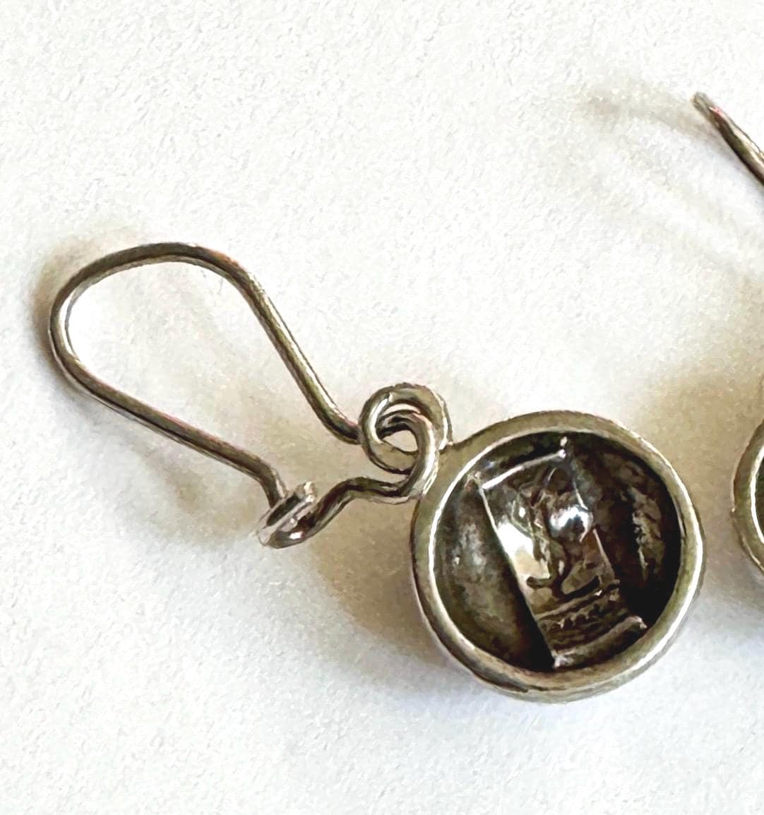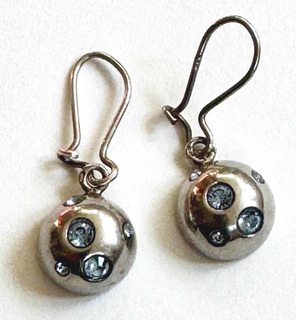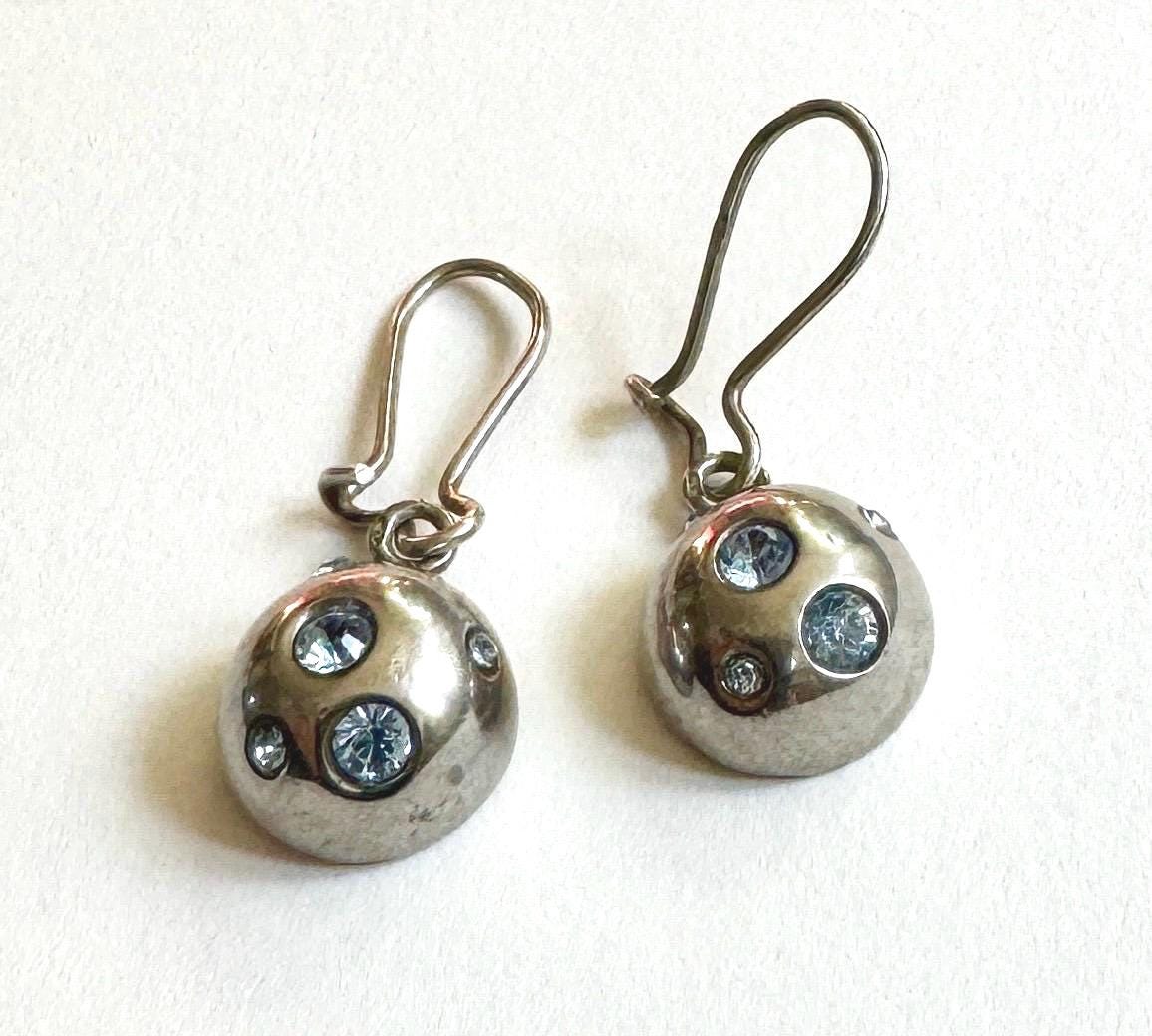 Vintage Yves Saint Laurent sterling silver dome earrings with light blue crystal accents