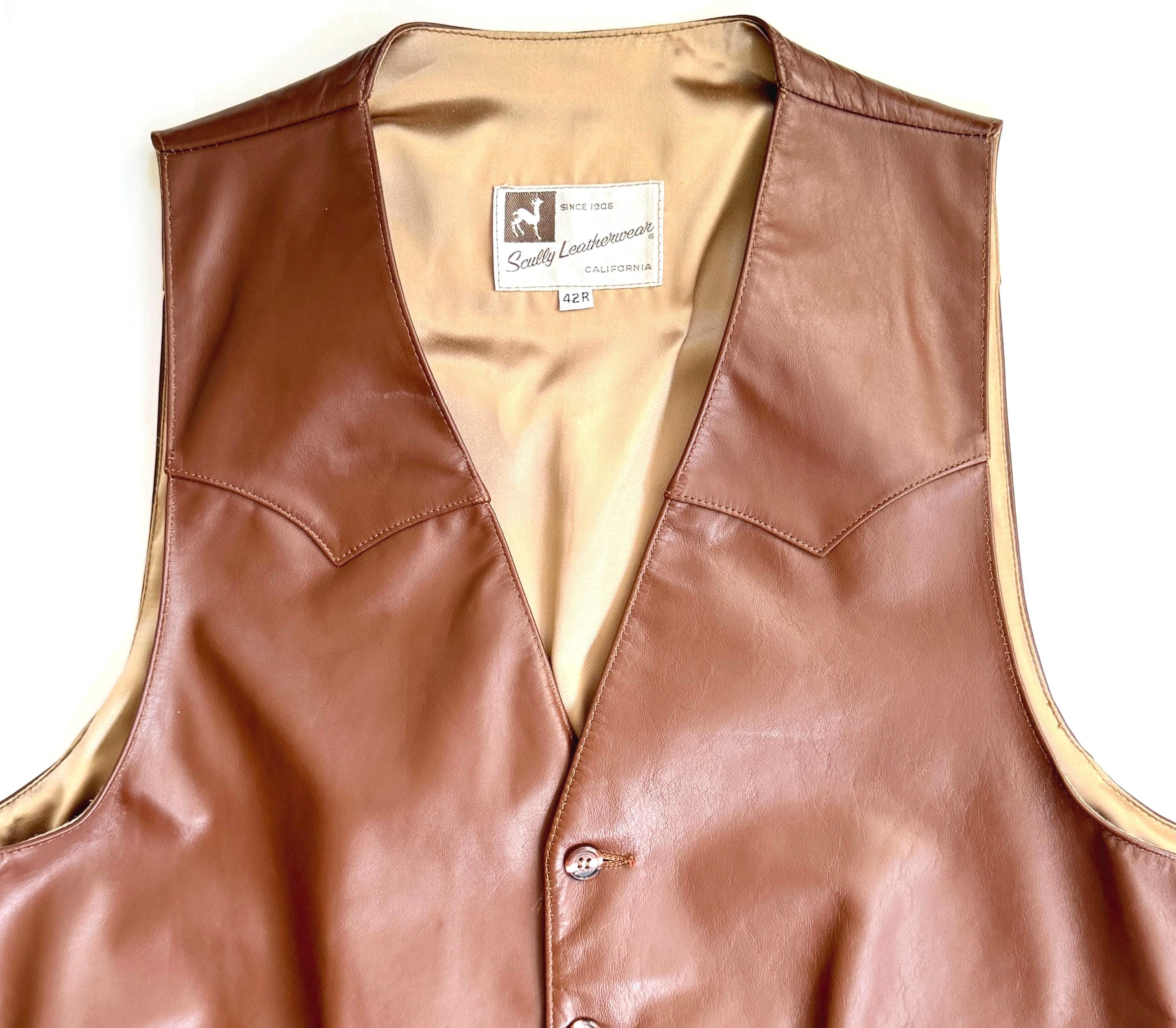 Vintage 60's/70's Scully Leatherwear, California brown leather Western vest