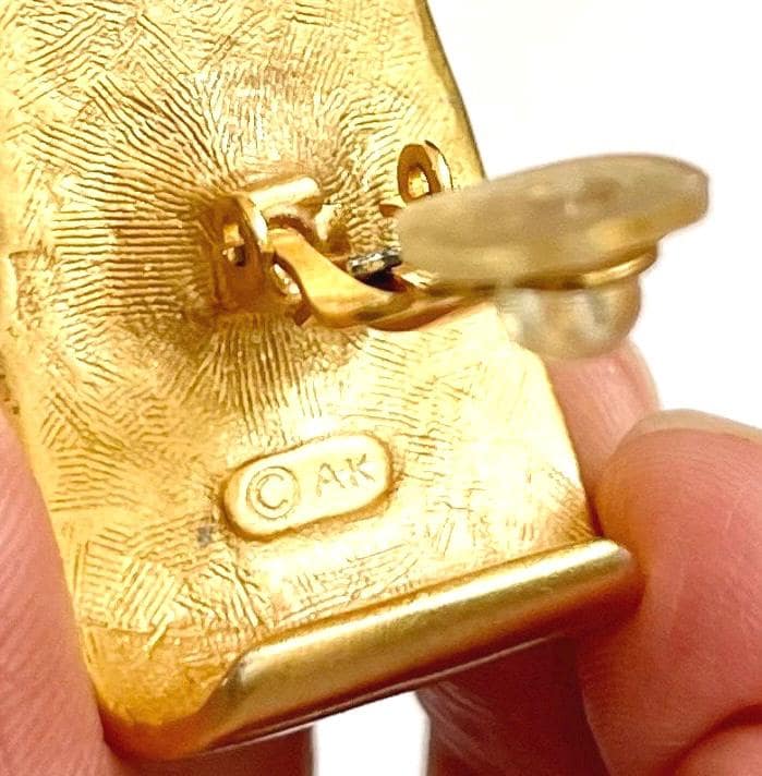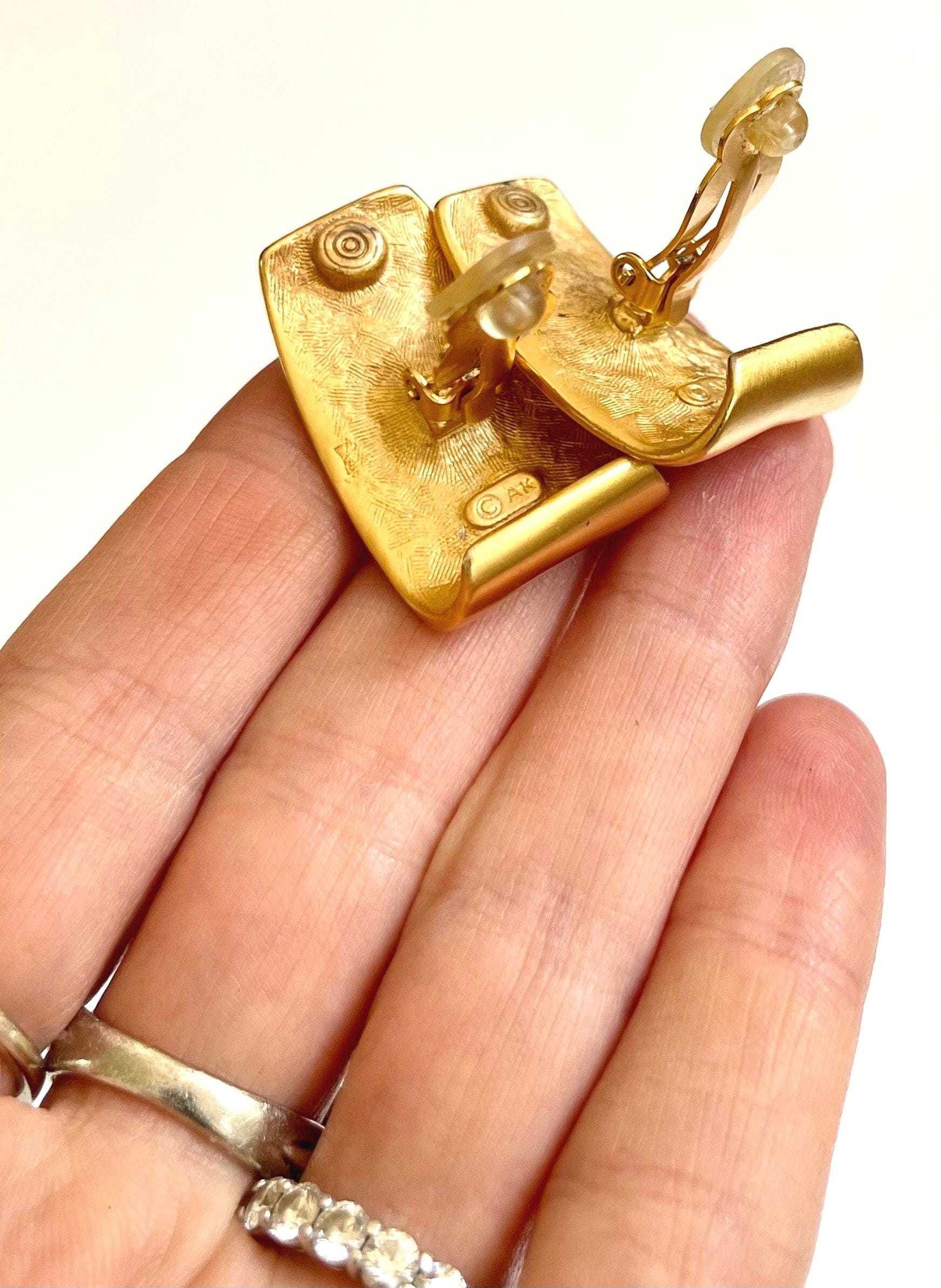 Sculptural vintage Anne Klein matte brushed gold clip on earrings
