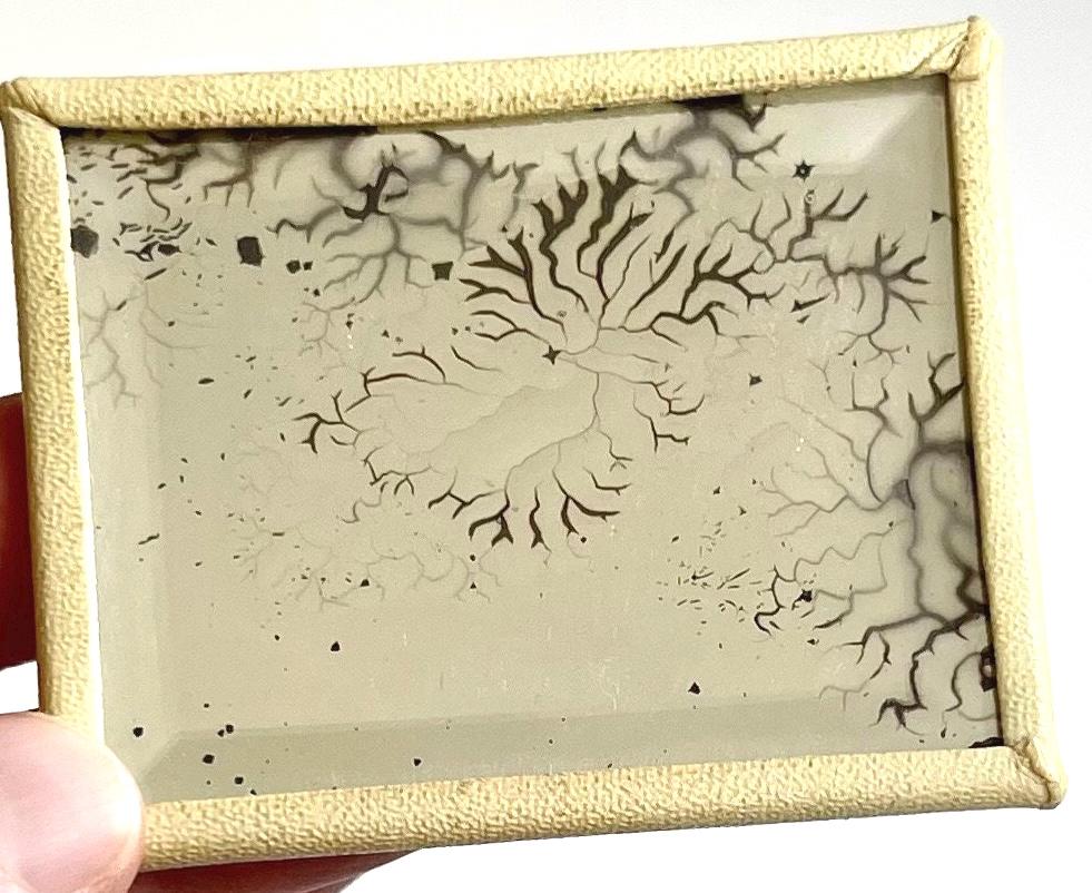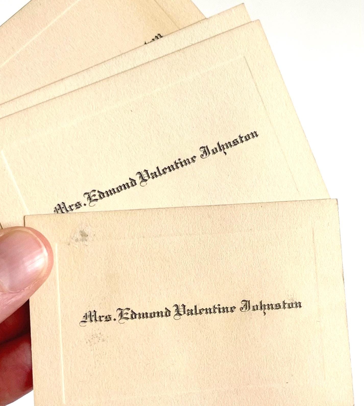 Includes pocket mirror and four "Mrs. Edmond Valentine Johnston" calling cards as foun