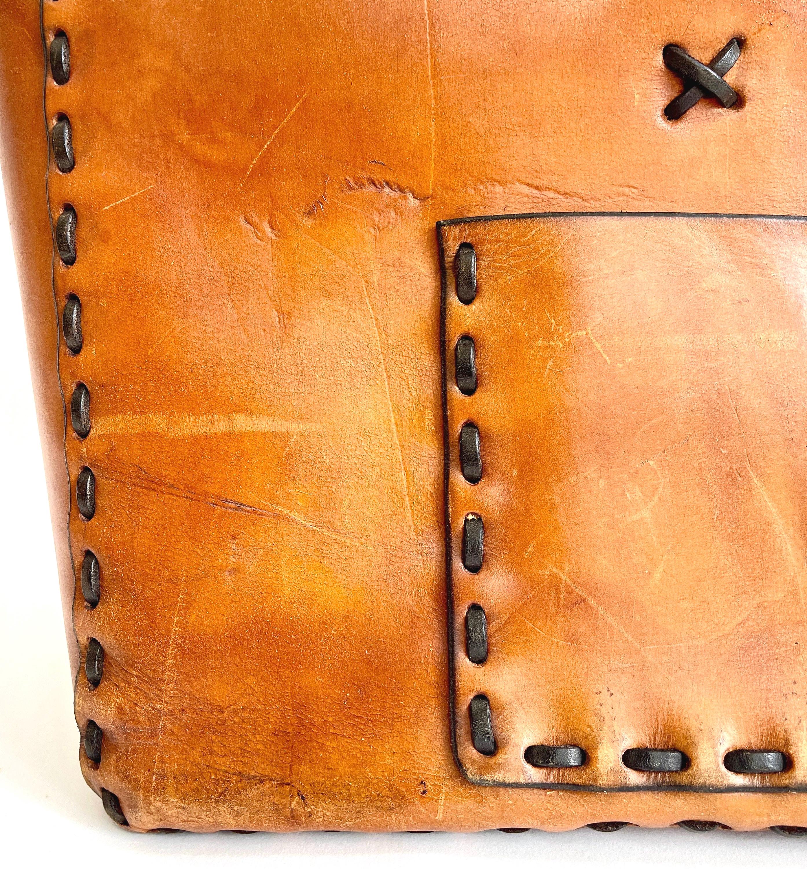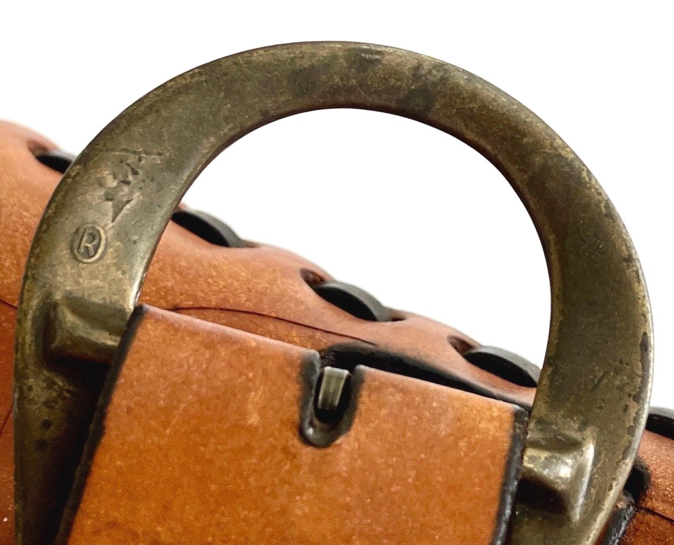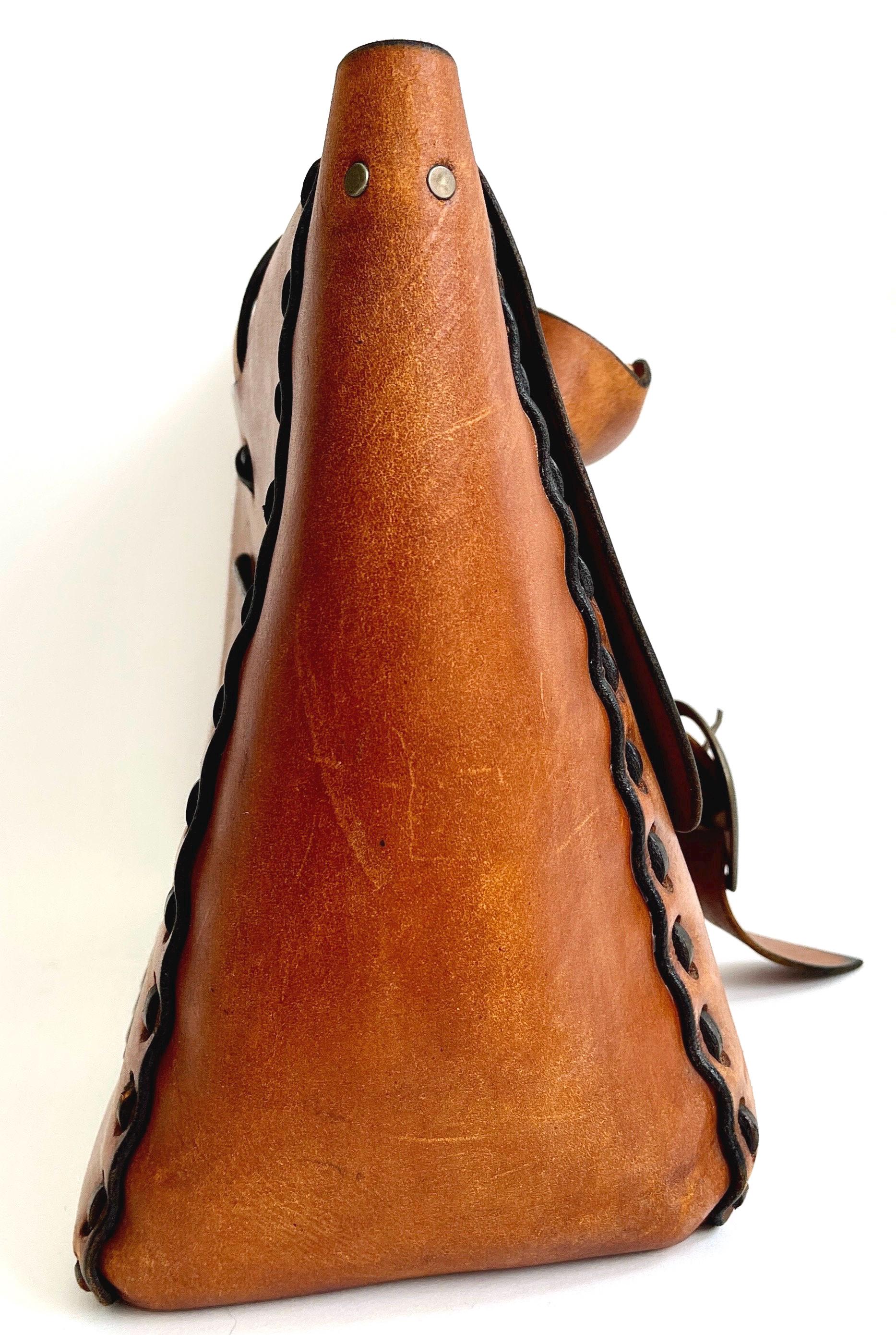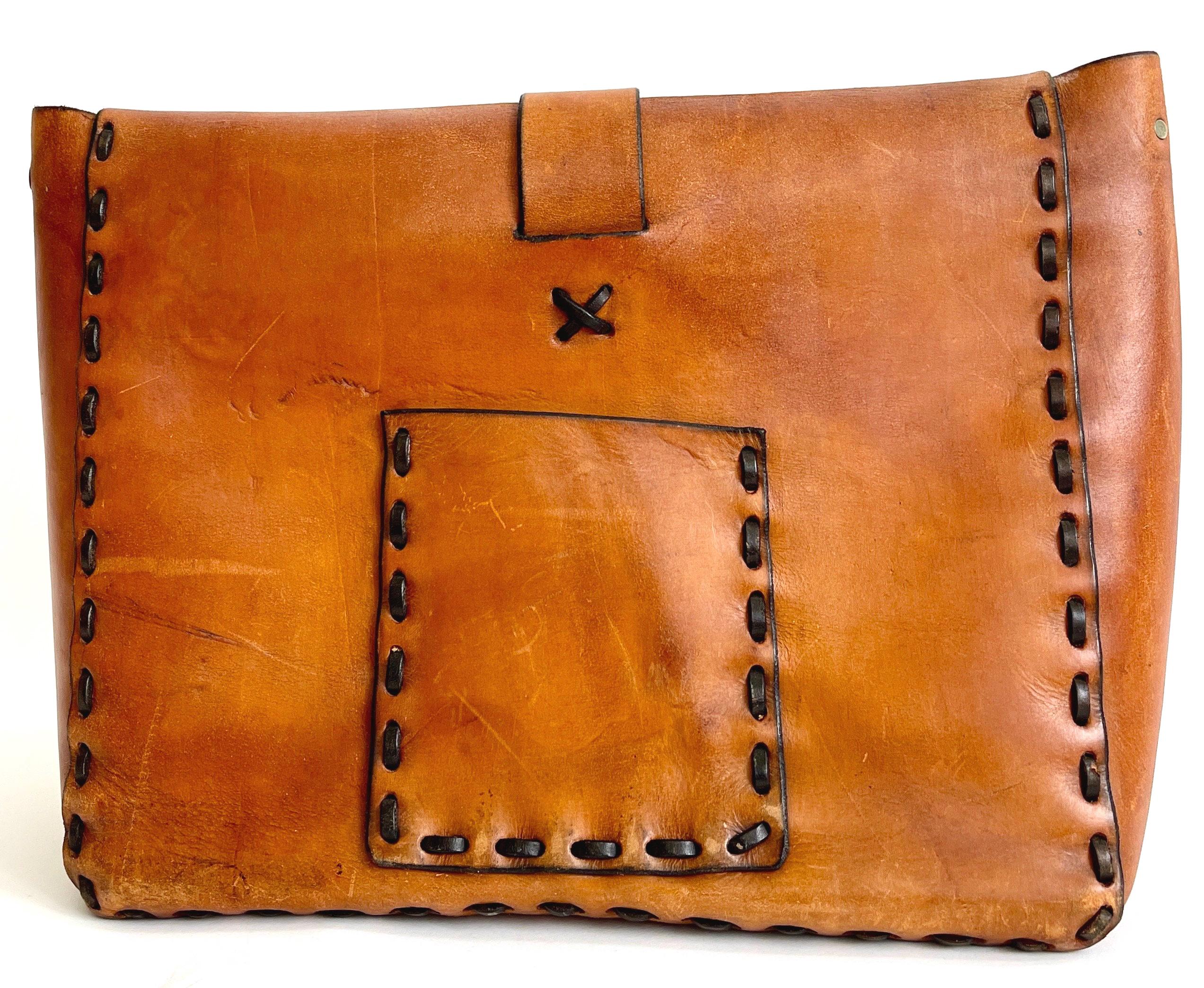 Handsome vintage 70's hand tooled leather top handle bag