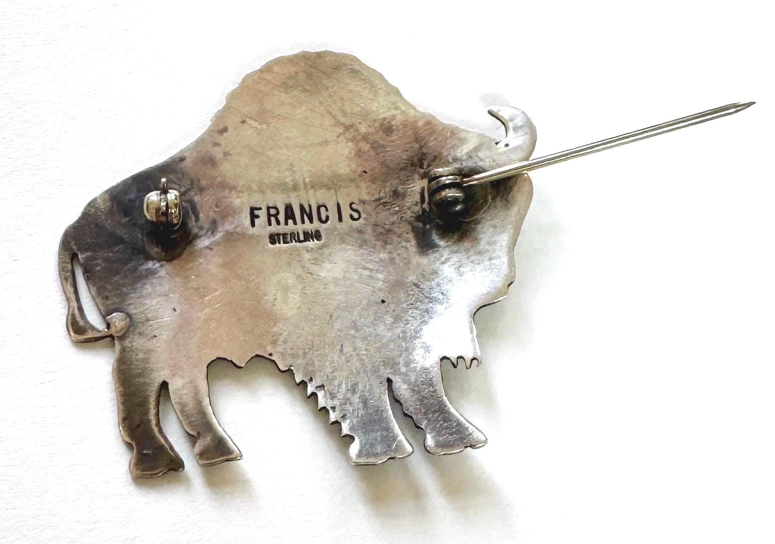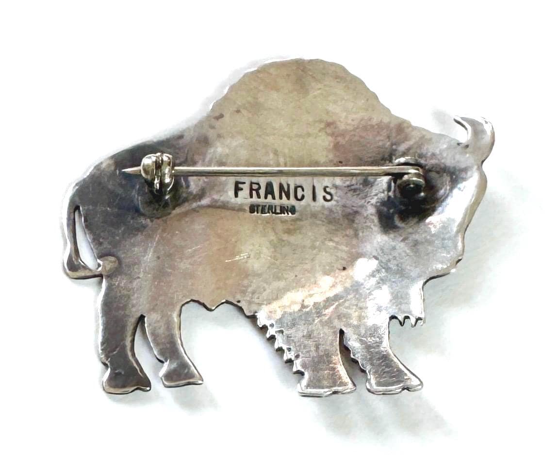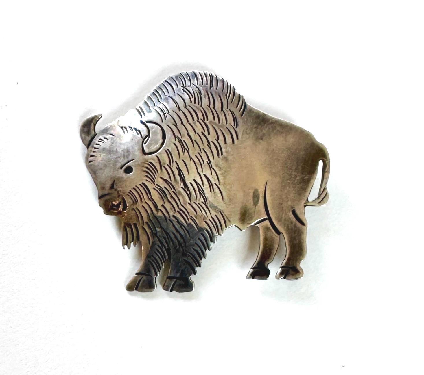Vintage Native American Navajo handcrafter sterling silver buffalo pin