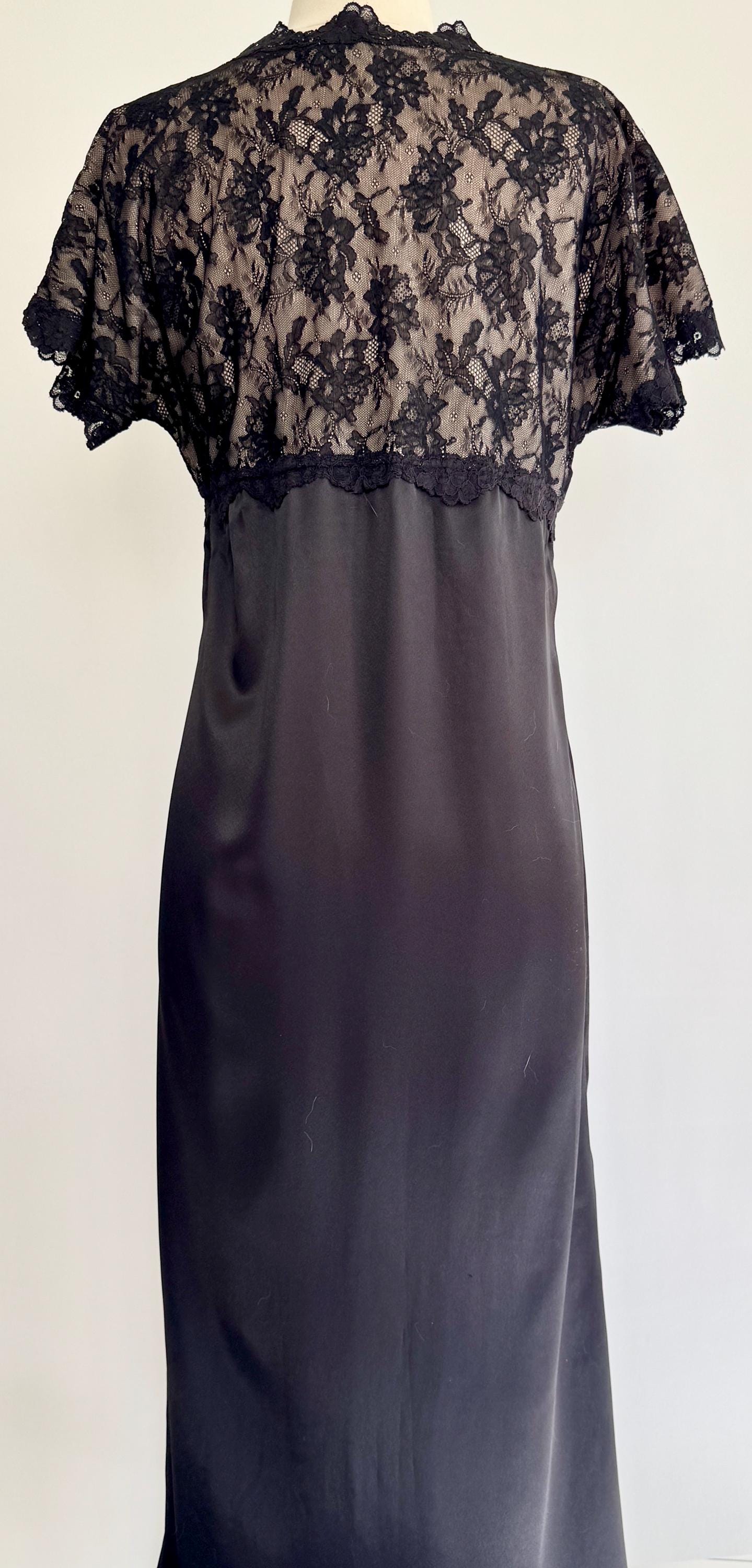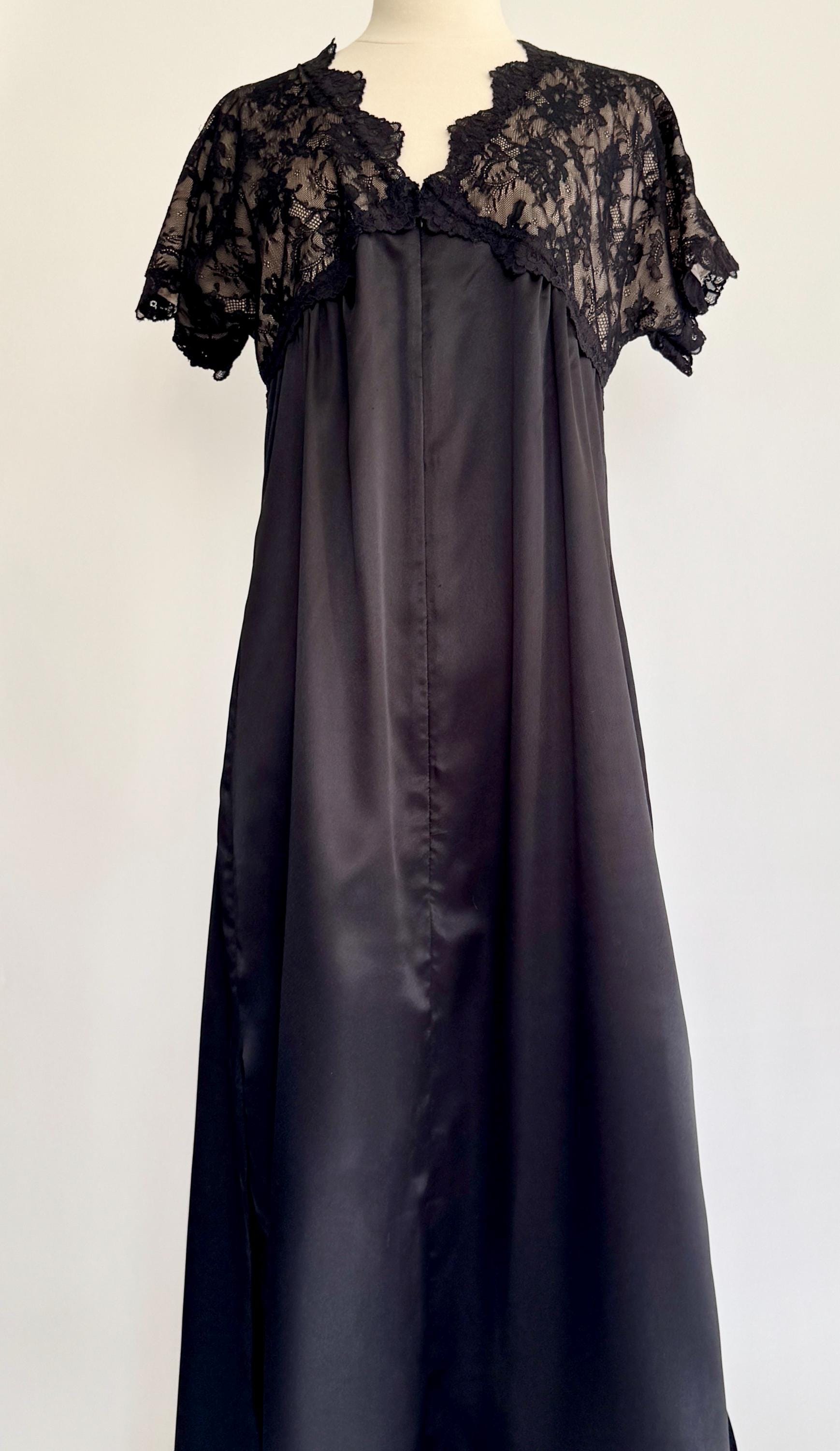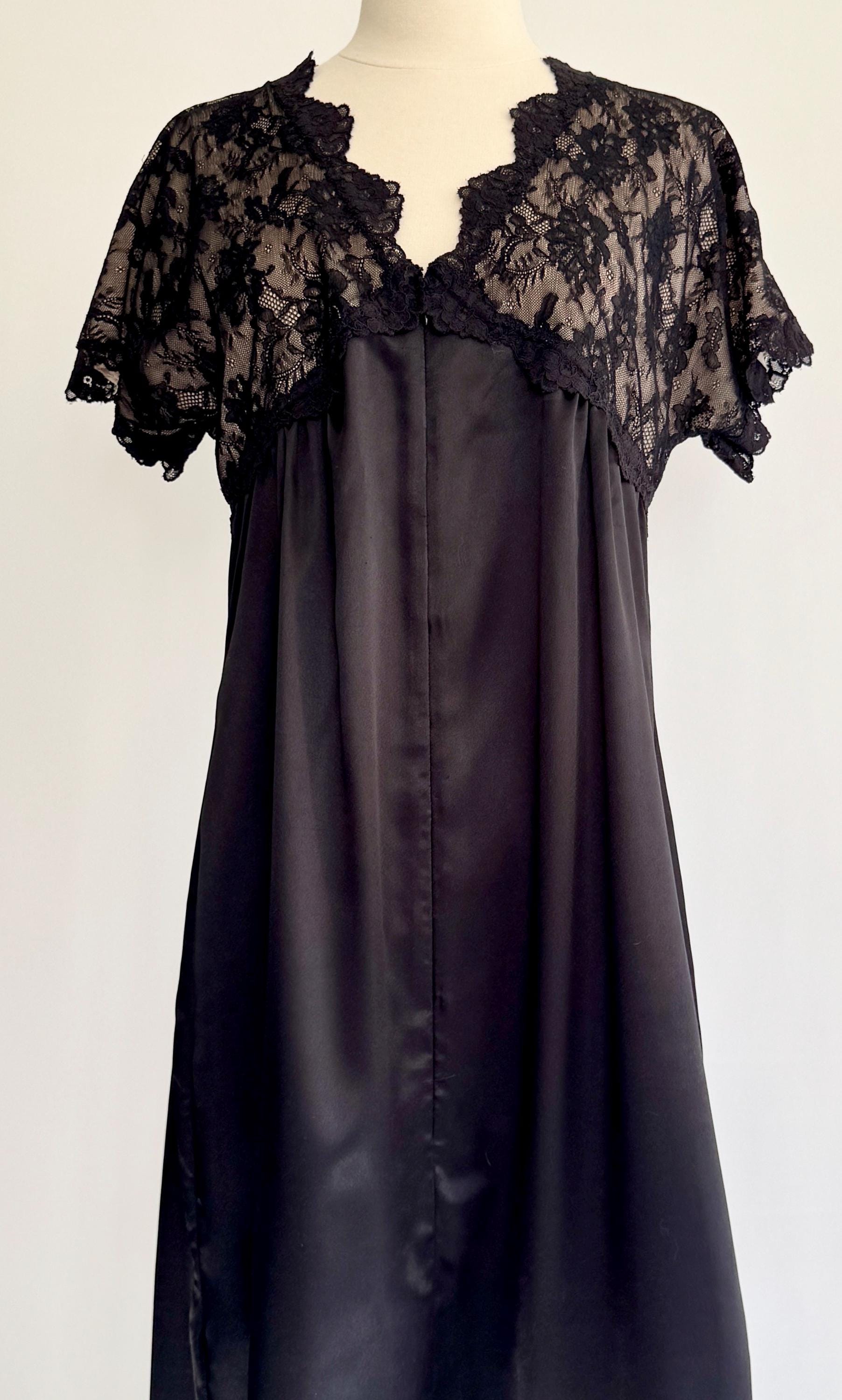 Vintage La Petite Coquette New York slinky black dressing gown with lined lace bodice