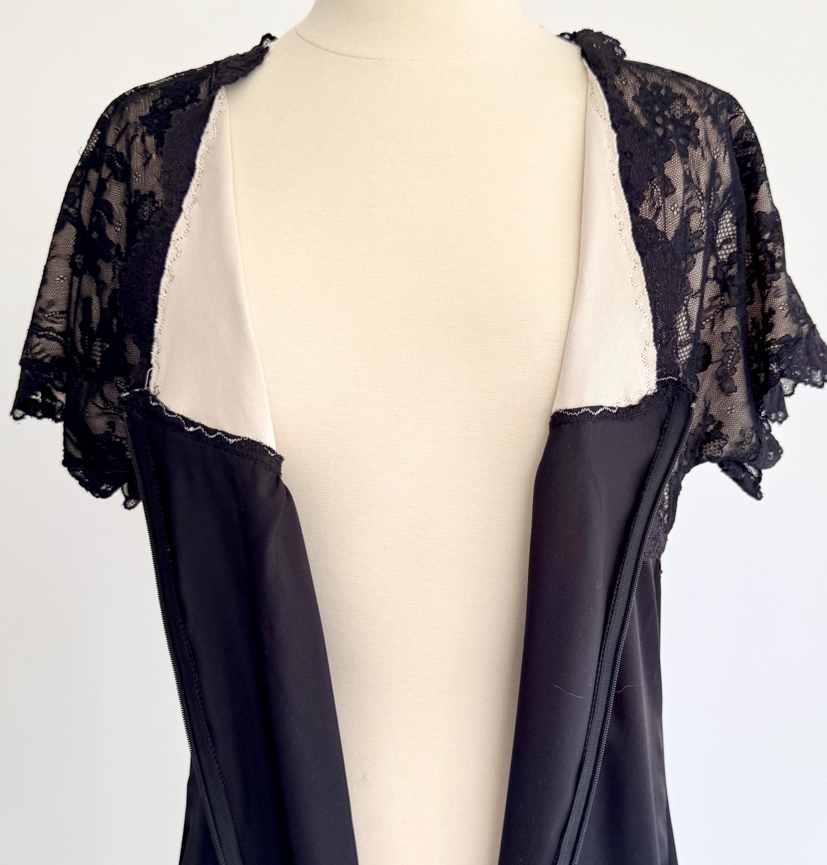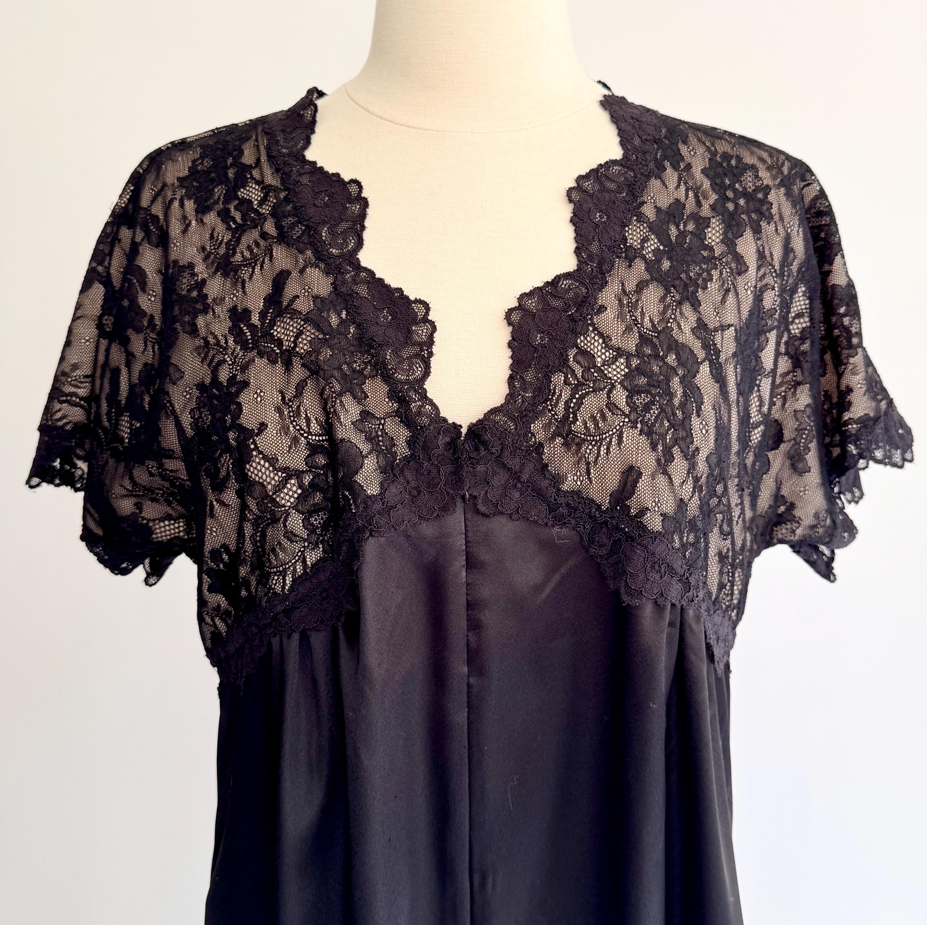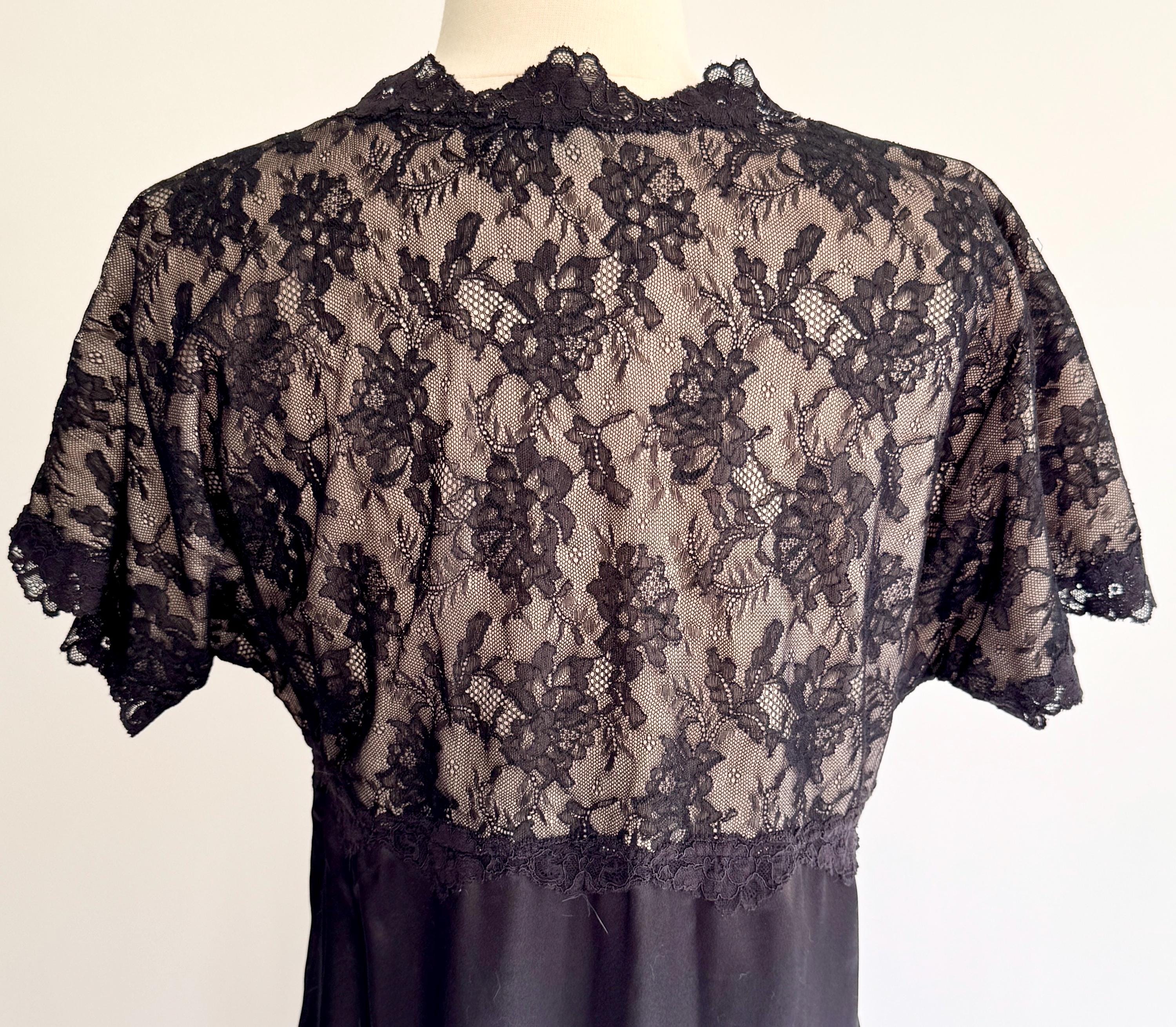 Vintage La Petite Coquette New York slinky black dressing gown with lined lace bodice
