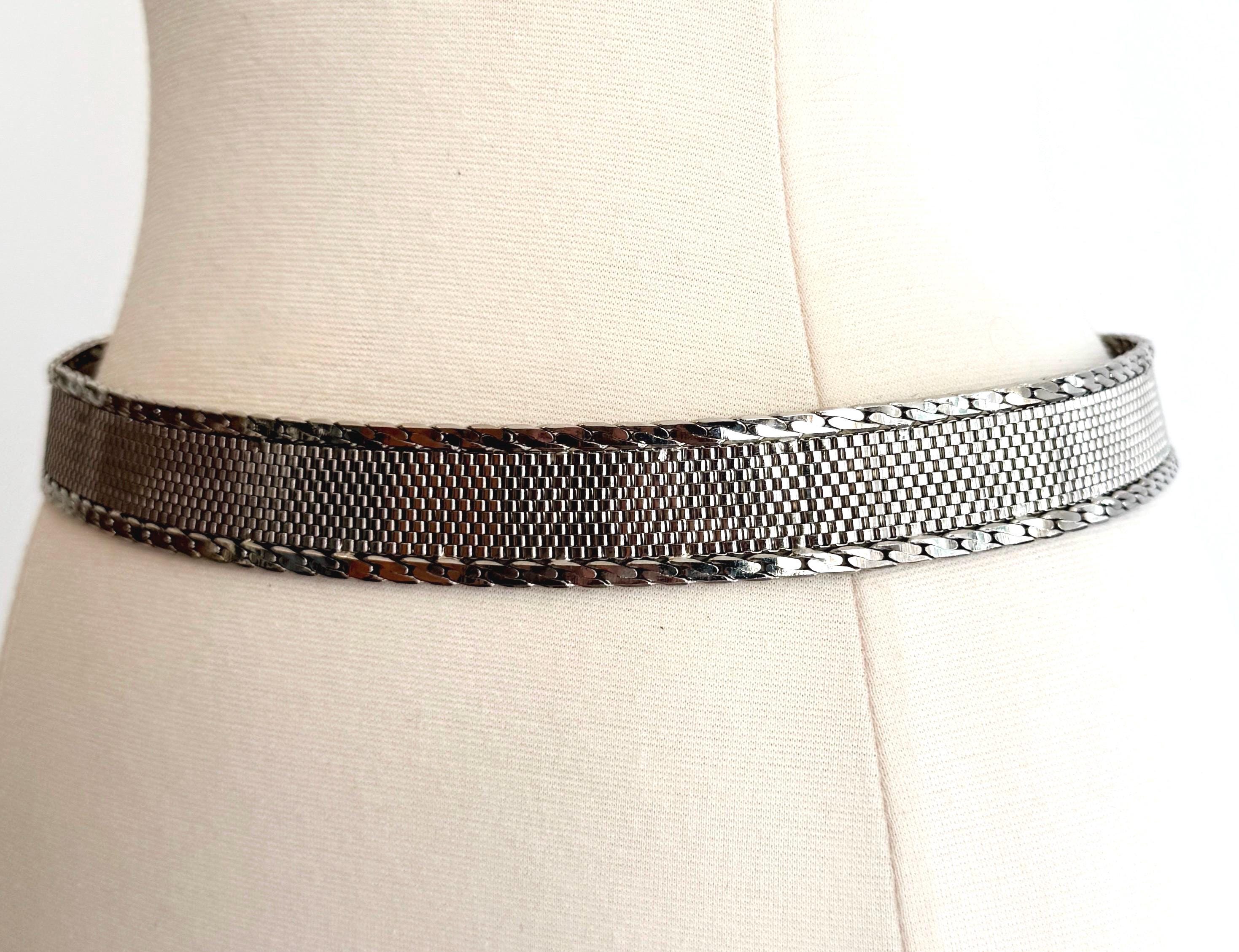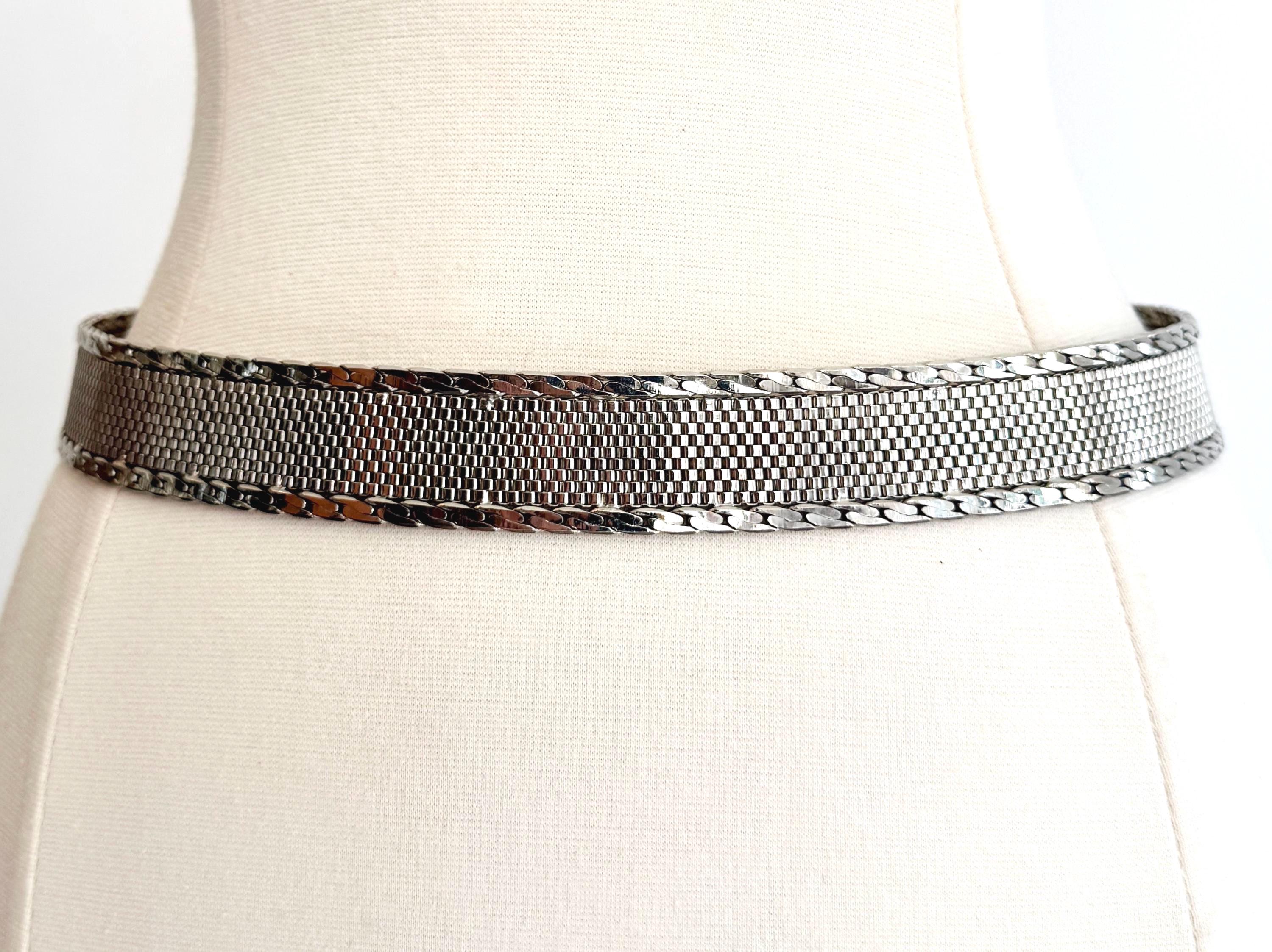 Vintage silver tone metal mesh belt