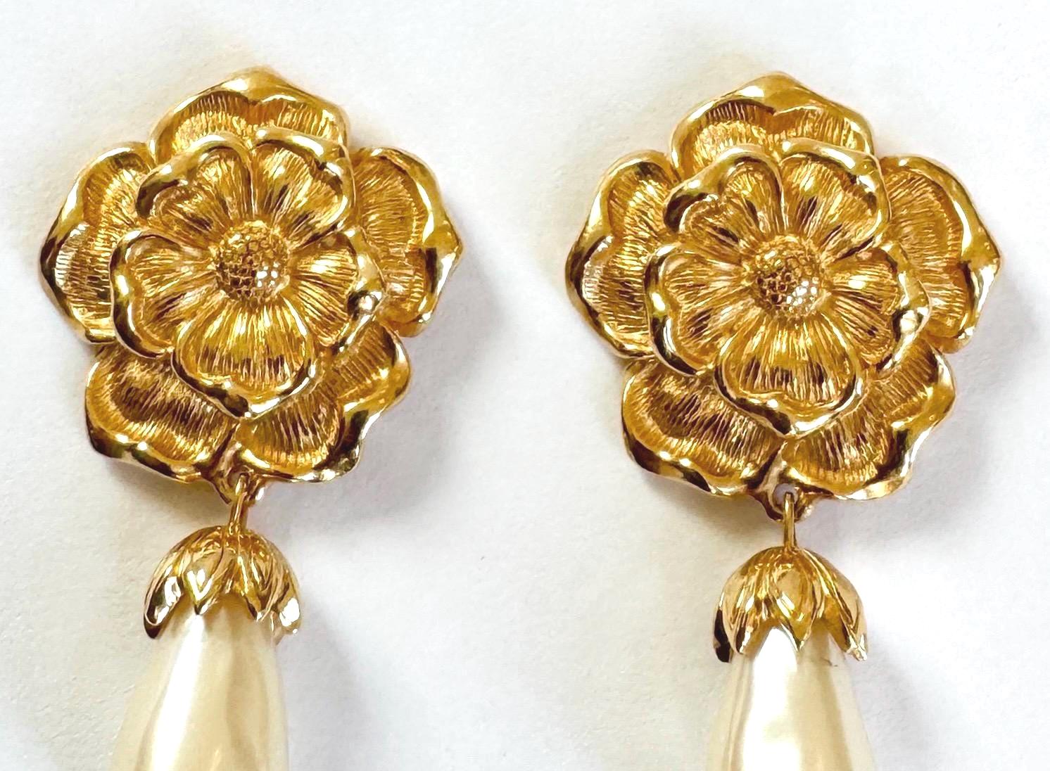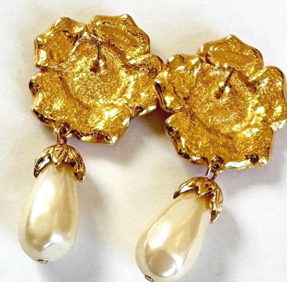 Vintage 80's/90's Avon gold tone floral earrings with faux pearl drop