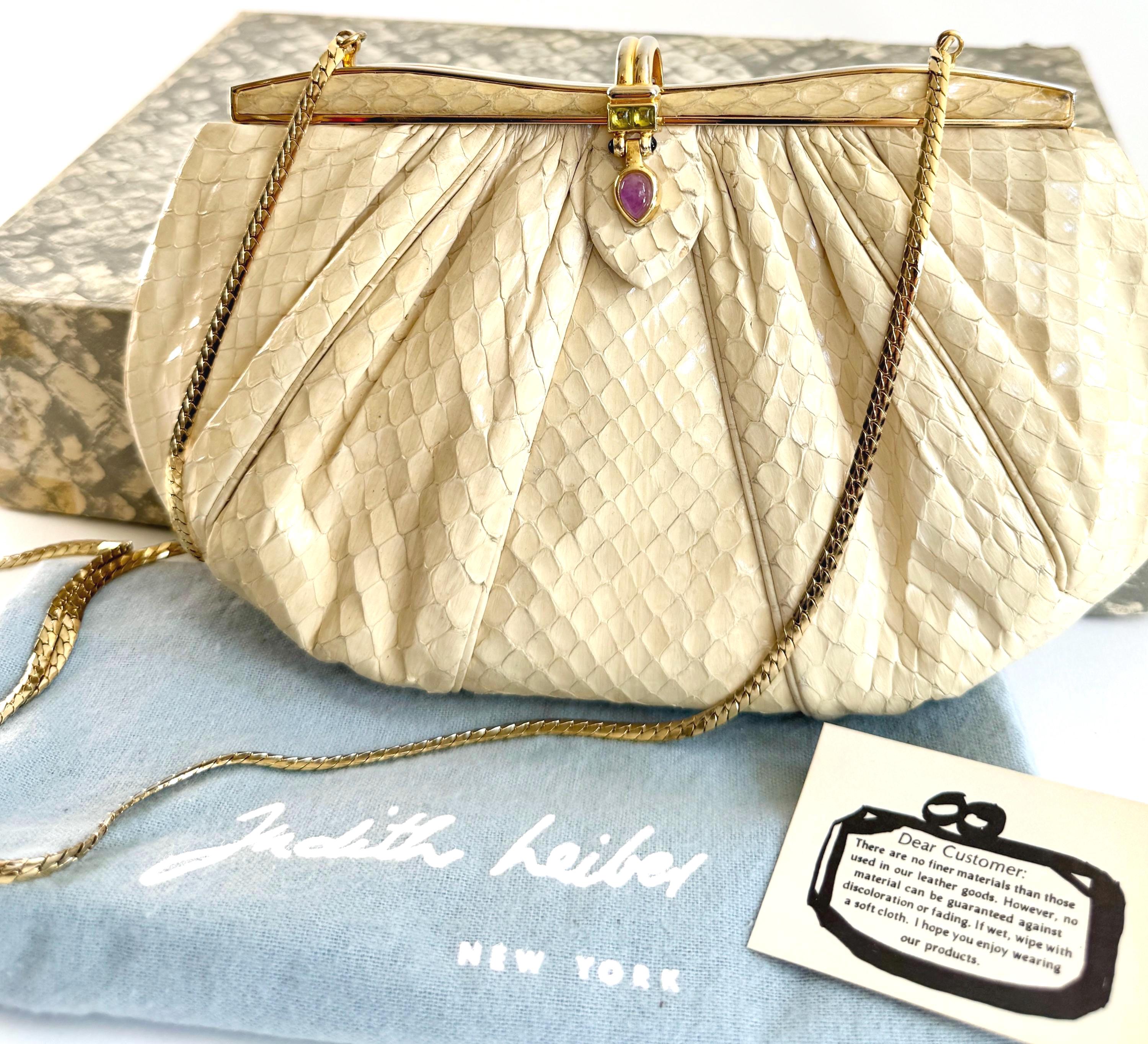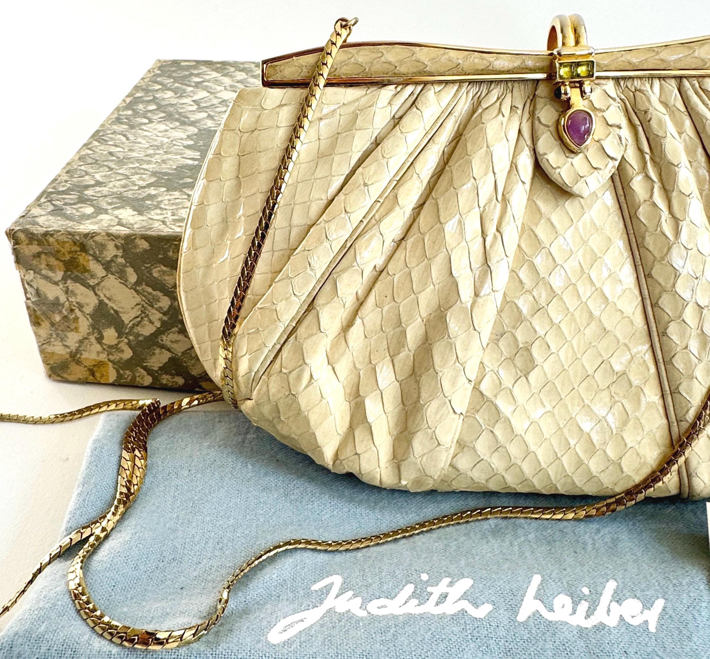 Rare vintage Judith Leiber snakeskin bag with jeweled clasp