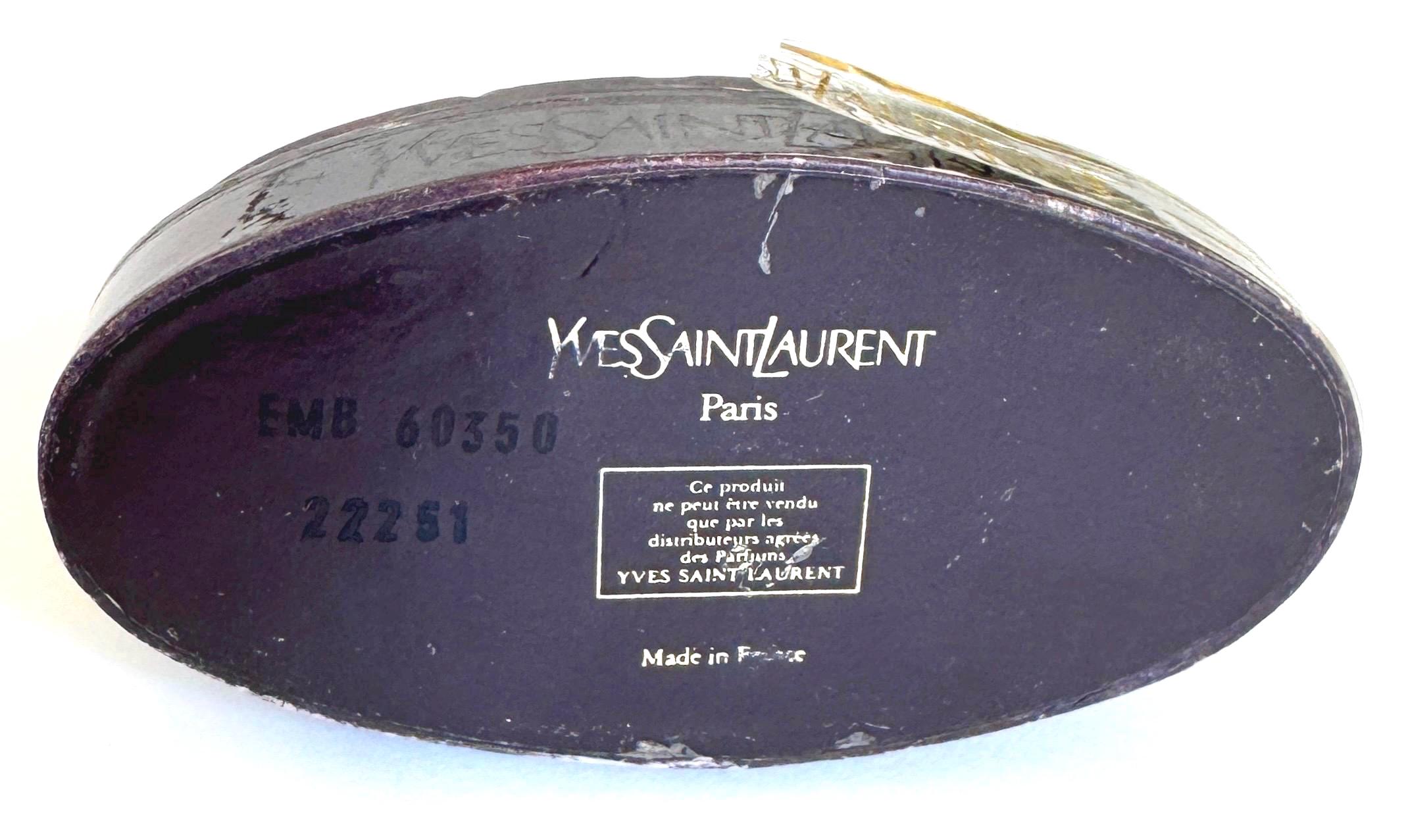 Base of bottle embossed "Yves Saint Laurent Paris / 15ml - 1/2 fl oz / Made in France