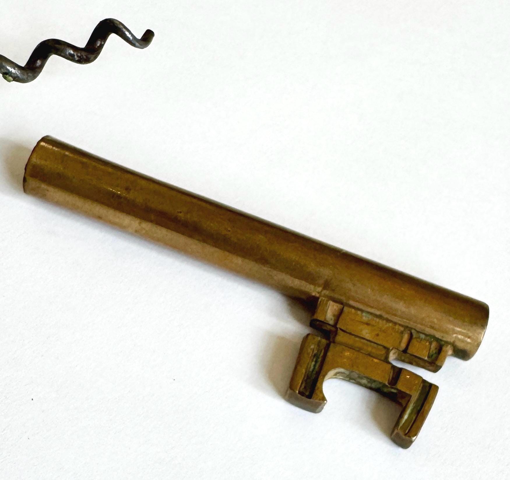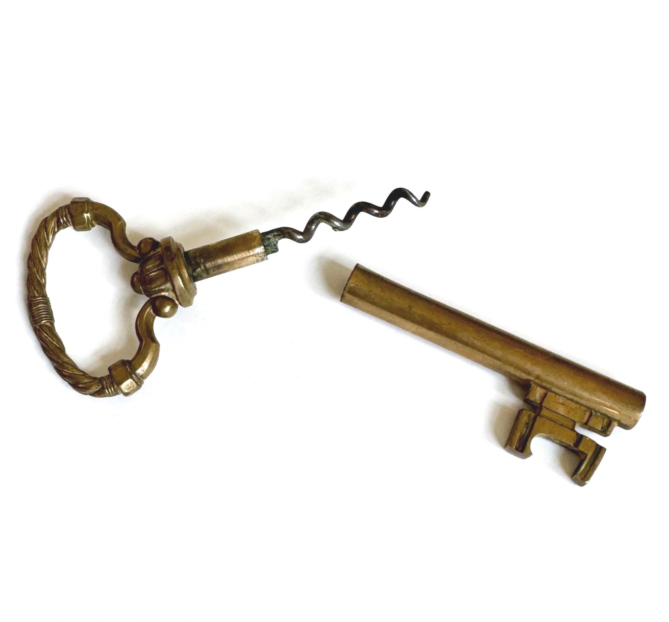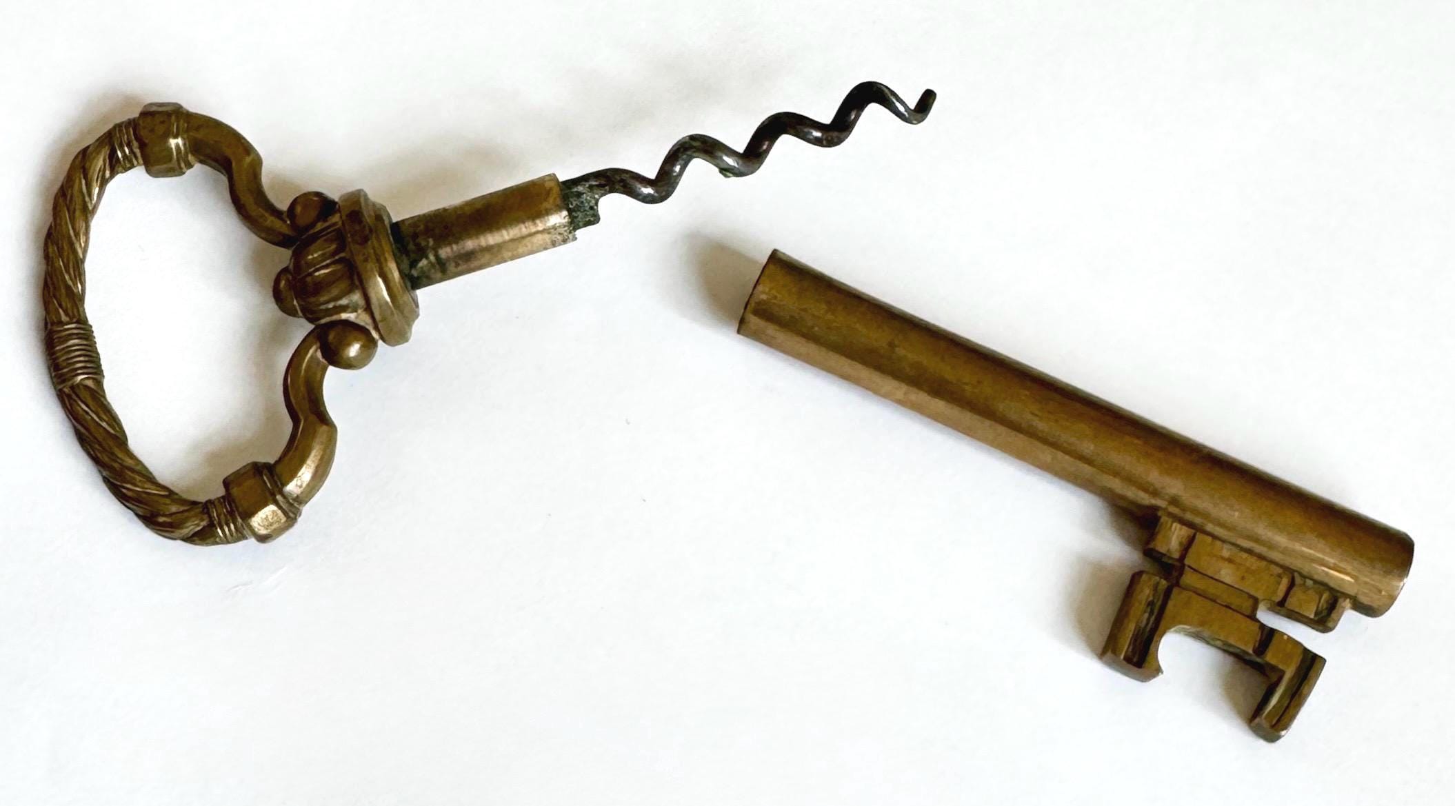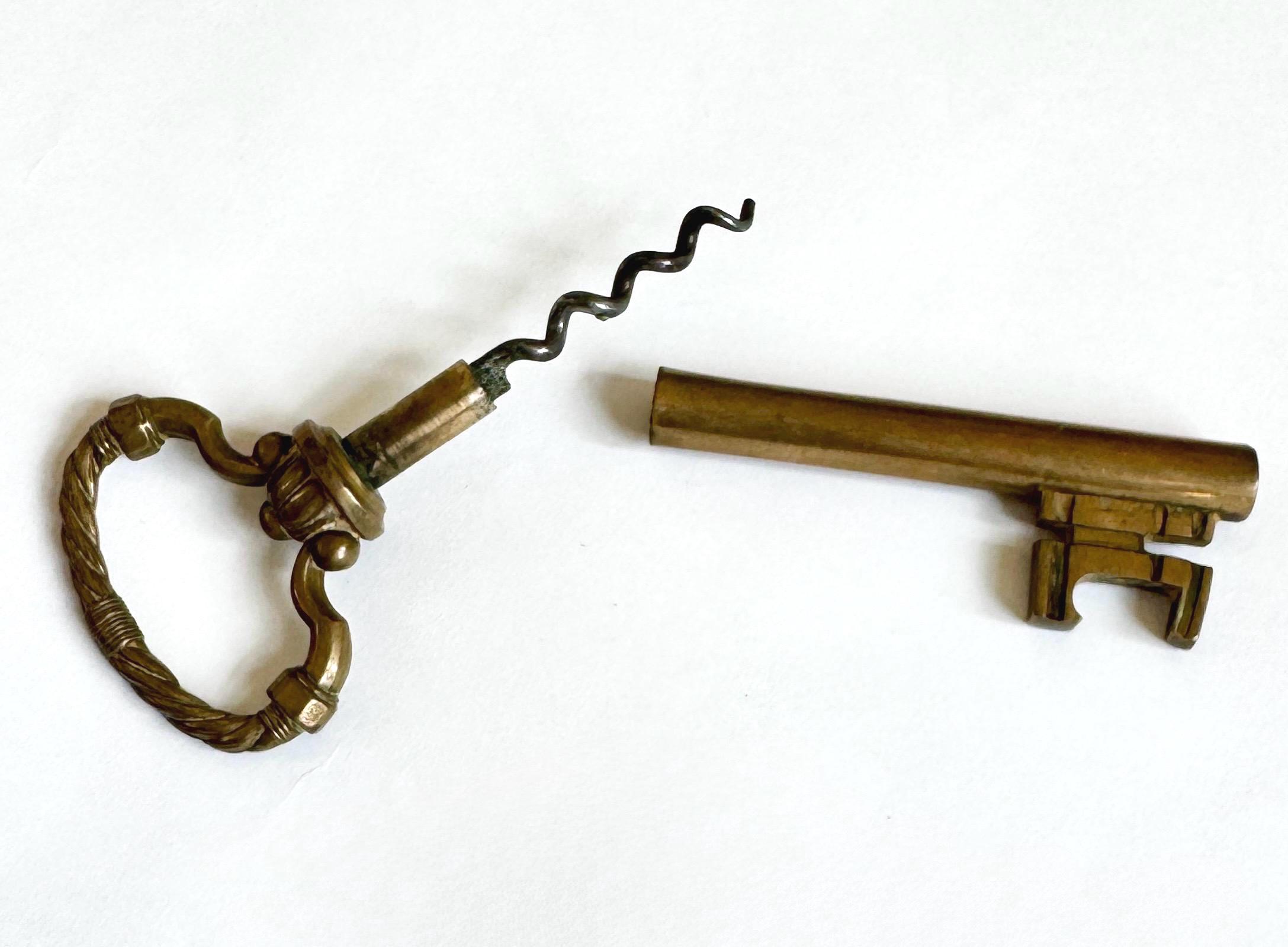 The corkscrew pulls out of the key and the teeth of the keys serves as a bottle opener