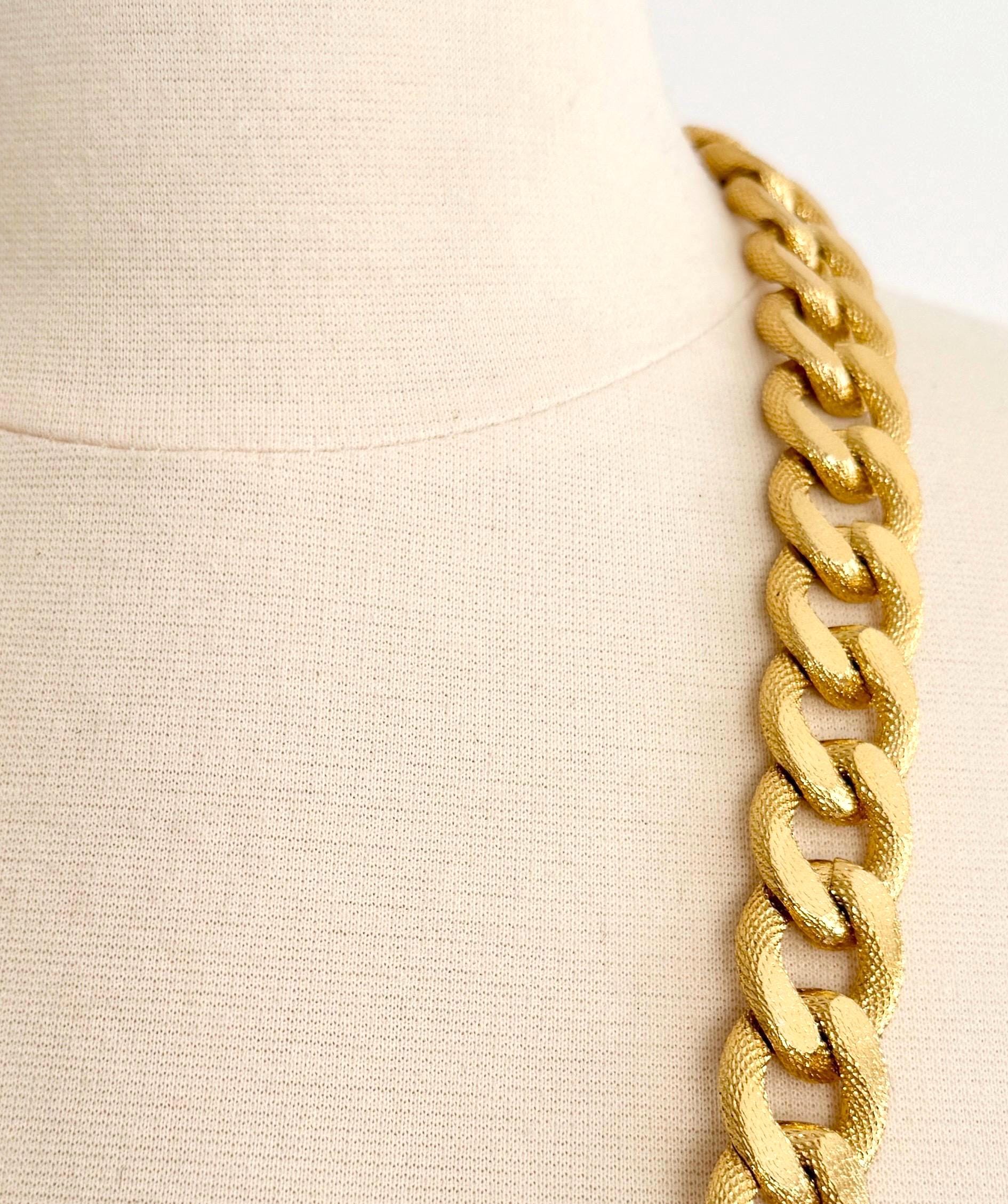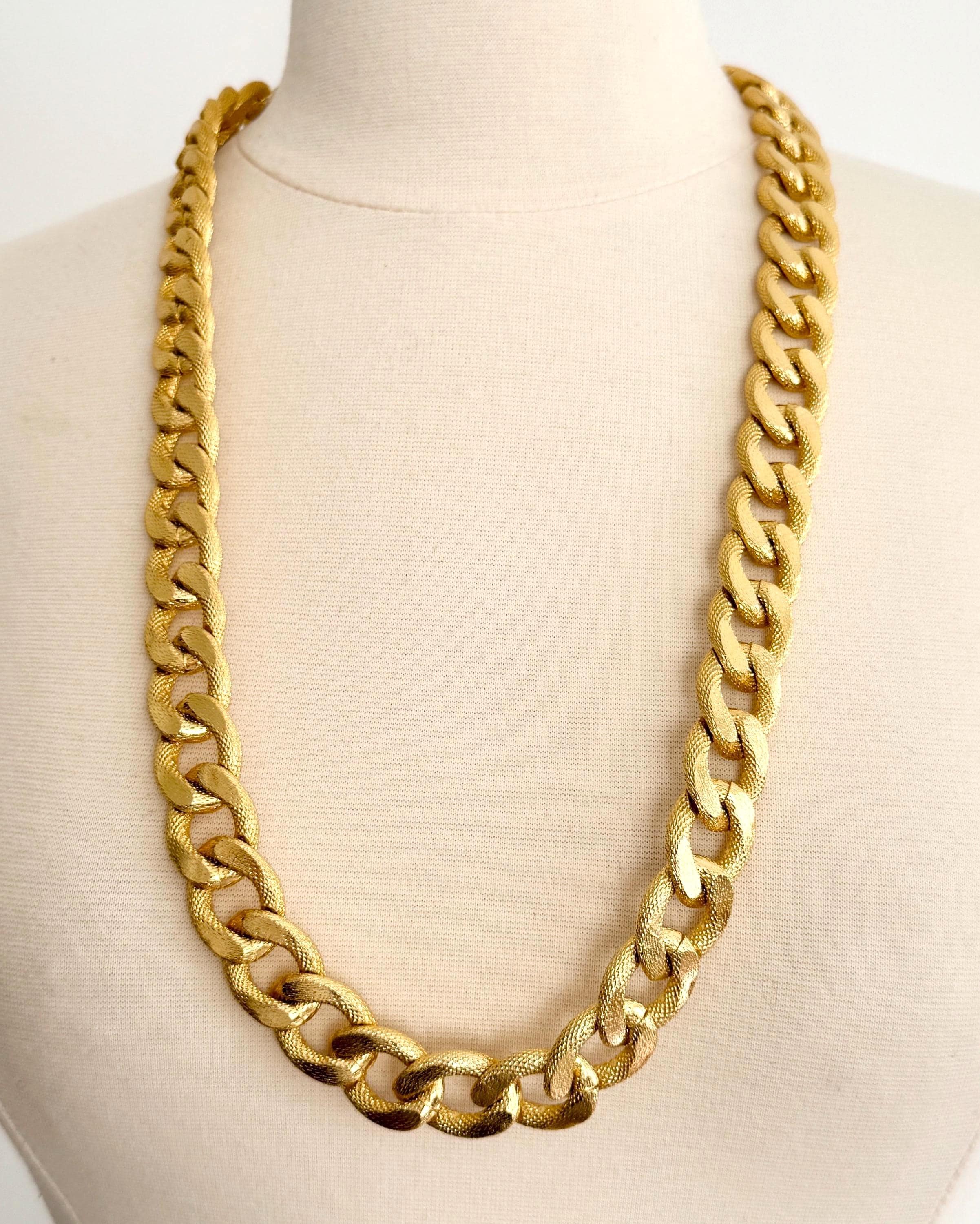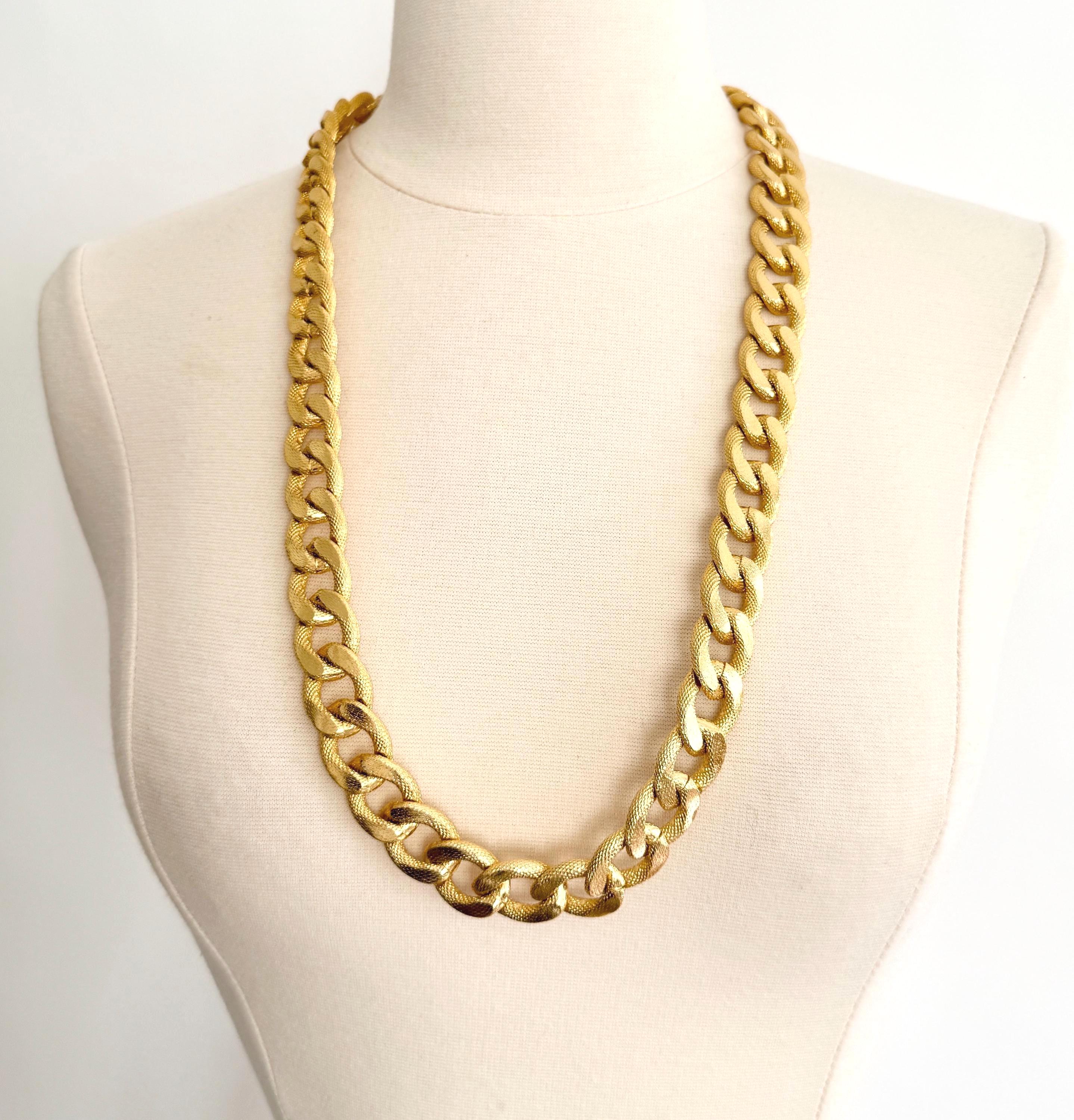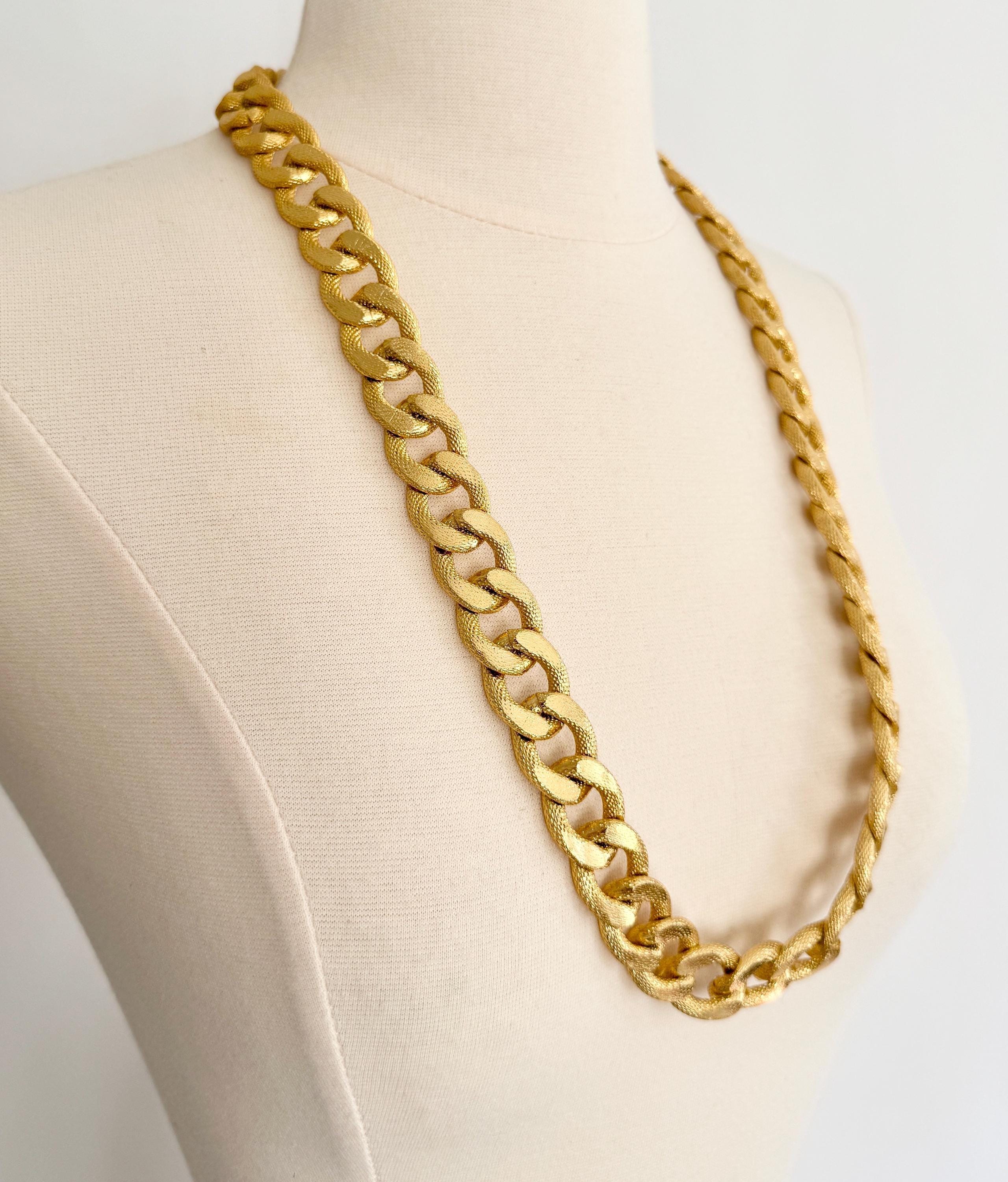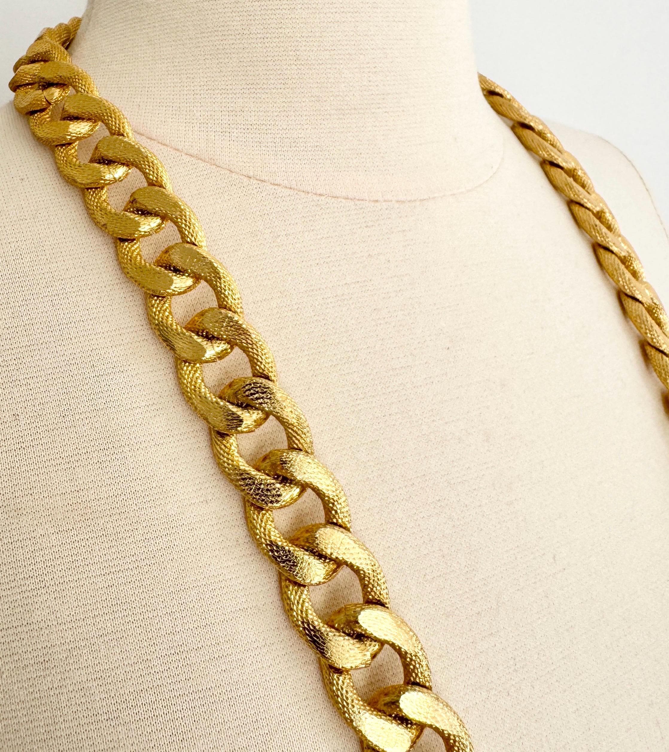 Vintage 80's snakeskin embossed chunky gold chain necklace