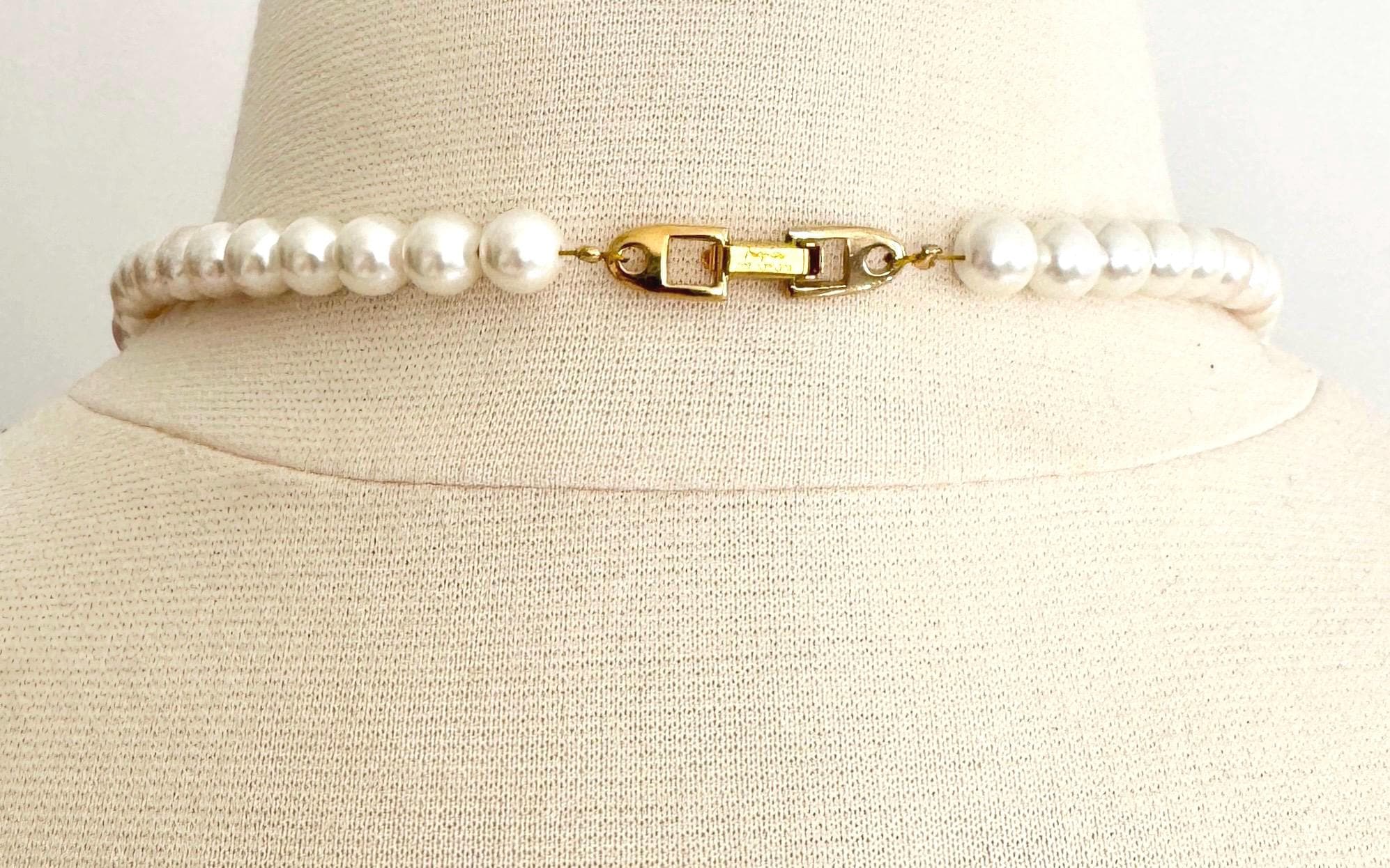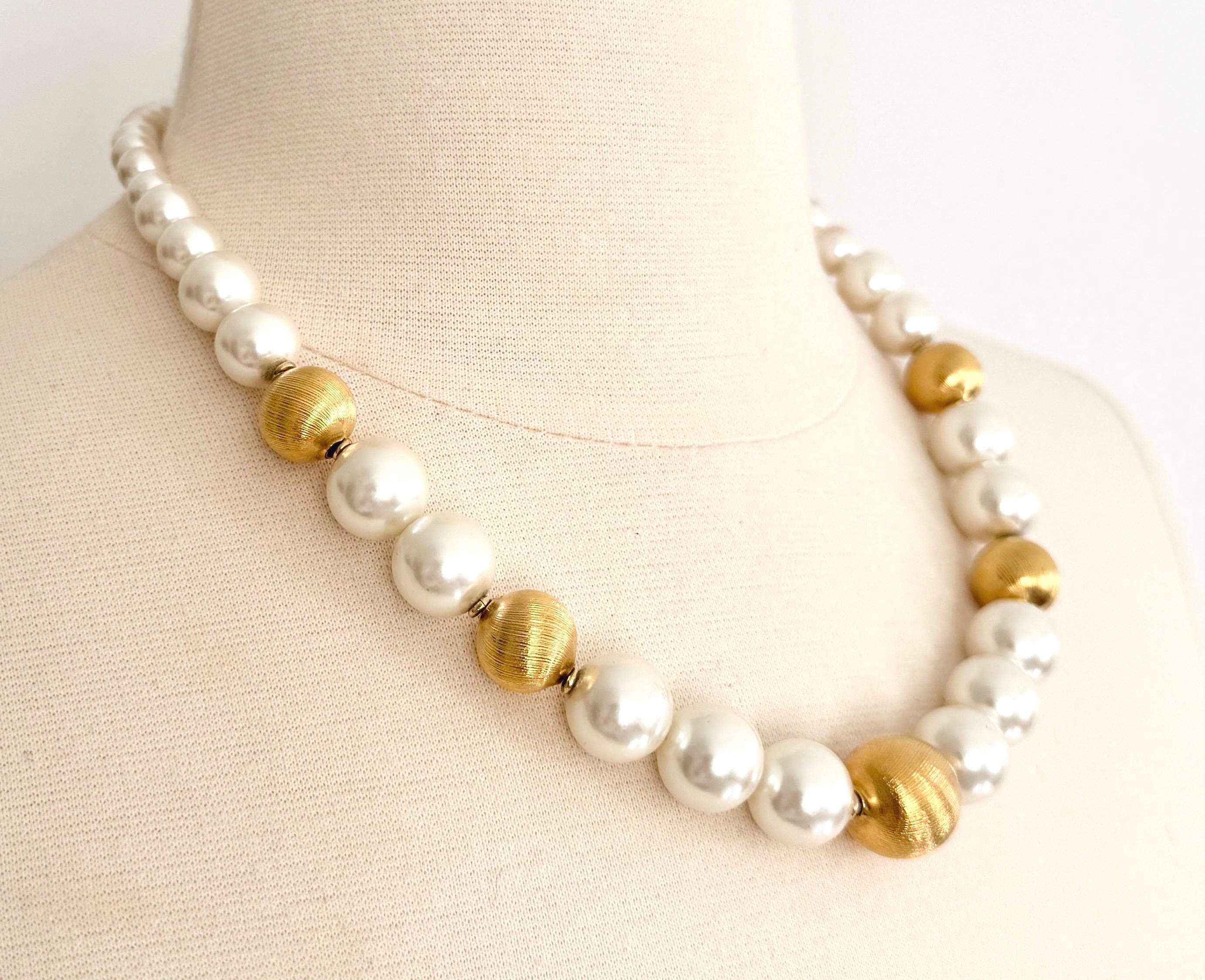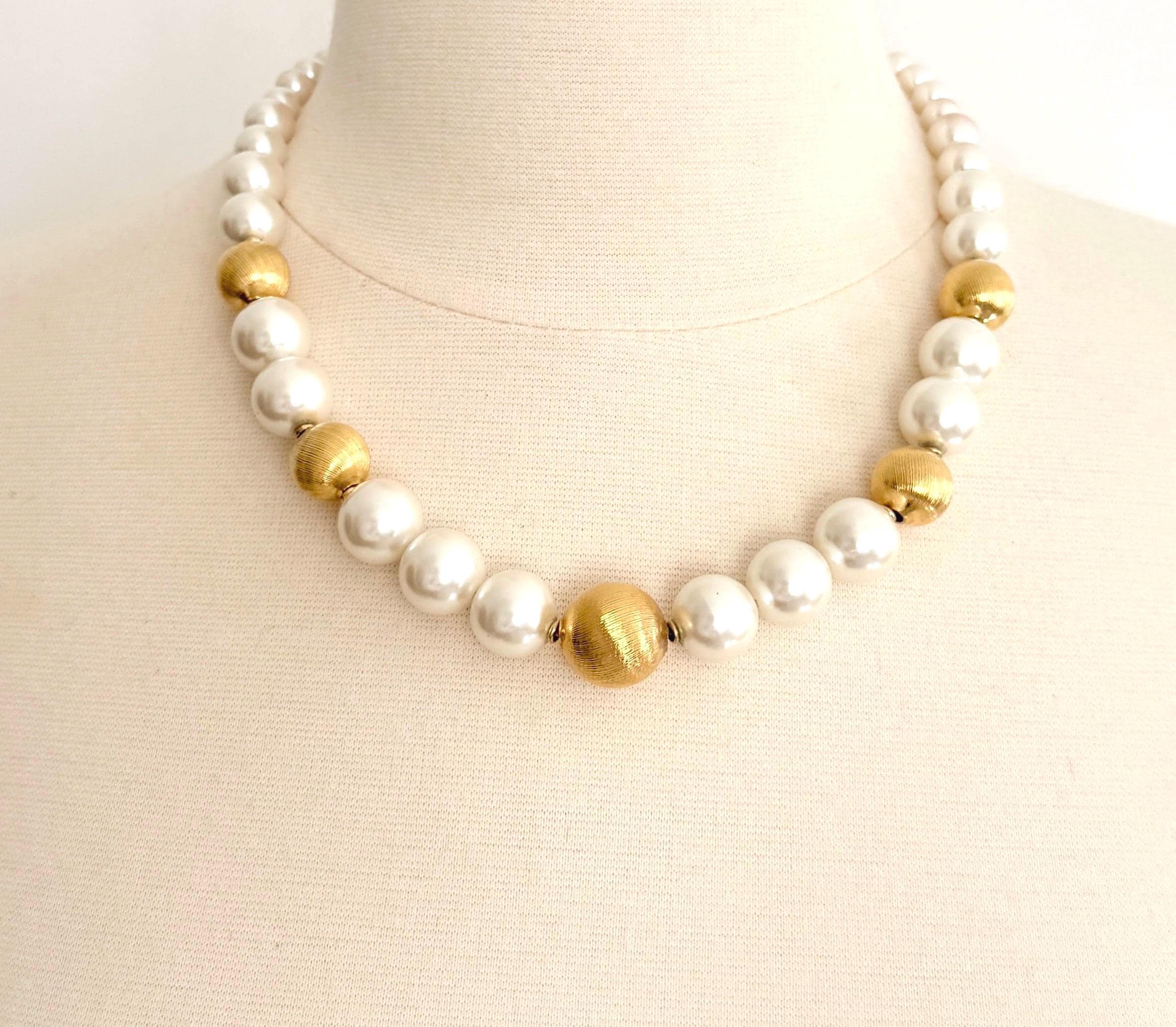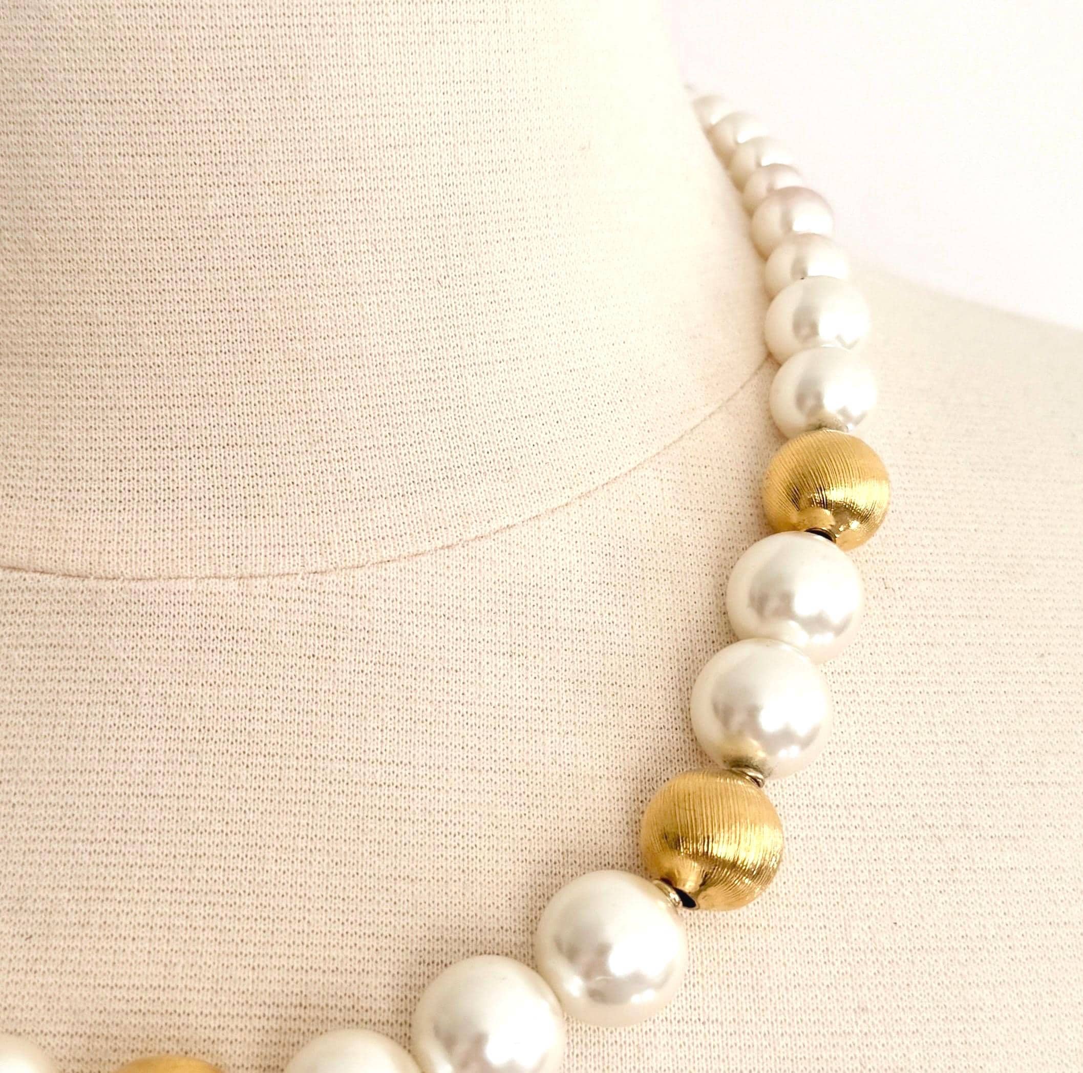 Vintage 80's Napier graduated textured gold and faux pearl beaded necklace