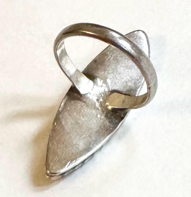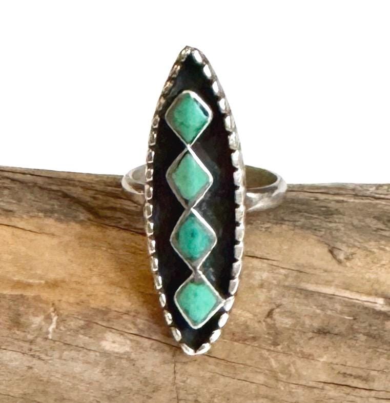 Vintage Native American Zuni sterling silver ring with geometric set flush turquoise inlay