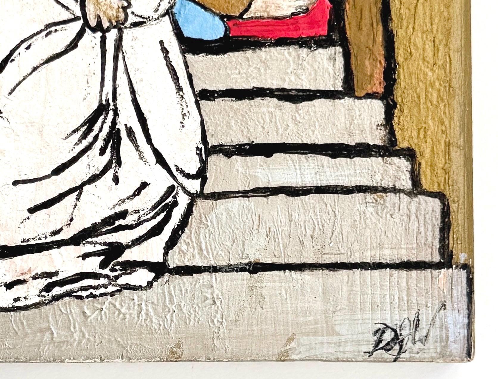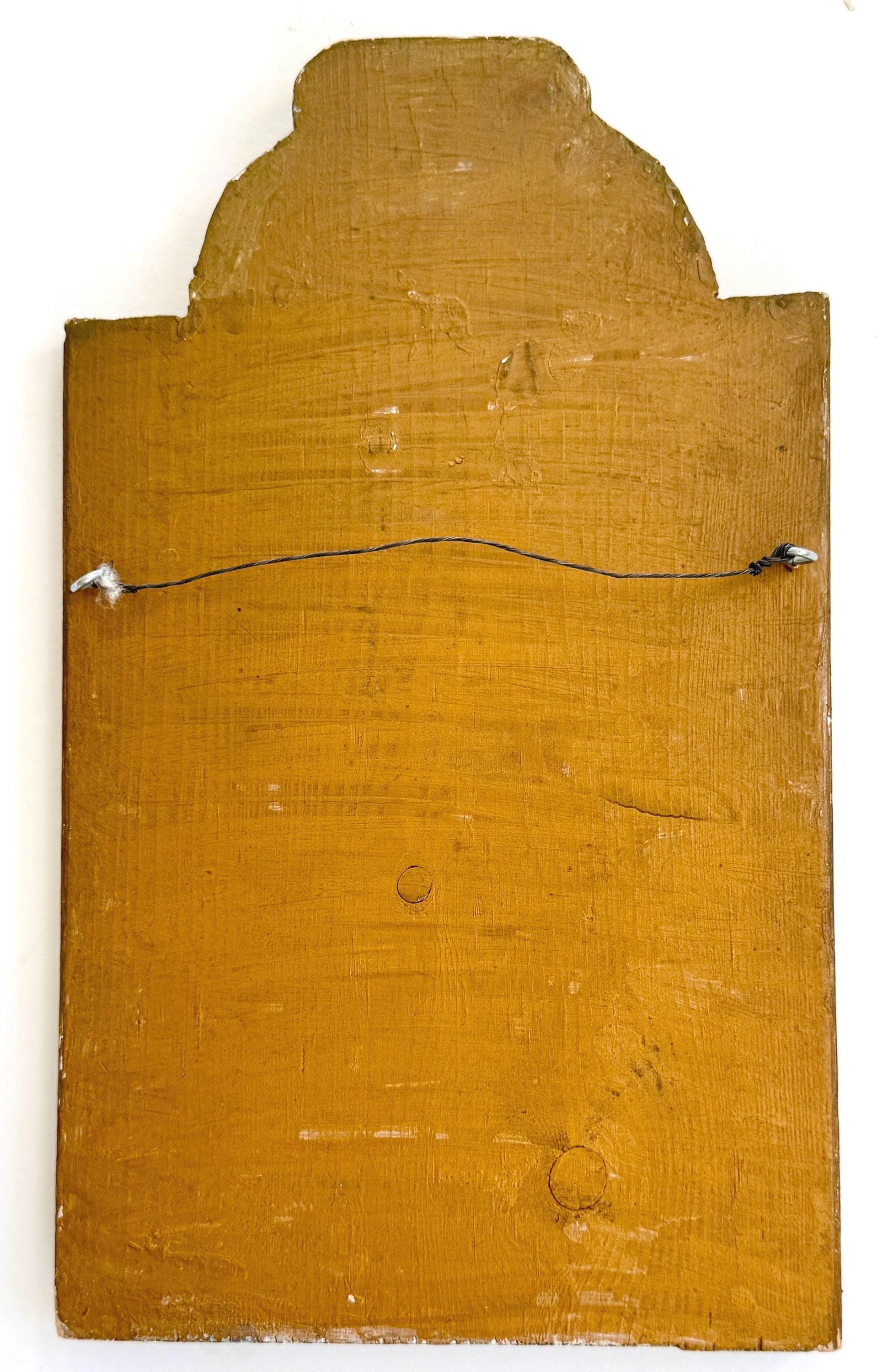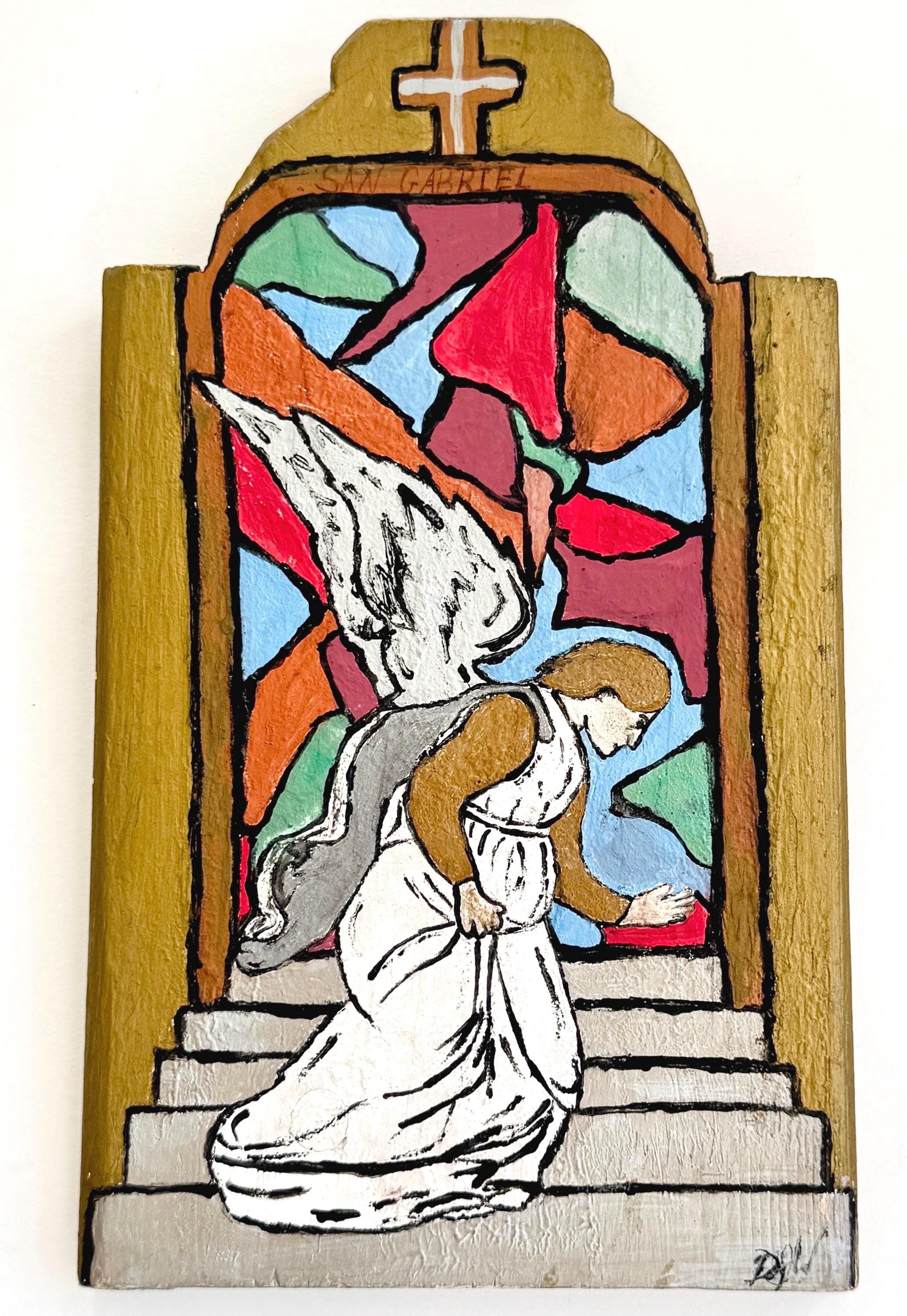 Vintage hand painted religious Southwest folk art retablo of San Gabriel